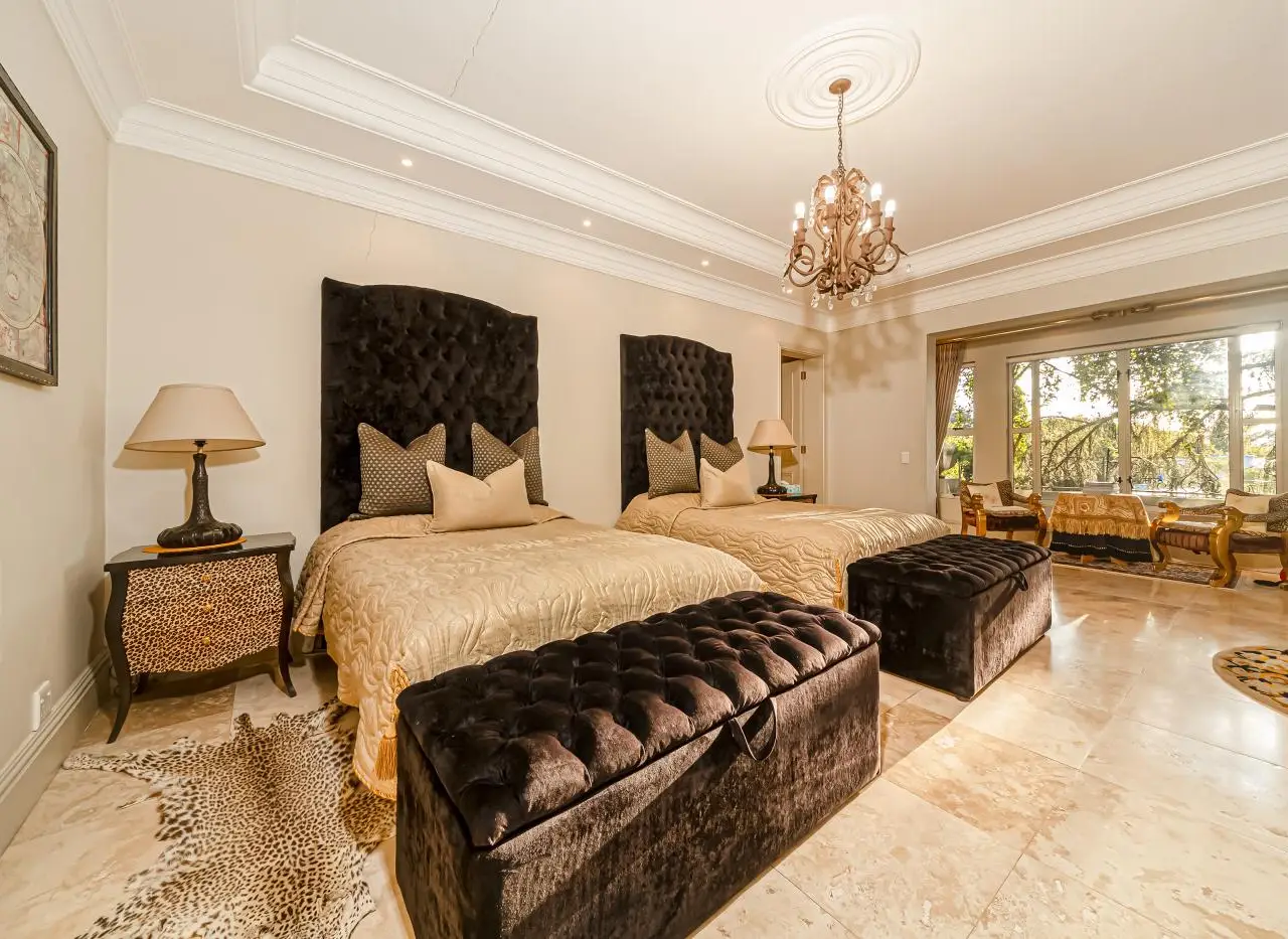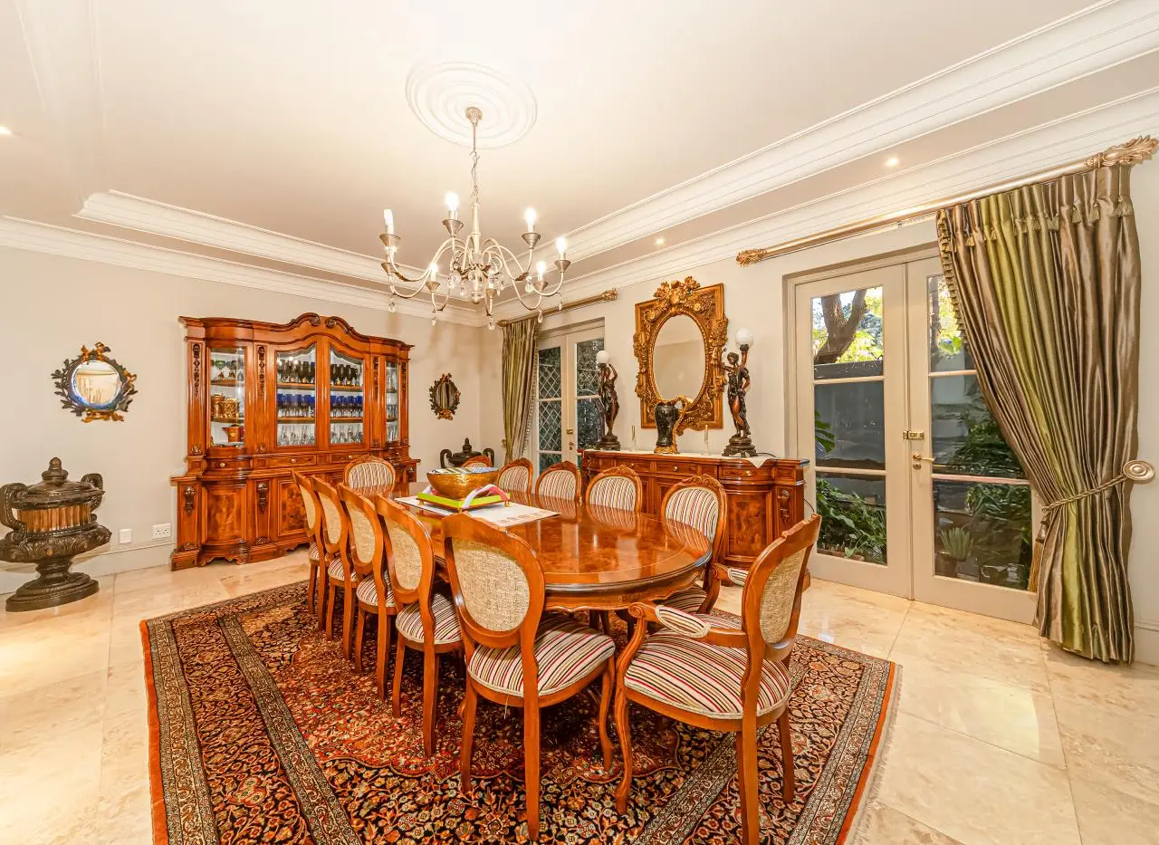 Step into unparalleled luxury with this palatial French chateau-style residence, discovered within an exclusive 4-home cluster development in the heart of Hyde Park. Designed for those who appreciate grand proportions, soaring volumes, and refined elegance, this home offers an exceptional living experience. A triple-volume grand entrance hall sets the tone for sophistication, leading into both formal and informal living areas that can function as distinct spaces or merge into one expansive setting, connected by integrated sliding doors. This effortless flow allows for intimate gatherings or lavish entertaining, while the elegant formal dining room, spacious enough for a 12-seater table, enhances the home's grandeur. The lounge and pause area exude a relaxed yet refined ambiance, perfectly complemented by the family TV and dining area on the opposite side of the entrance hall. At the heart of the home lies a gourmet open-plan kitchen, boasting a mobile center island, separate scullery, ample cupboard space, and an eat-in dining area. A luxurious en-suite bedroom on the ground floor offers a private retreat, inviting rest and relaxation. A sweeping staircase leads to the upper level, where a formal study on the landing provides an elegant space for work or meetings. The palatial main suite, complete with his & hers bathrooms and extensive cupboard space, radiates sheer opulence. Three additional expansive bedrooms, two of which are en-suite, are bathed in natural light and open onto private balconies or courtyard gardens, creating serene personal sanctuaries. Additional features include a triple garage with direct access to the home, 24-hour guarded security within a private, tranquil cul-de-sac, and lush, established gardens that enhance the peaceful surroundings. This home is the epitome of grandeur, privacy, and timeless eleganceGÇöa true Hyde Park masterpiece. =ƒôP Contact us today for a private viewing!