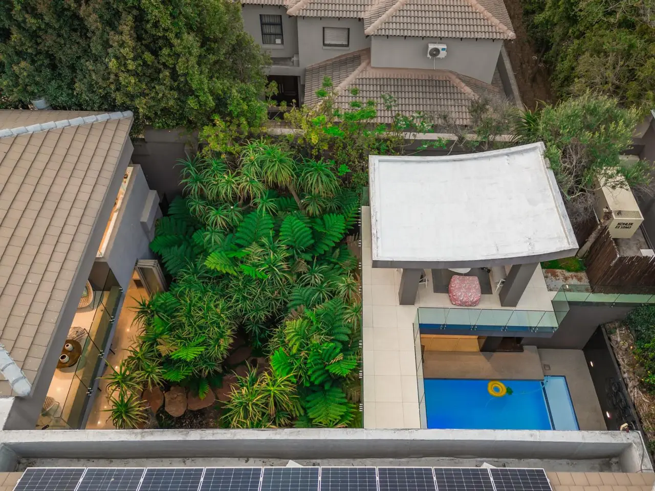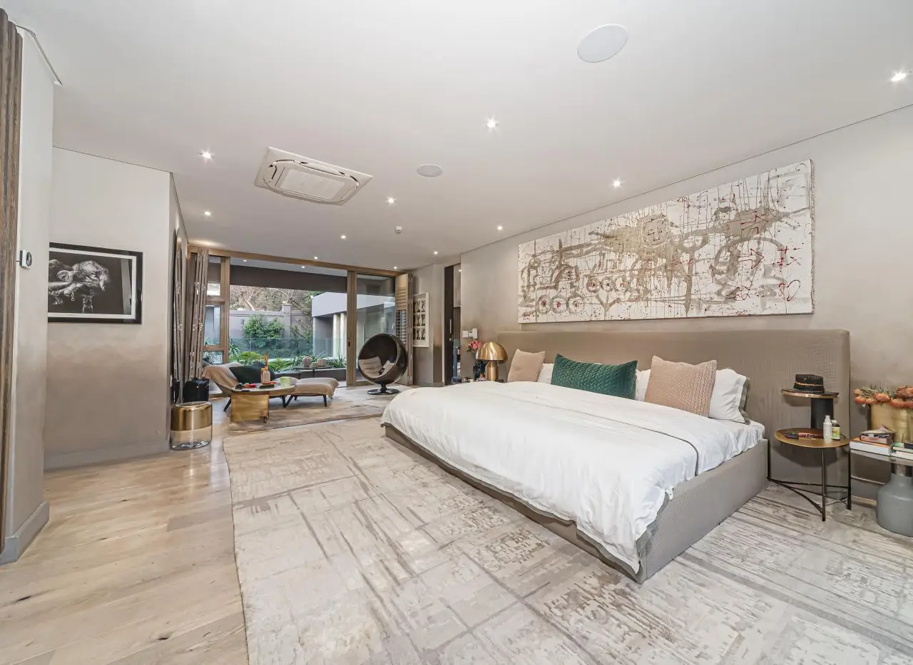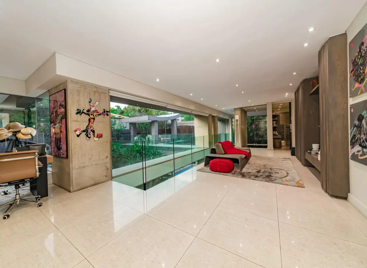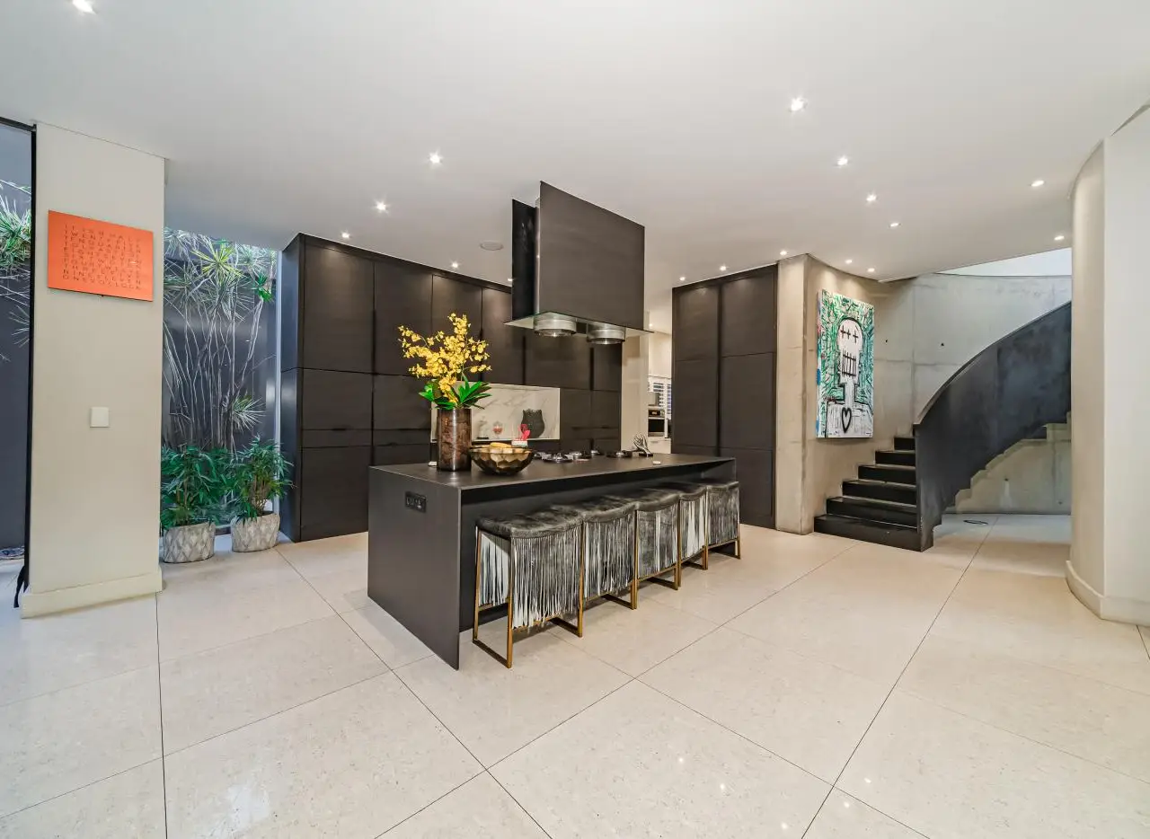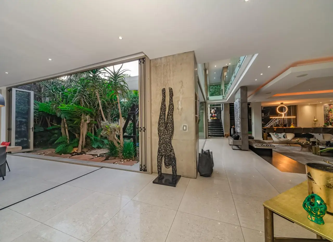 A Connoisseur’s Masterpiece. Sophisticated. Future-Forward. Step inside a residence that’s not just a home, but an experience. Hidden within an elite, ultra-secure estate, this architectural jewel is for the tastemaker who demands more than ordinary luxury. It’s for the collector of bold design, rare art, and uncompromising sophistication. From the moment you enter the dramatic double-volume hall, you’re transported into a world where concrete, glass, and steel melt together with decadent detail. The interiors are curated with fearless flair. Think Jean-Paul Gaultier wallpaper, walls that drip with world-class art, and design that looks like it’s been plucked from the future. This is a house with attitude. Sensual. Sleek. Unapologetically stylish. Highlights That Set It Apart: • Atrium garden. Lush, manicured greenery at the heart of the home, visible from nearly every room • Designer gourmet kitchen. Integrated Gaggenau and SMEG appliances, breakfast bar, scullery, and laundry • Entertainment nirvana. Sunken lounge, dining space, and play area flow seamlessly into the landscaped garden • Indoor-outdoor living. Stack-away glass doors, covered entertainer’s patio, built-in gas braai, and heated pool with changeroom facilities • Work-from-home edge. Private office with natural light and views onto the garden • Floating staircase leading to the private bedroom wing Bedroom Wing: • Owner’s suite. En-suite spa-style bathroom, dressing room, and serene garden views • Three additional en-suite bedrooms. Each sophisticated and spacious • Pajama lounge with direct access to a rooftop garden and patio with sweeping views Beyond the Expected • Rooftop garden sanctuary for sun-downers or quiet retreats • Two staff suites. Double garage plus secure off-street parking • Energy independence. GreenSun solar system with 60 kW battery storage, 28 panels, plus a 50 kVA generator • Borehole and 5000L backup water system. Continuous supply, always • Fort Knox Security ensures ultimate peace of mind • Bespoke craftsmanship everywhere. Custom cabinetry, Oggie hardwood floors, integrated sound system, air-con throughout The Vibe: This isn’t a cookie-cutter luxury home. It’s a connoisseur’s playground, a property dripping with artistry and swagger. Sophisticated yet daring. Futuristic yet timeless. If you believe your home should be as sexy and distinctive as your lifestyle, then welcome… you’ve found it.