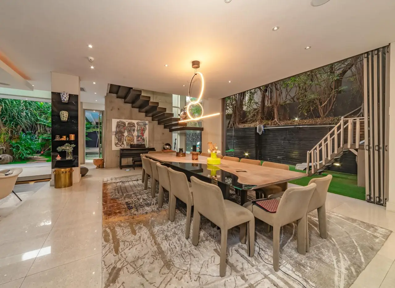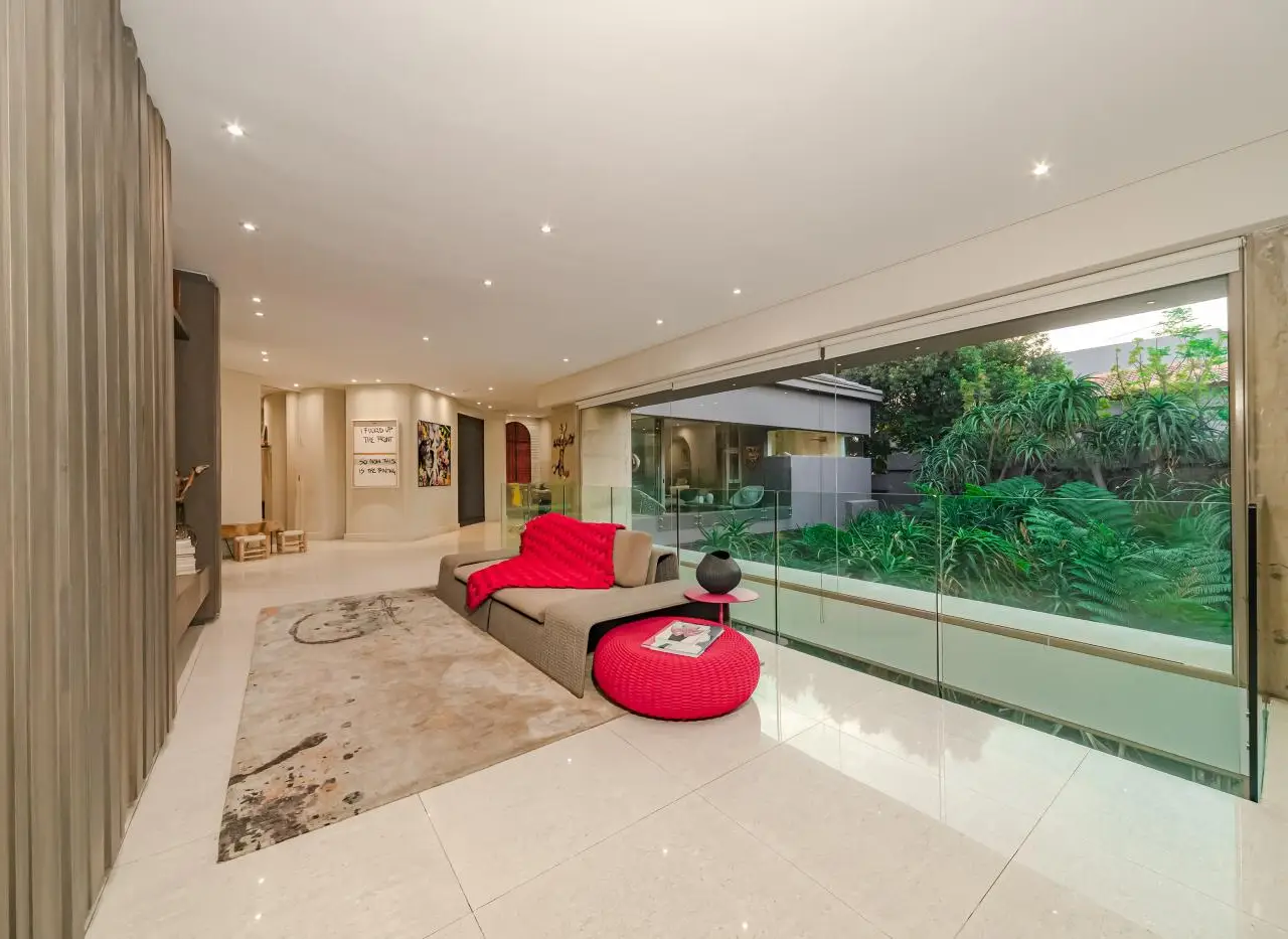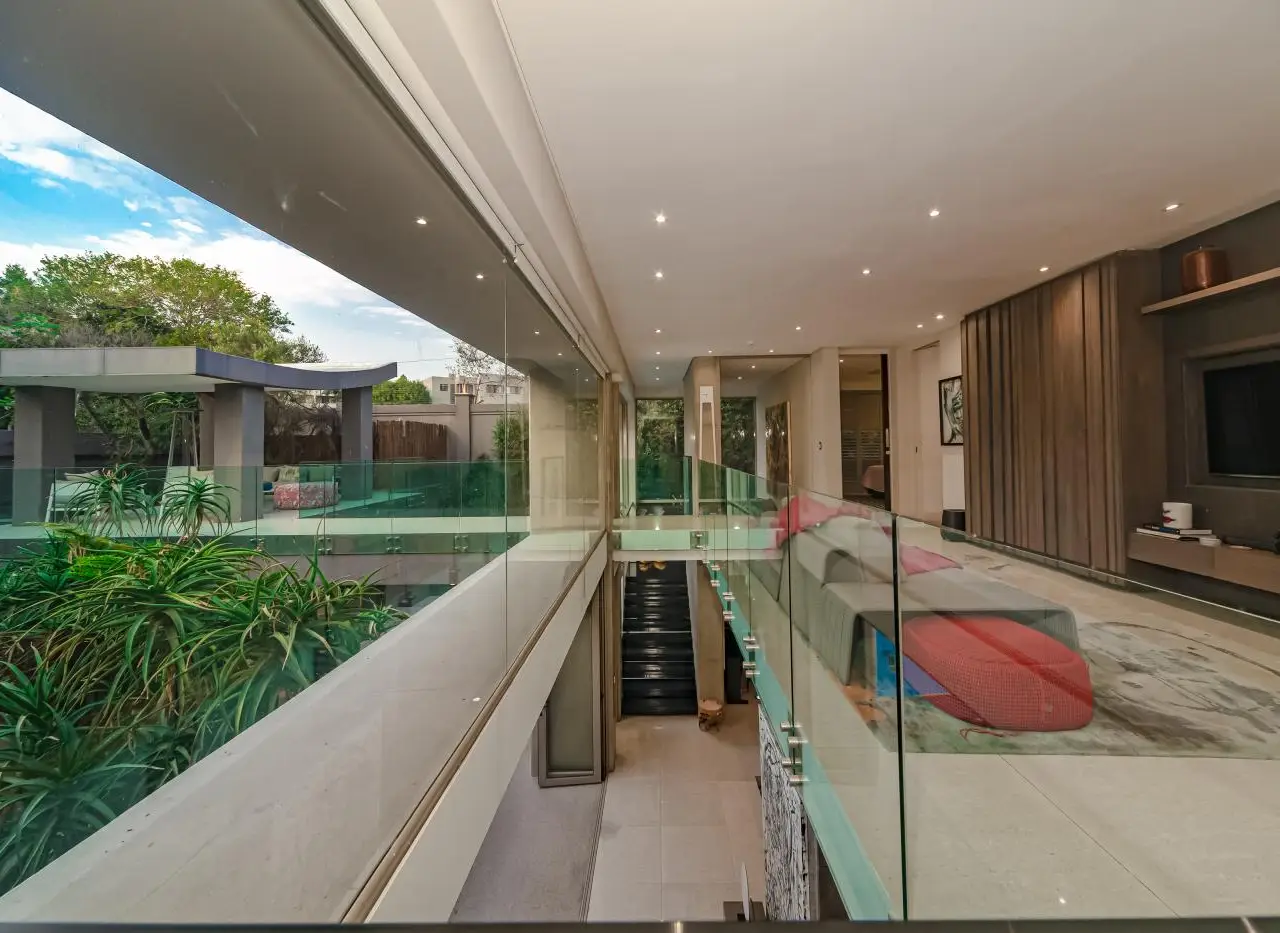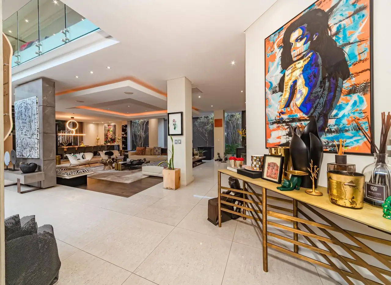 A Connoisseur’s Masterpiece. Sophisticated. Future-Forward. Step inside a residence that’s not just a home, but an experience. Hidden within an elite, ultra-secure estate, this architectural jewel is for the tastemaker who demands more than ordinary luxury. It’s for the collector of bold design, rare art, and uncompromising sophistication. From the moment you enter the dramatic double-volume hall, you’re transported into a world where concrete, glass, and steel melt together with decadent detail. The interiors are curated with fearless flair. Think Jean-Paul Gaultier wallpaper, walls that drip with world-class art, and design that looks like it’s been plucked from the future. This is a house with attitude. Sensual. Sleek. Unapologetically stylish. Highlights That Set It Apart: • Atrium garden. Lush, manicured greenery at the heart of the home, visible from nearly every room • Designer gourmet kitchen. Integrated Gaggenau and SMEG appliances, breakfast bar, scullery, and laundry • Entertainment nirvana. Sunken lounge, dining space, and play area flow seamlessly into the landscaped garden • Indoor-outdoor living. Stack-away glass doors, covered entertainer’s patio, built-in gas braai, and heated pool with changeroom facilities • Work-from-home edge. Private office with natural light and views onto the garden • Floating staircase leading to the private bedroom wing Bedroom Wing: • Owner’s suite. En-suite spa-style bathroom, dressing room, and serene garden views • Three additional en-suite bedrooms. Each sophisticated and spacious • Pajama lounge with direct access to a rooftop garden and patio with sweeping views Beyond the Expected • Rooftop garden sanctuary for sun-downers or quiet retreats • Two staff suites. Double garage plus secure off-street parking • Energy independence. GreenSun solar system with 60 kW battery storage, 28 panels, plus a 50 kVA generator • Borehole and 5000L backup water system. Continuous supply, always • Fort Knox Security ensures ultimate peace of mind • Bespoke craftsmanship everywhere. Custom cabinetry, Oggie hardwood floors, integrated sound system, air-con throughout The Vibe: This isn’t a cookie-cutter luxury home. It’s a connoisseur’s playground, a property dripping with artistry and swagger. Sophisticated yet daring. Futuristic yet timeless. If you believe your home should be as sexy and distinctive as your lifestyle, then welcome… you’ve found it.