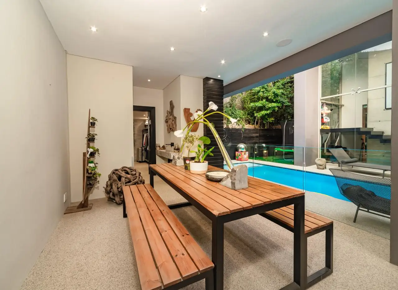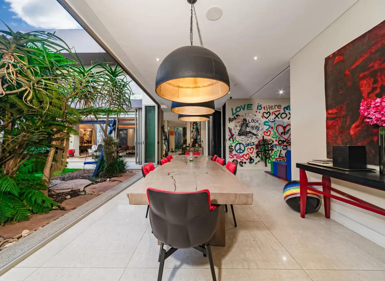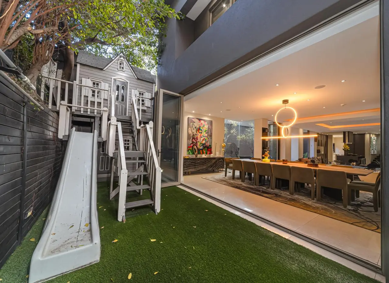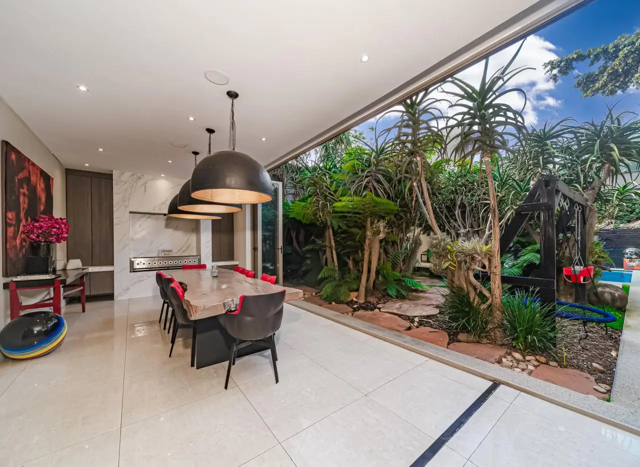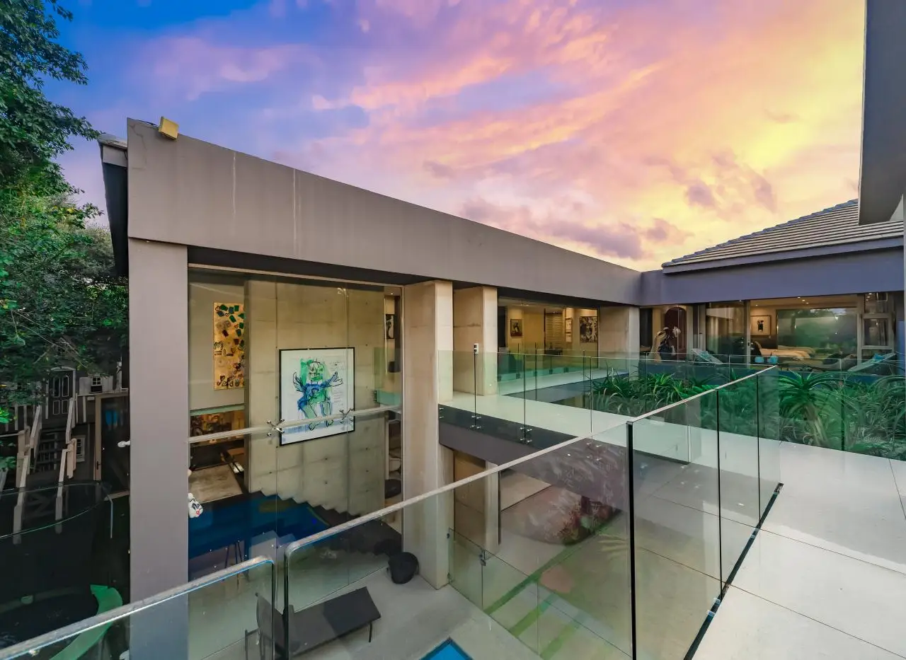 A Connoisseur’s Masterpiece. Sophisticated. Future-Forward. Step inside a residence that’s not just a home, but an experience. Hidden within an elite, ultra-secure estate, this architectural jewel is for the tastemaker who demands more than ordinary luxury. It’s for the collector of bold design, rare art, and uncompromising sophistication. From the moment you enter the dramatic double-volume hall, you’re transported into a world where concrete, glass, and steel melt together with decadent detail. The interiors are curated with fearless flair. Think Jean-Paul Gaultier wallpaper, walls that drip with world-class art, and design that looks like it’s been plucked from the future. This is a house with attitude. Sensual. Sleek. Unapologetically stylish. Highlights That Set It Apart: • Atrium garden. Lush, manicured greenery at the heart of the home, visible from nearly every room • Designer gourmet kitchen. Integrated Gaggenau and SMEG appliances, breakfast bar, scullery, and laundry • Entertainment nirvana. Sunken lounge, dining space, and play area flow seamlessly into the landscaped garden • Indoor-outdoor living. Stack-away glass doors, covered entertainer’s patio, built-in gas braai, and heated pool with changeroom facilities • Work-from-home edge. Private office with natural light and views onto the garden • Floating staircase leading to the private bedroom wing Bedroom Wing: • Owner’s suite. En-suite spa-style bathroom, dressing room, and serene garden views • Three additional en-suite bedrooms. Each sophisticated and spacious • Pajama lounge with direct access to a rooftop garden and patio with sweeping views Beyond the Expected • Rooftop garden sanctuary for sun-downers or quiet retreats • Two staff suites. Double garage plus secure off-street parking • Energy independence. GreenSun solar system with 60 kW battery storage, 28 panels, plus a 50 kVA generator • Borehole and 5000L backup water system. Continuous supply, always • Fort Knox Security ensures ultimate peace of mind • Bespoke craftsmanship everywhere. Custom cabinetry, Oggie hardwood floors, integrated sound system, air-con throughout The Vibe: This isn’t a cookie-cutter luxury home. It’s a connoisseur’s playground, a property dripping with artistry and swagger. Sophisticated yet daring. Futuristic yet timeless. If you believe your home should be as sexy and distinctive as your lifestyle, then welcome… you’ve found it.