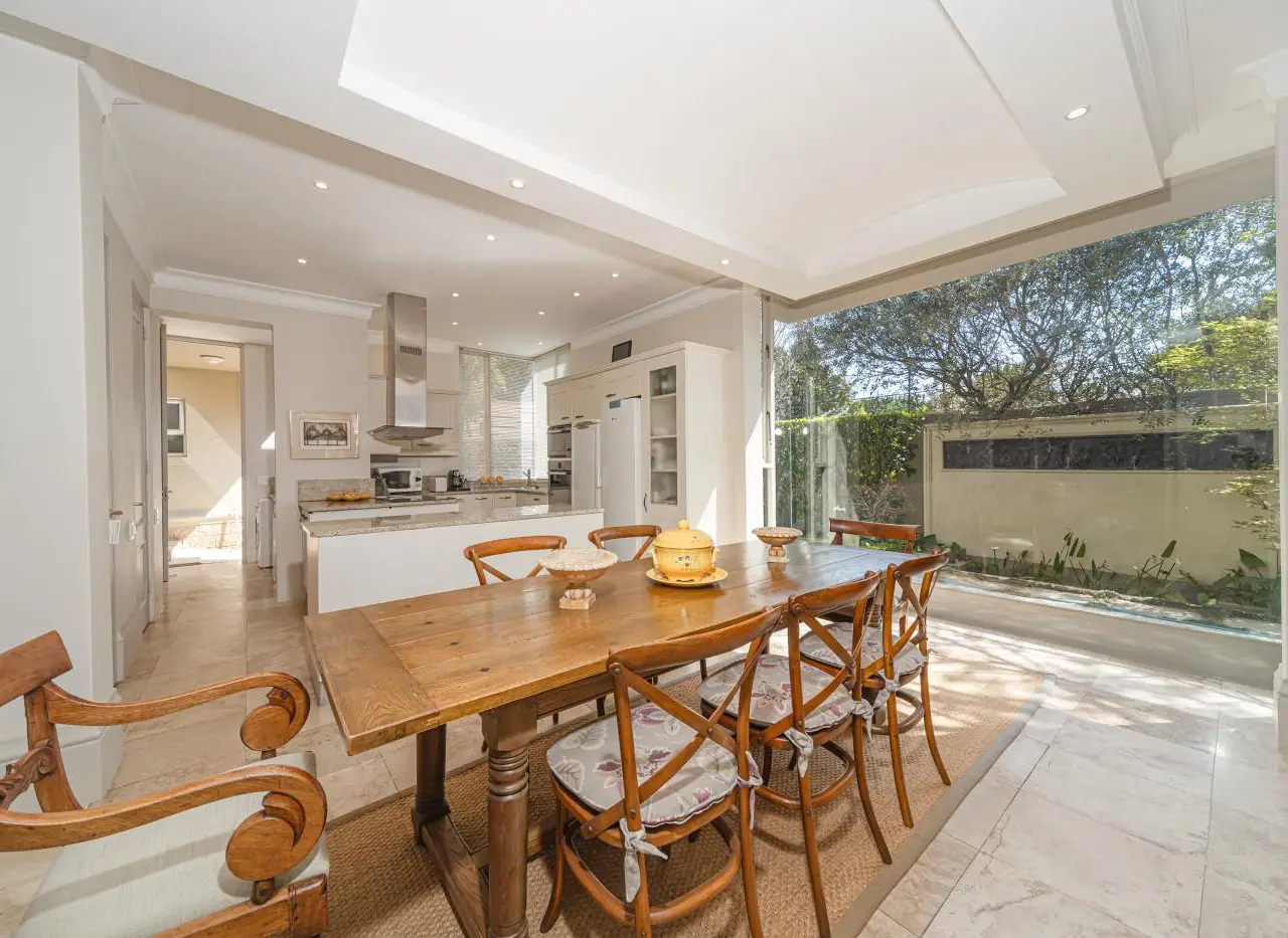 Situated in a secure, boomed-off road with 24-hour guarded access, this elegant cluster home blends modern living with classical charm. A grand triple-volume entrance with a sweeping staircase sets the tone for refined interiors and effortless flow. Downstairs: Private Guest bedroom en-suite, currently used as a study. A Formal lounge with fireplace and traditional 10 seater dining room. The open-plan family living area includes; a cosy lounge with fireplace, dining space, and a gourmet kitchen with high-end appliances, scullery, and laundry - all leading to the immaculate garden. A staff room, double garage, and ample open parking add convenience. Upstairs: A spacious landing overlooks the dining area and outdoors, ideal as an open study. Three sun-filled bedrooms, each with private balconies or garden views. Two bedrooms are en-suite, with the option to easily convert the third. The main suite features a walk-in dressing area and luxurious bathroom. Outdoors: Manicured lawns embrace the swimming pool, poolside lounge, and dining area. Tranquil koi ponds, hedge-framed rose beds, and mature trees along the boundary create privacy, peace, and natural beauty. Key Features: Secure cluster estate in prime Hyde Park Triple-volume entrance with sweeping staircase Formal and family living spaces with fireplaces Gourmet kitchen with scullery & laundry 4th en-suite bedroom or private study Outdoor entertainment with pool, koi ponds & landscaped gardens 3 bedrooms (option for 3 en-suite), main with walk-in dressing area Double garage, staff accommodation & ample parking A home of timeless elegance and secure family living in Hyde Park.