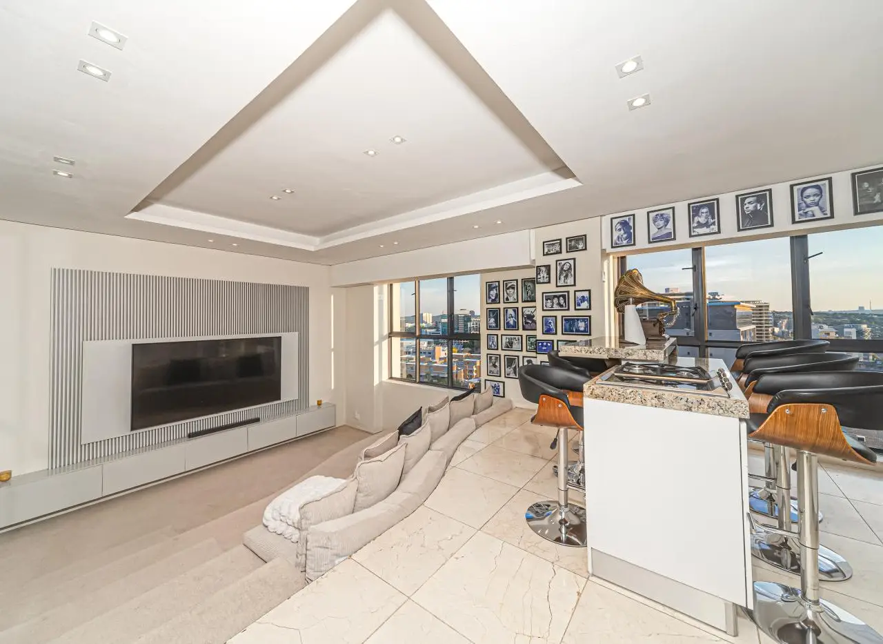 Redefining Distinction: Skyline Living in the Heart of Sandton CBD Experience true lifestyle living in this prestigious four-level penthouse, set within a globally inspired architectural building, in the heart of Sandtons CBD. The Penthouse offers a distinct Central Park ambiance and outlook in the heart of Sandton. Each level is accessed via a private internal lift with secure biometric entry. The Penthouse further features its own exclusive lift to all levels, or access via a striking sculptural spiral staircase. Each room is framed by uninterrupted panoramic views.Expansive floor-to-ceiling windows and sliding doors, complemented by double- and triple-volume spaces, create an atmosphere of openness and light. Luxurious finishes and gentle tones define every corner. First Level: Three gracious en-suite bedrooms, ideal for guests or multi-generational living. One suite can easily be presented as a study, opening onto a private patio overlooking a sea of treetops. Second Level: A bespoke cinema and bar, featuring a sunken lounge with stove-top counter, for intimate entertaining - flowing onto a patio with a plunge pool and poolside dining area. Third Level: The statement level for entertainment offers expansive open-plan living, lounge, dining, and kitchen spaces with granite countertops, luxury finishes, ample storage, and a separate scullery/laundry. Outdoor dining and lounge areas capture breathtaking views across Sandton to the Magaliesberg mountains. Top Level: The grand master suite is a sanctuary of space and sophistication, featuring a private lounge, walk-in dressing room, and a luxurious open-plan bathroom. Finishes and fixtures, of the highest quality, evoking the elegance of a Relais & Ch+óteaux hotel. Residents enjoy unrivalled amenities including a private concierge, spa and wellness centre, gym, indoor and outdoor pools, fine dining, meeting rooms, and 24-hour guarded security. This is more than a home.Its a lifestyle defined by refinement, and exclusivity.