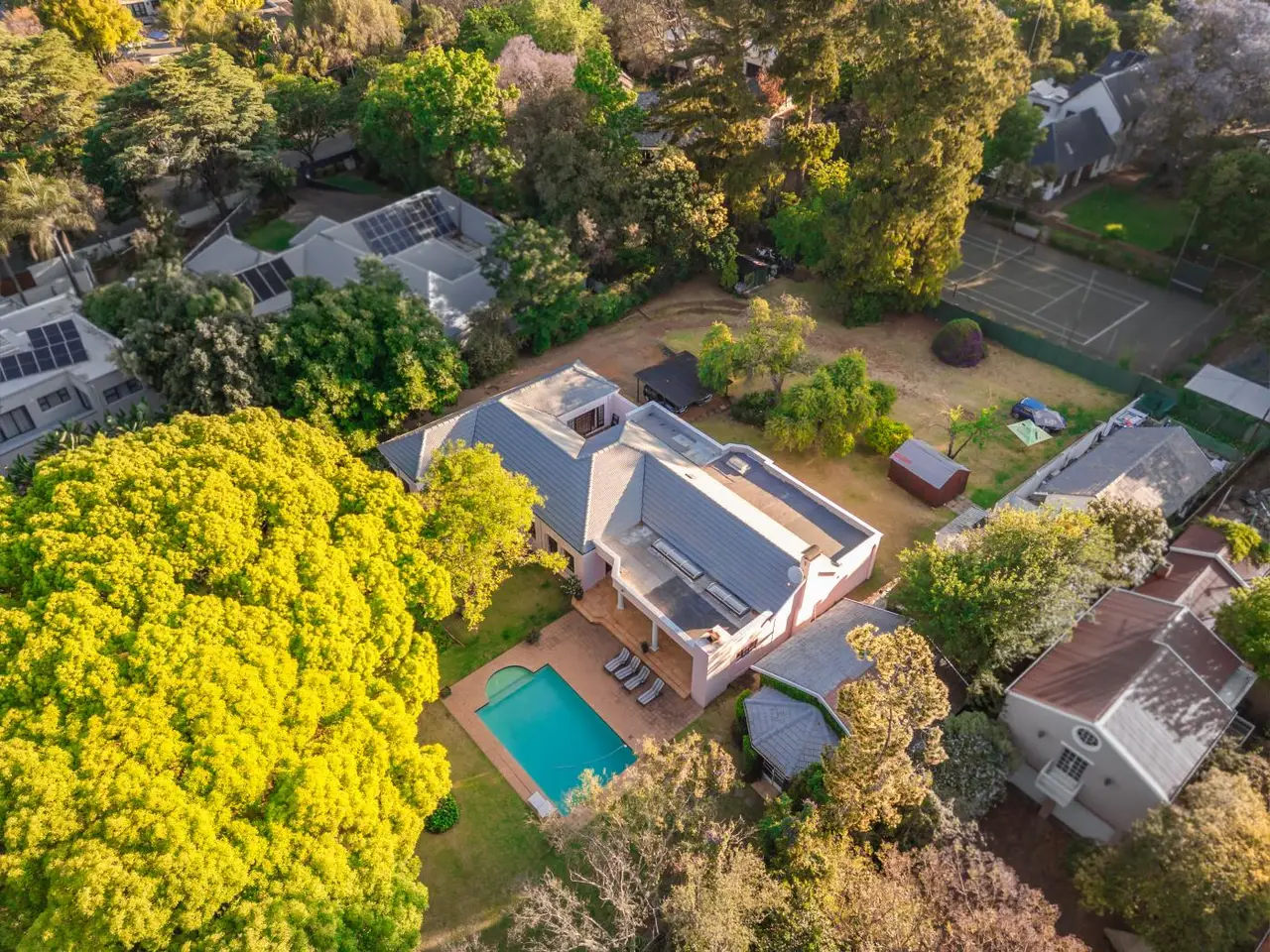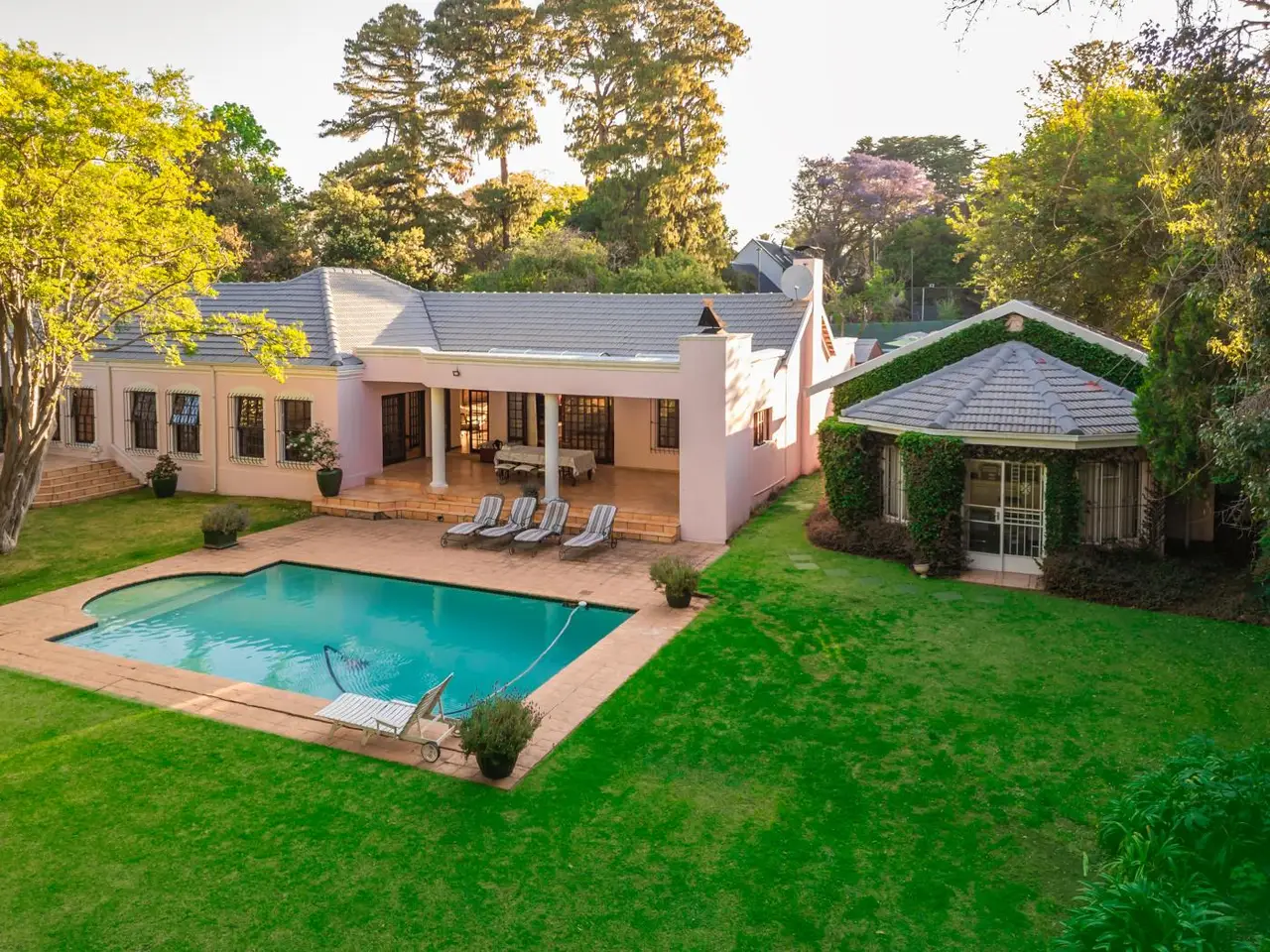Discover a rare and significant offering in the heart of sought-after Illovo. Nestled on an expansive 3700 square meter stand, this magnificent single-storey family residence offers an unparalleled blend of classic elegance, sprawling space, and ultimate convenience. With 518m-¦ under roof, this is a home of grand proportions, designed for both tranquil family living and sophisticated entertaining. A Legacy Property: From the moment you arrive, a sense of privacy and establishment pervades. The park-like garden, a true masterpiece of landscape design, is anchored by majestic 150-year-old trees, creating a timeless and serene atmosphere. This is not just a home; it is a private sanctuary, a world away from the city's pace, yet moments from its heart. Seamless Indoor-Outdoor Living: The home's intelligent layout flows effortlessly from the formal lounge and separate dining room to a relaxed family room. The true soul of the home is the vast, covered entertainment patio. This exceptional space becomes an extension of your living area, perfect for hosting large gatherings or enjoying quiet family evenings, all while overlooking the sparkling swimming pool and the breathtaking, established grounds. Accommodations & Versatility: Four Generous Bedrooms: The private wing hosts four spacious bedrooms, providing serene retreats for the entire family. Two bedrooms feature full en-suite bathrooms, offering privacy and luxury. 3.5 Elegant Bathrooms: Tastefully appointed and perfectly located to service the home and guests. Executive Home Office / Cottage: A separate, self-contained cottage provides the ultimate work-from-home solution. Fully equipped for a professional office, it ensures a seamless and productive workflow without compromising the sanctity of the main house. It is also perfectly suited as a private guest suite, artist's studio, or teen pad. Extensive Staff Quarters: Three well-appointed staff rooms provide comfortable accommodation for live-in support. The Unrivalled Location: Positioned strategically between the Sandton and Rosebank CBDs, this address offers the pinnacle of convenience. Your commute is effortless. World-class amenities are on your doorstep, including: Top-Tier Schools: In the catchment area for St David's Marist Inanda, Kingsmead College, Pridwin Preparatory, and The Wanderers Club. High-End Retail: Moments from Hyde Park Corner, Sandton City, and the vibrant Melrose Arch precinct. Entertainment Hotspots: A stone's throw from top restaurants, art galleries, and exclusive social clubs. This is a unique opportunity to acquire a substantial landholding and a magnificent family home in one of Johannesburg's most prestigious and secure suburbs. For the discerning executive who values space, privacy, and location above all else, this property is an absolute must-see. Schedule your exclusive, private viewing today.