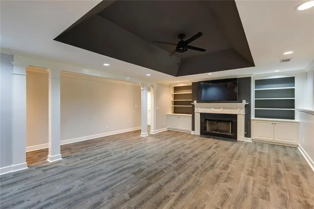 This stunning home, beautifully designed and thoughtfully renovated, sits on over an acre in a private cul-de-sac in the desirable Jeff Ferry Manor neighborhood. Surrounded by professionally landscaped grounds, the home has been impeccably maintained and offers the perfect blend of elegance, comfort, and modern sophistication. The grand two-story marble foyer opens to soaring ceilings, hardwood floors, and both front and rear staircases. The formal living room with fireplace flows into a banquet-sized dining room, while the breathtaking two-story great room features a dramatic wall of windows, stacked-stone fireplace, and custom cabinetry, opening to an expansive two-tier deck overlooking the private fenced backyard. The chef’s kitchen is a showpiece with custom white cabinetry, quartz counters, tile backsplash, professional-grade appliances, walk-in pantry, and a large center island where family and friends are sure to gather. A bright breakfast room with skylights connects to the vaulted family room with fireplace, creating an inviting everyday space. The oversized owner’s suite has an optional sitting area, spa-inspired bath, dual vanities, soaking tub, walk-in shower, and two spacious walk-in closets. Upstairs are three large ensuite bedrooms with large walk-in closets. A hidden sitting room is shared by two of the bedrooms-perfect for teenagers. The terrace level is built for entertaining and is equipped with a game room, full bar area, family room with fireplace, home theatre with custom seating and a state-of-the-art sound system. Not to be missed is a spectacular night sky ceiling. Additional spaces include a bedroom, full bath, office, exercise room, and flexible areas for whatever your lifestyle requires. With four fireplaces, new windows, an open layout, and attention to detail throughout, this home truly has it all. Located in Sandy Springs, it’s close to top public and private schools, shopping, dining, Dunwoody Country Club, and has offers convenient access to interstates for enjoying all Atlanta has to offer.