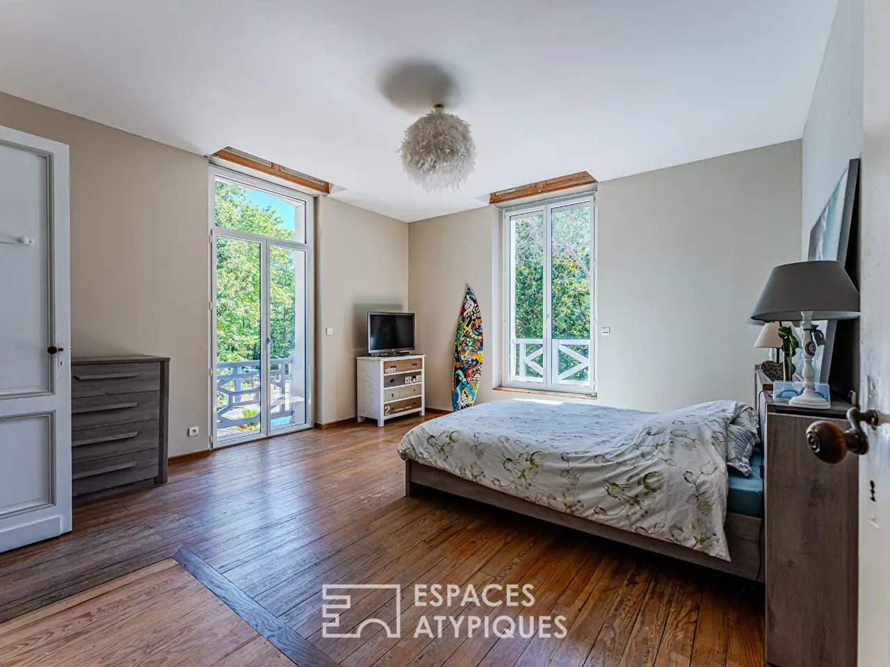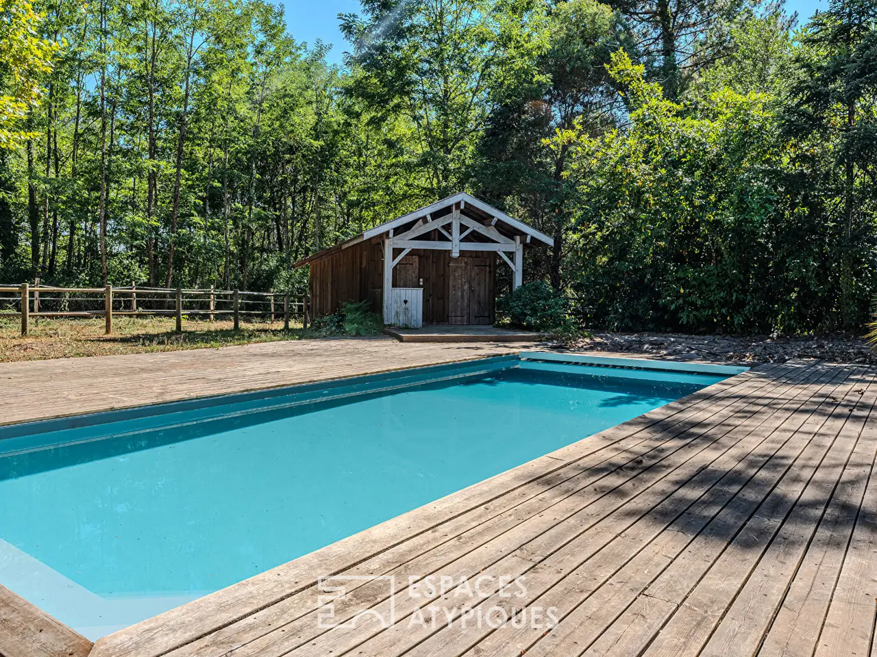 In Sanguinet, in the heart of a 1.4-hectare estate on the edge of the forest, this elegant mansion of approximately 360 sqm is spread over three levels. Carefully renovated, it combines old-world charm with high-end contemporary features. A true haven of peace, this exceptional property boasts a swimming pool, numerous outbuildings, and a wooded park with no overlooked views.The interior seduces with its generous volumes and omnipresent light. The ground floor features a vast living room, while a contemporary kitchen separated by a workshop glass wall extends this convivial space. The second living room, more intimate with its fireplace and library, is an invitation to relax.Upstairs, the master suite features a magnificent shower room and a large dressing room. Three spacious bedrooms and a bathroom complete this level.The pre-furnished top floor offers two additional bedrooms, a bathroom, and a large, modular space, providing the freedom to create, for example, an office, a workshop, or a games room.Outside, the park offers a preserved green setting, ideal for fully enjoying nature. The pool area also promises long moments of well-being.The property features a large barn, several shelters, and an equestrian area including two horse boxes and a tack room, perfect for lovers of forest walks and outdoor living projects.A rare place to live, this estate combines elegant character and remarkable amenities, in a privileged natural setting where calm and space reign supreme. A unique address for lovers of unique real estate while remaining close to Lake Sanguinet and its town center.REF. 11835EALDAdditional information* 12 rooms* 5 bedrooms* 1 bathroom* 2 shower rooms* Floor : 3* 3 floors in the building* Outdoor space : 15000 SQM* Property tax : 2 138 €Energy Performance CertificatePrimary energy consumptionb : 105 kWh/m2.yearHigh performance housing*A*105kWh/m2.year6*kg CO2/m2.yearB*C*D*E*F*GExtremely poor housing performance* Of which greenhouse gas emissionsb : 6 kg CO2/m2.yearLow CO2 emissions*A*6kg CO2/m2.yearB*C*D*E*F*GVery high CO2 emissionsEstimated average annual energy costs for standard use, indexed to specific years 2021, 2022, 2023 : between 2220 € and 3050 € Subscription IncludedAgency feesThe fees include VAT and are payable by the vendorMediatorMediation Franchise-Consommateurswww.mediation-franchise.com29 Boulevard de Courcelles 75008 ParisInformation on the risks to which this property is exposed is available on the Geohazards website : www.georisques.gouv.fr