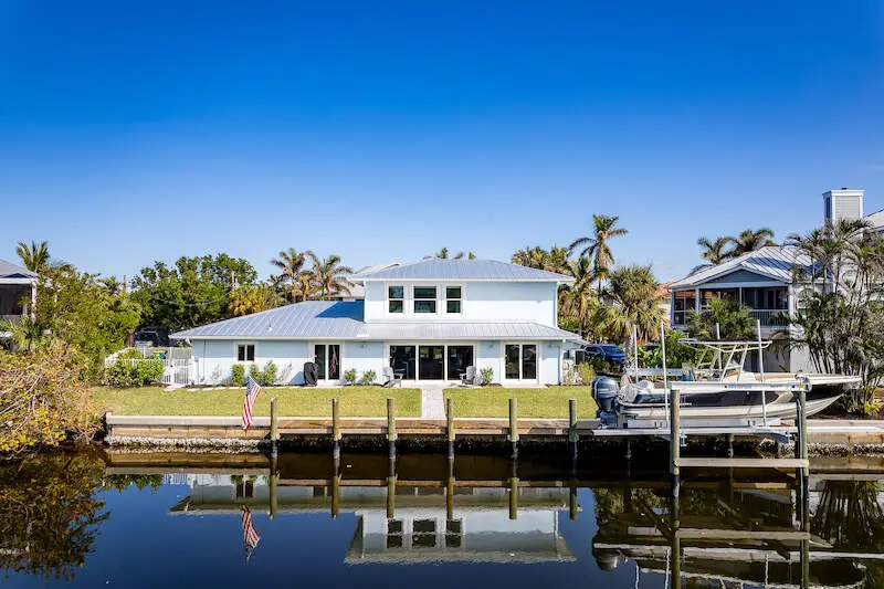 This completely renovated, fully furnished coastal contemporary retreat with charming Key West flair is ready for you to move in and start enjoying the Sanibel lifestyle immediately. Whether you prefer a leisurely stroll to the beach or setting out by boat, this home places paradise at your doorstep, situated on a picturesque canal with deep water Gulf access. The exquisite interior design mirrors the beauty of Sanibel Island's natural surroundings, featuring a beach-inspired color palette with floors, furnishings, and finishes that evoke the sandy shores and azure waters of the Gulf of Mexico. Every detail has been thoughtfully curated, from the brand-new metal roof to the luxurious high-end finishes throughout. The open-concept floor plan seamlessly connects the living, dining, and kitchen areas, all offering breathtaking waterfront views. The fully remodeled kitchen is a chef's dream, equipped with top-of-the-line appliances and elegant, functional finishes. This 3-bedroom, 2.5-bath home offers a spacious layout, complete with dual master suites-one on each floor-providing flexibility and privacy. Both suites feature tranquil water views and spa-like bathrooms with custom design elements. Outdoor living is equally spectacular, with a brand-new custom swimming pool and a private dock featuring a boat lift, making it a boater's paradise. Every detail of the home, from shower heads and faucets to mechanical systems, has been meticulously updated within the past few months, ensuring a worry-free experience. Located in a prime spot, this home offers quick access to the Gulf, pristine beaches, and all the natural beauty and charm Sanibel Island offers. Don't miss this rare opportunity to own a magnificent waterfront property that combines contemporary luxury with timeless coastal appeal.
