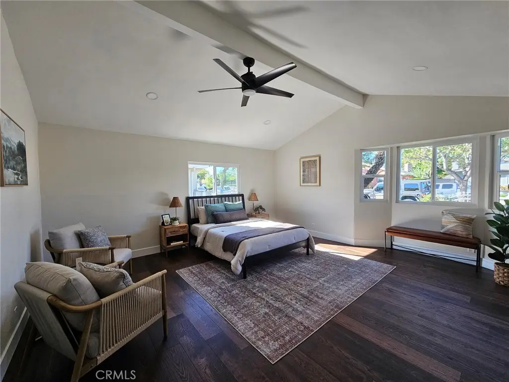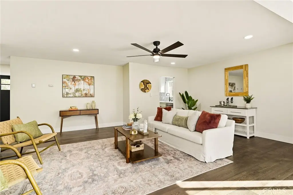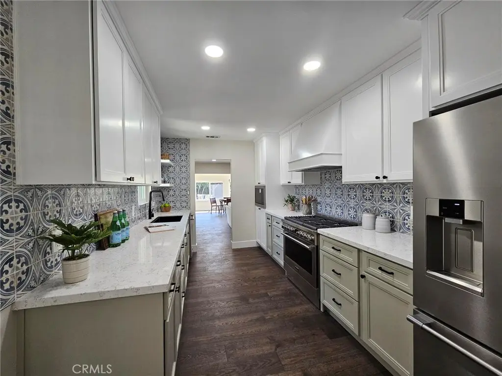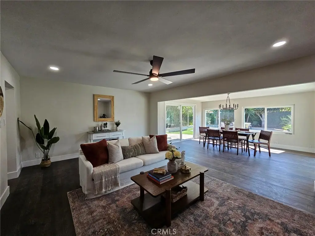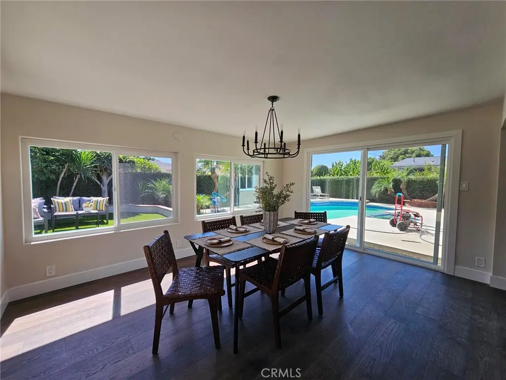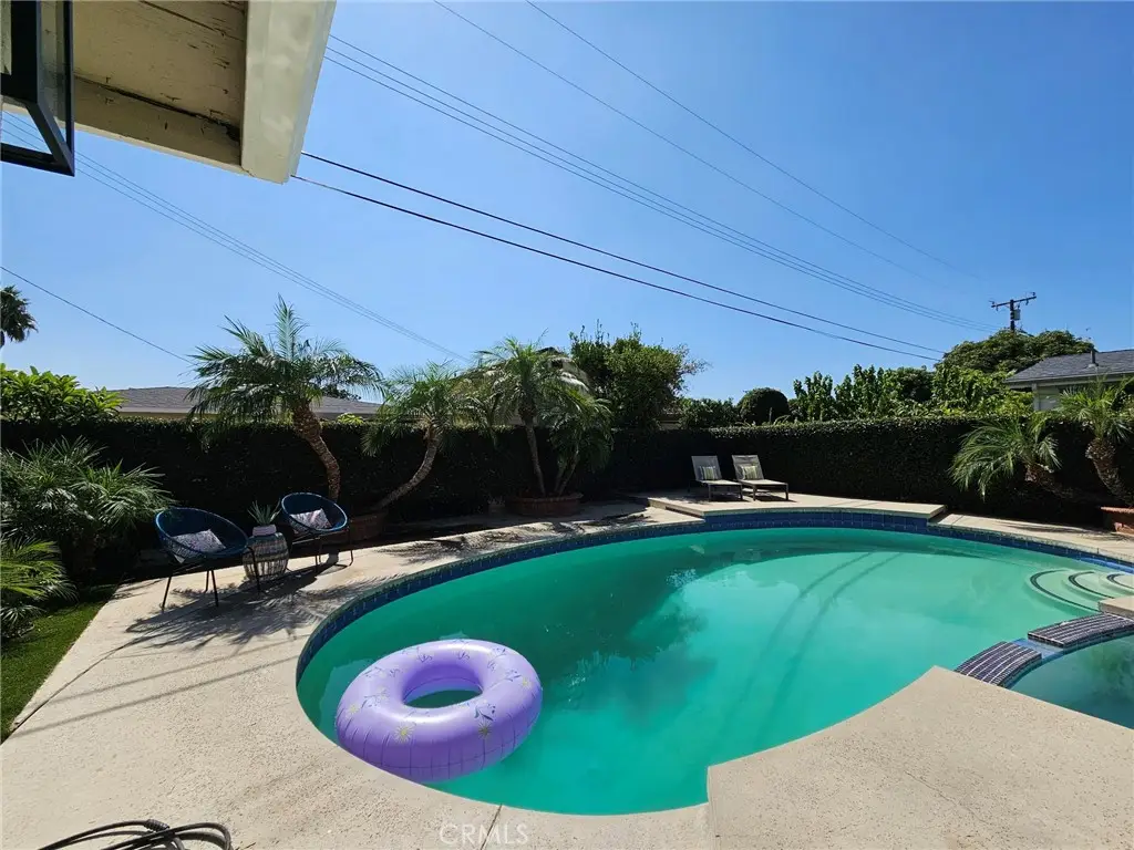 Welcome to this beautifully UPDATED 5 bedroom, 2-bathroom pool home. This home has an inviting curb appeal with an enclosed landscaped front yard and front courtyard area with new Saltillo tile. The kitchen has been updated with new two-tone cabinets, sleek counter tops, tile backsplash, stylish fixtures and stainless-steel appliances. The spacious primary bedroom has vaulted ceilings, a large walk-in closet with custom built-ins, and ensuite bathroom. Both the primary and hall bathroom feature new double sink vanities, stylish new fixtures, and custom tile work. Other features include freshly painted interior and exterior, new engineered hardwood flooring throughout the living area and bedrooms, new energy efficient vinyl windows, new plumbing and light fixtures, upgraded electrical panel, HVAC, new garage door and motor, and spacious indoor laundry room. This home is great for fun and entertainment with a great outdoor space. The private enclosed backyard has a large, covered patio, manicured yard and sparkling in ground pool and spa. There is a two-car garage and additional off-street driveway parking. Tax rolls show different bedroom and bath count and square footage.