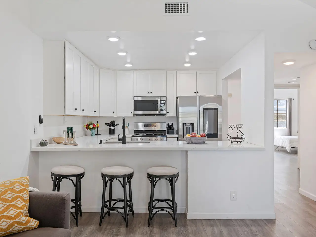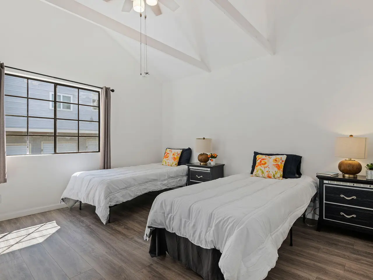 Tucked away on a quiet cul de sac, this cozy unit is situated in the Woodside Condo complex. Updated kitchen and baths and high ceilings make this a delightful place to call home. The private balcony is perfect for casual entertaining and BBQ's. Detached garage and a dedicated uncovered parking space in front of the unit makes for convenient parking. Convenient to Santa Barbara's beautiful Yacht Harbor, West Beach and Santa Barbara City College. Would be great housing for a SBCC student or second home.