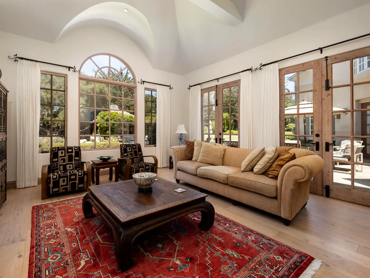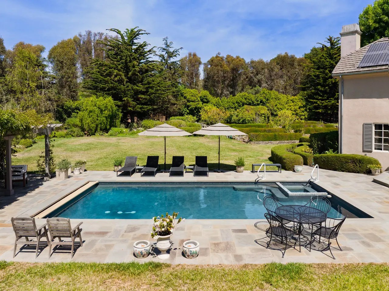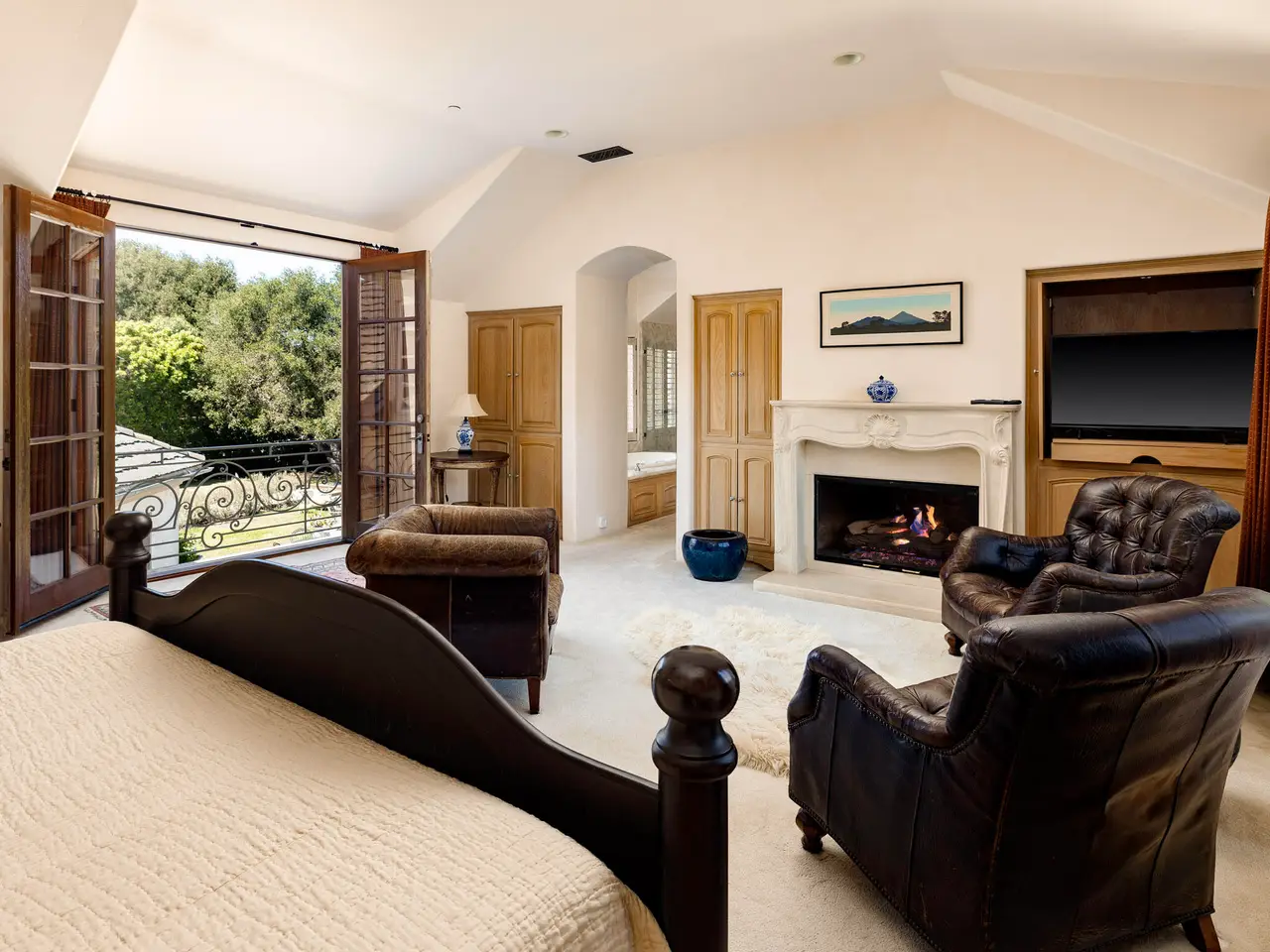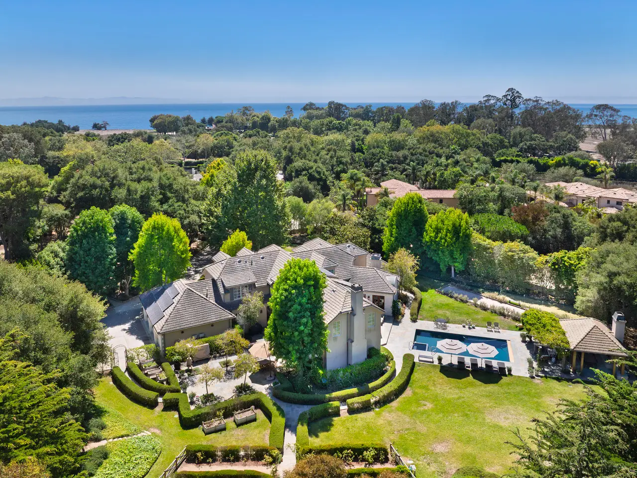 Exceptional Hope Ranch estate built by Rick Jeffries in 1998, showcasing timeless craftsmanship and quality. With 6 bedrooms, 6.5 baths, and approx. 5,900 sq ft on 1.7 usable acres, this gated property offers both privacy and versatility. Inside, soaring ceilings, newer wood floors, and abundant natural light create a warm, inviting atmosphere. Formal living and dining rooms with fireplaces set the stage for entertaining, while the spacious kitchen/family room (remodeled in 2023), dedicated study, and main-level bedroom/media room provide flexibility for modern living. The upstairs primary suite is a true retreat with fireplace, spa-like bath, and large walk-in closet. Each of the secondary bedrooms features its own en-suite bath, ensuring comfort and privacy for family and guests alike. Outdoors, the property shines with a pool and spa, open cabana with fireplace and BBQ, bocce court, and a 6-hole putting green. Rose gardens, fruit trees, raised vegetable beds, emerald lawns, and meandering paths complete the setting. Additional highlights include an oversized 3-car finished garage, owned solar system, and complete privacy behind gates. This estate seamlessly blends elegance, comfort, and resort-style amenities in a coveted Hope Ranch location.