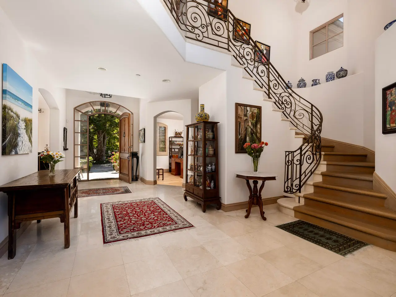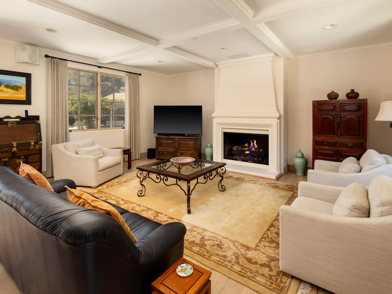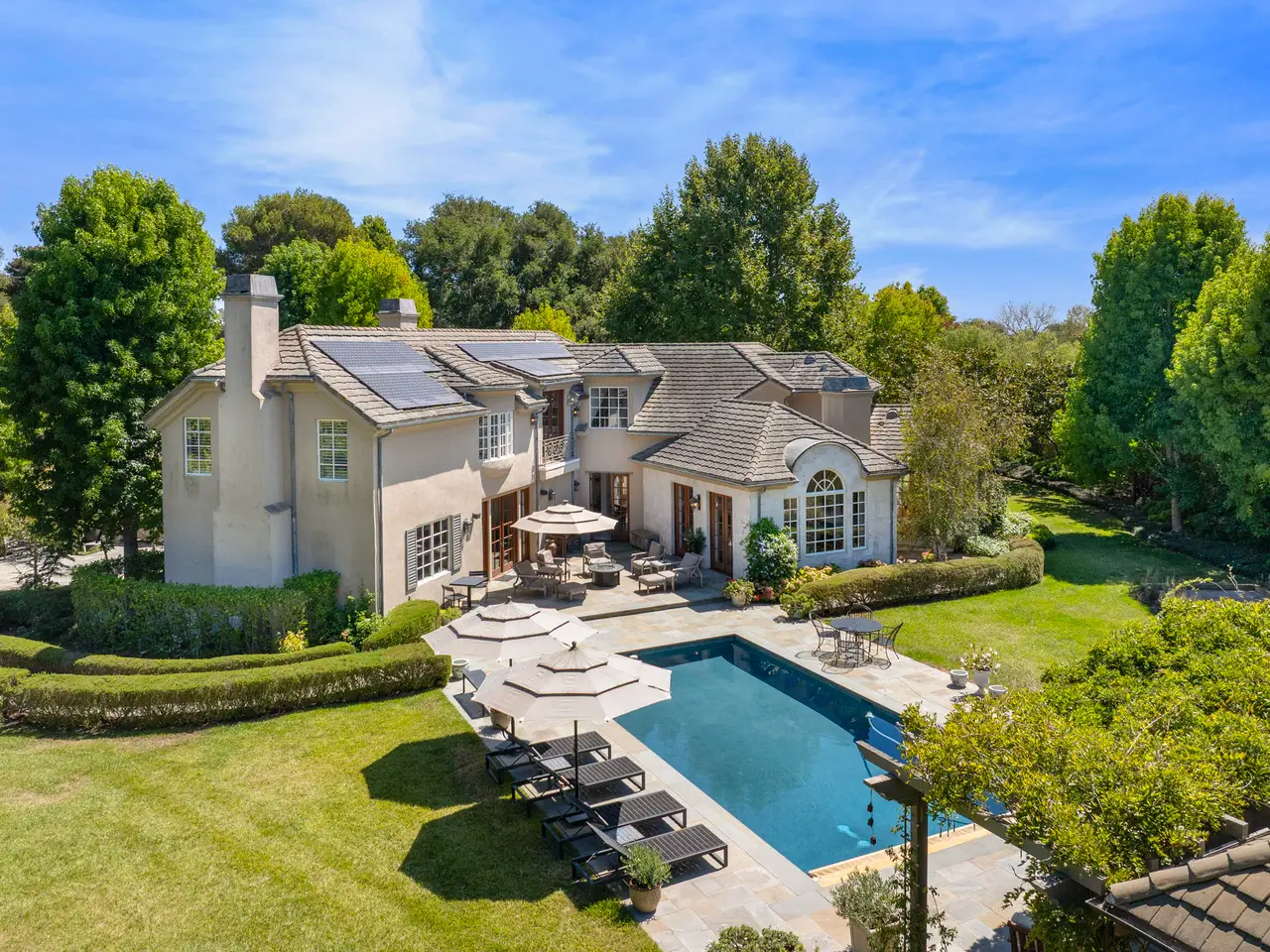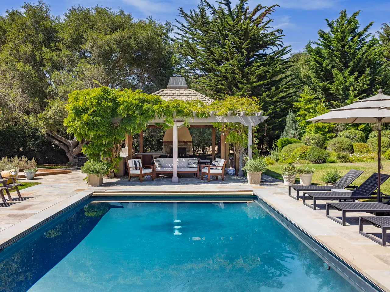 Exceptional Hope Ranch estate built by Rick Jeffries in 1998, showcasing timeless craftsmanship and quality. With 6 bedrooms, 6.5 baths, and approx. 5,900 sq ft on 1.7 usable acres, this gated property offers both privacy and versatility. Inside, soaring ceilings, newer wood floors, and abundant natural light create a warm, inviting atmosphere. Formal living and dining rooms with fireplaces set the stage for entertaining, while the spacious kitchen/family room (remodeled in 2023), dedicated study, and main-level bedroom/media room provide flexibility for modern living. The upstairs primary suite is a true retreat with fireplace, spa-like bath, and large walk-in closet. Each of the secondary bedrooms features its own en-suite bath, ensuring comfort and privacy for family and guests alike. Outdoors, the property shines with a pool and spa, open cabana with fireplace and BBQ, bocce court, and a 6-hole putting green. Rose gardens, fruit trees, raised vegetable beds, emerald lawns, and meandering paths complete the setting. Additional highlights include an oversized 3-car finished garage, owned solar system, and complete privacy behind gates. This estate seamlessly blends elegance, comfort, and resort-style amenities in a coveted Hope Ranch location.