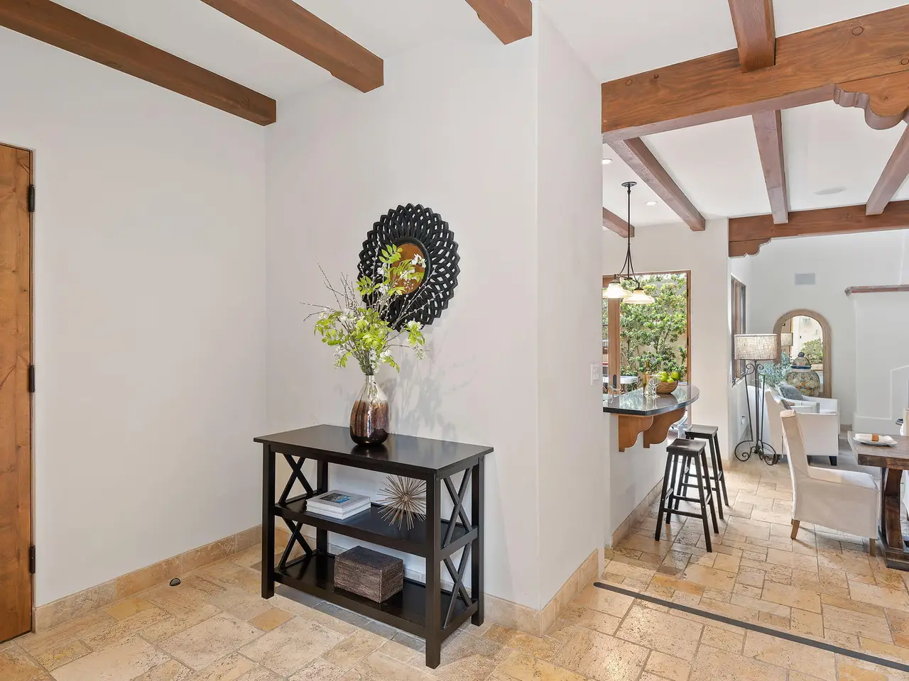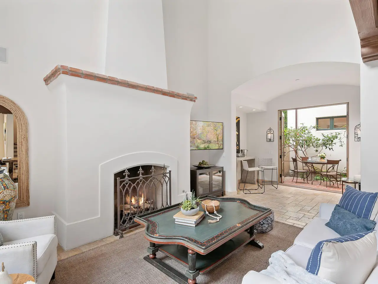 Luxury Living in Downtown Santa Barbara at Anacapa Villas, a gated enclave of 8 Tuscan-style homes just steps from State Street, the waterfront, and Funk Zone. Designed by renowned architect Barry Berkus and built in 2006, this approx. 2,900 sq. ft. home features 3 beds, 3.5 baths, a loft den, and an attached 2-car garage. Enjoy two private brick patios (one with a spa), natural stone floors, vaulted ceilings, solid wood doors, and custom iron fixtures. The gourmet kitchen boasts granite counters, stainless appliances, and a Thermador 6-burner range. The spacious primary suite offers a spa-like bath, walk-in closet, and balcony. A second-floor guest bedroom offers a private bathroom and walk-in closet. The oversized top floor ensuite bedroom enjoys wonderful mountain and Riviera views.