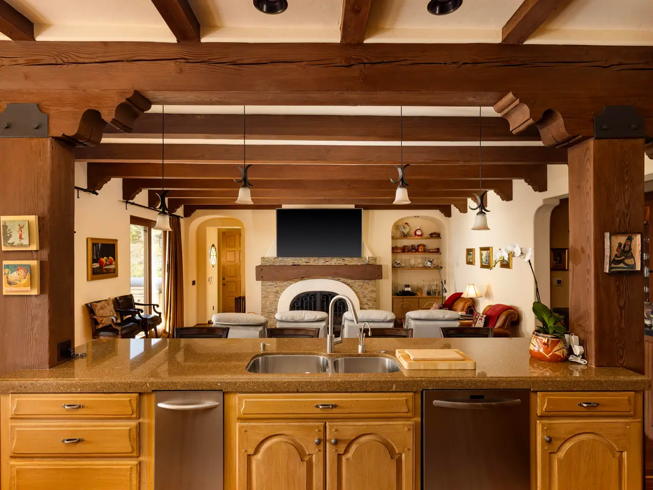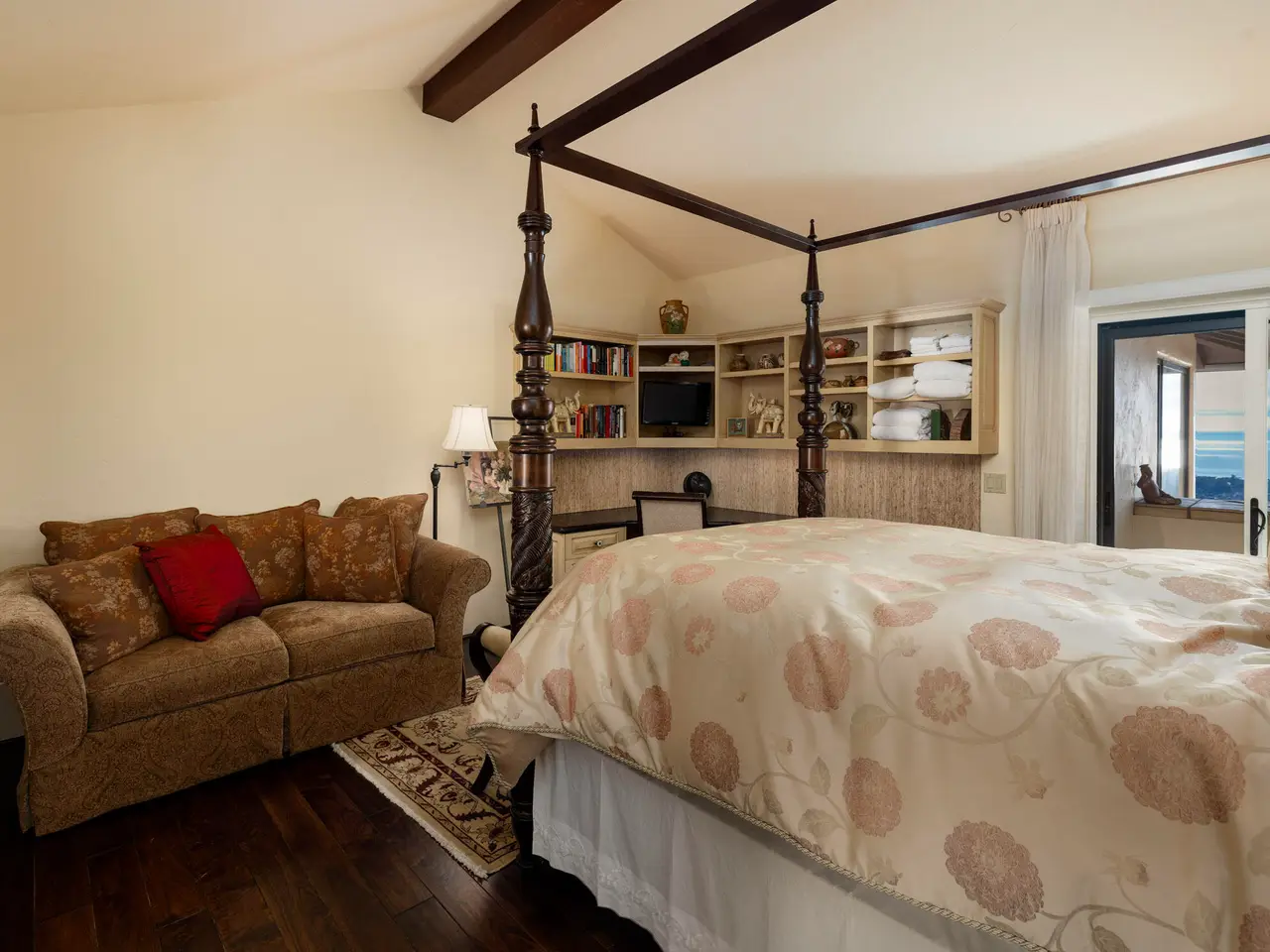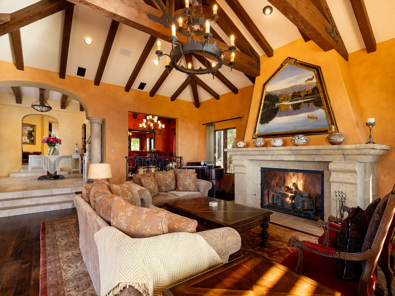 Defined by its vast ocean, island, & harbor views stretching over the Pacific, this estate offers an ever-changing panorama of tranquil horizons. The ocean's beauty fills every room with natural light & serenity. Grand arched entryway, intricate wrought iron door, soaring ceilings with exposed beams, & stone floors evoke the charm of a European villa. A magnificent stone fireplace stands as the core of the grand living room. This space is large enough for several seating areas all flowing out to the pool terrace and /or gardens. The Formal Dining Room opens to both the Living Room and has a private terrace complete with a fountain and lush landscaping. Expansive Gourmet Kitchen with View Breakfast room. The Kitchen features Stainless steel appliances as well as a large island with seating Commodious storage in the adjacent walk-in pantry and separate butler's pantry. Family Room flows from the Kitchen space to a covered entertaining terrace complete with barbeque. The Family Room has a custom fireplace as well as a full wet bar with bar seating and an exceptionally large temperature controlled Wine Cellar. A Library features a fireplace, built-ins as well as a full bathroom. Library/office has direct access to the gardens and terraces. The Grand Staircase leads to the Primary suite as well as 4 additional suites with several opening out to view terraces. The gracious Primary Suite is in its own wing and offers a sitting area w/fireplace, beamed ceilings as well as several ocean/harbor view terraces. The Primary Suite Bath features an enormous steam shower, separate jacuzzi style tub, dual vanities and commode closet. Two very large walk-in closets with custom built-ins complete the space. An additional custom spa is reached off the bedroom wing. Additional features include a gated entry, an oversize three car garage with storage, a Full Home generator, Car charging station, Private shared well for irrigation as well as a private gym room off the pool. This property also features numerous terraces, large lawn area, numerous fruit trees, and a glistening pool with spa and water feature.