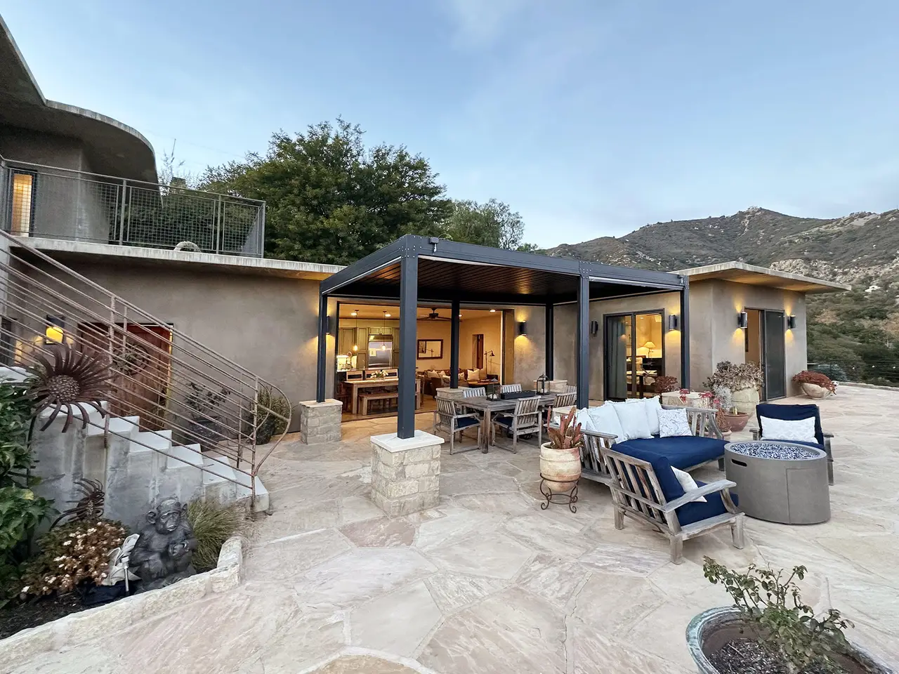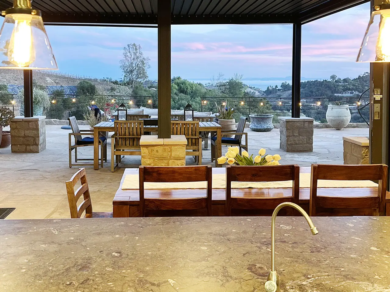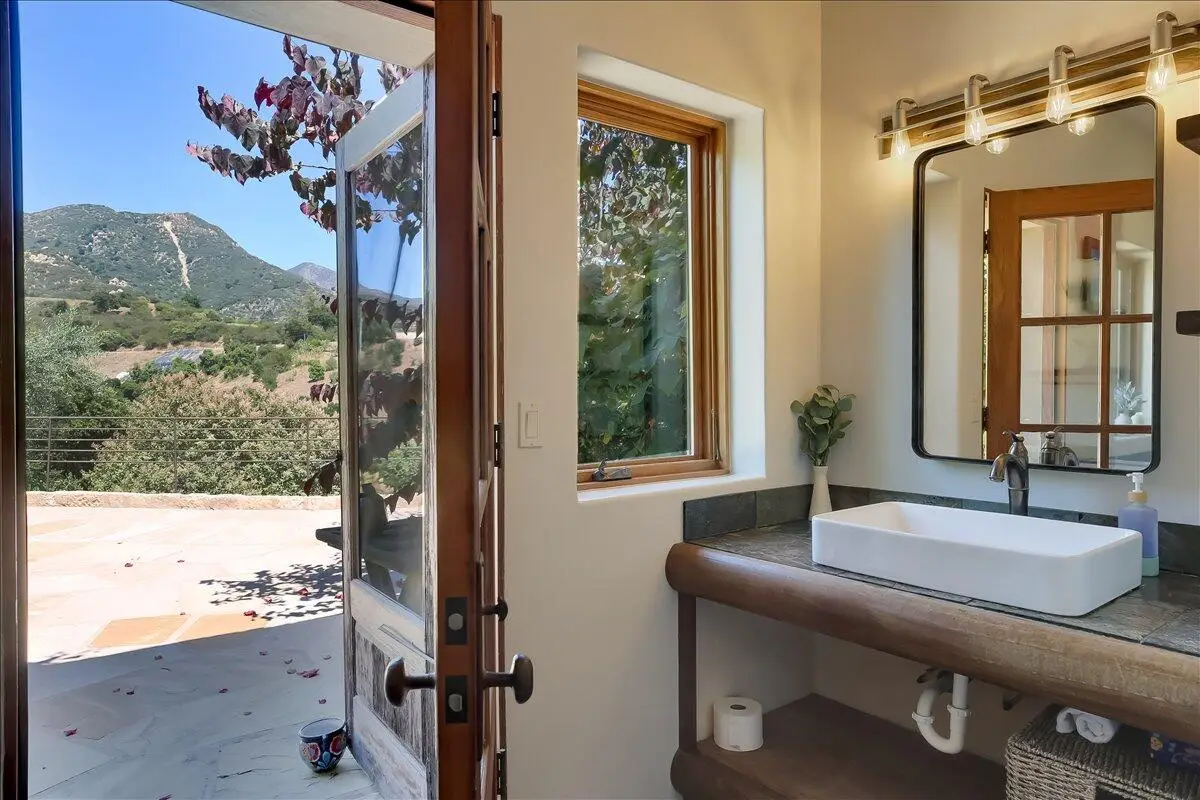 Ocean, island & mountain views! Located in a serene rural neighborhood, this 11 year new contemporary home, with owned solar system, & on over 5 acs., offers privacy & tranquility & yet is only minutes to shops & dining. Flooded with natural light & featuring tall ceilings, the spacious great room, with custom full pocket doors, provides a seamless flow to the oversized south-facing flagstone patio with an adjustable shade pergola. The gourmet kitchen features unique limestone countertops, custom tile work & cabinetry, high-end appliances & a breakfast bar. A quiet ocean view ground-floor primary suite, with private patio & windows on 3 sides, provides a calm space to relax. The primary bathroom features a spa tub & a spacious slate-tiled shower. One guest room is... ... off the entry & the third bedroom, (or office), is on the second floor & has its own separate entrance, ensuite bathroom & spacious terrace. Unwind in nature, watch soaring birds over green trees & soak in magical sunrises & sunsets from this peaceful retreat!