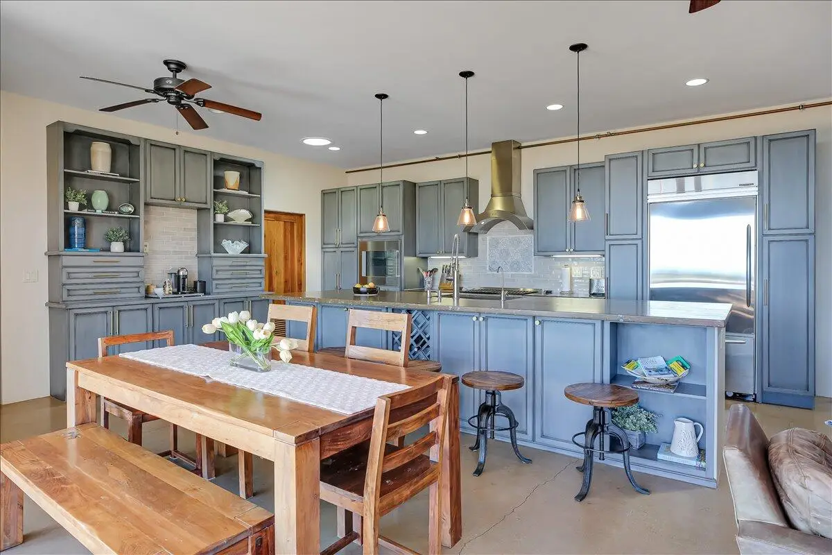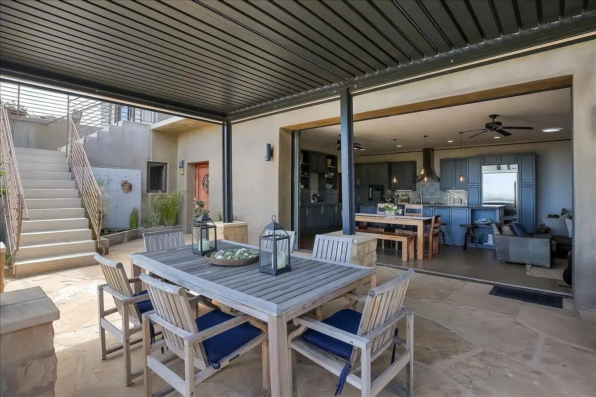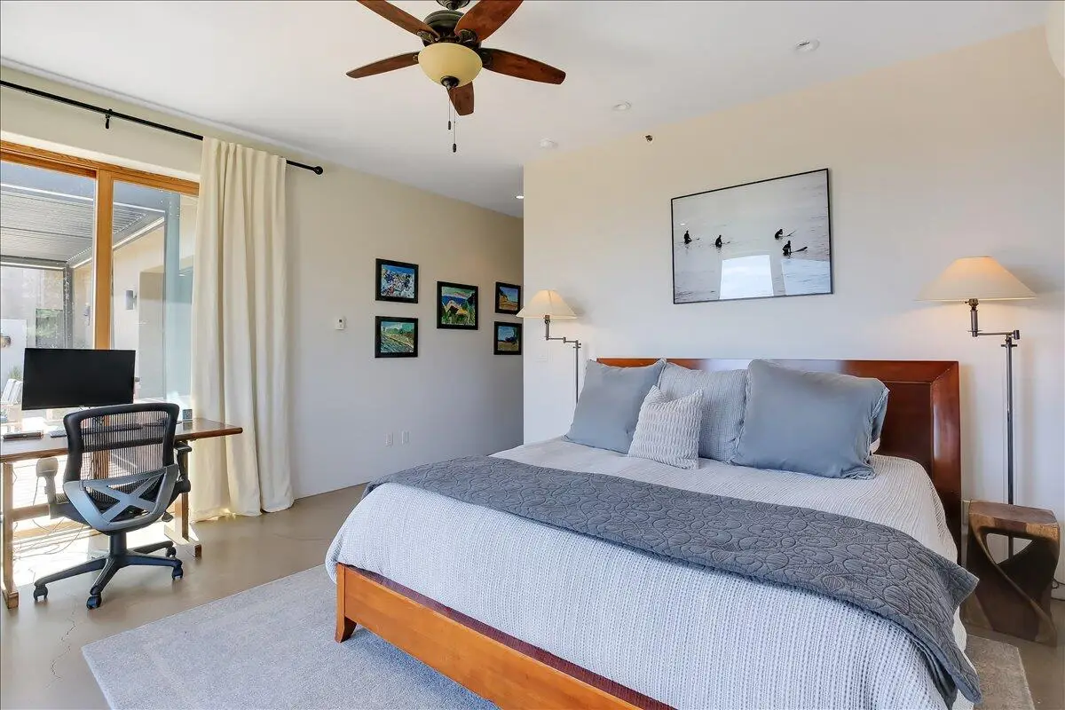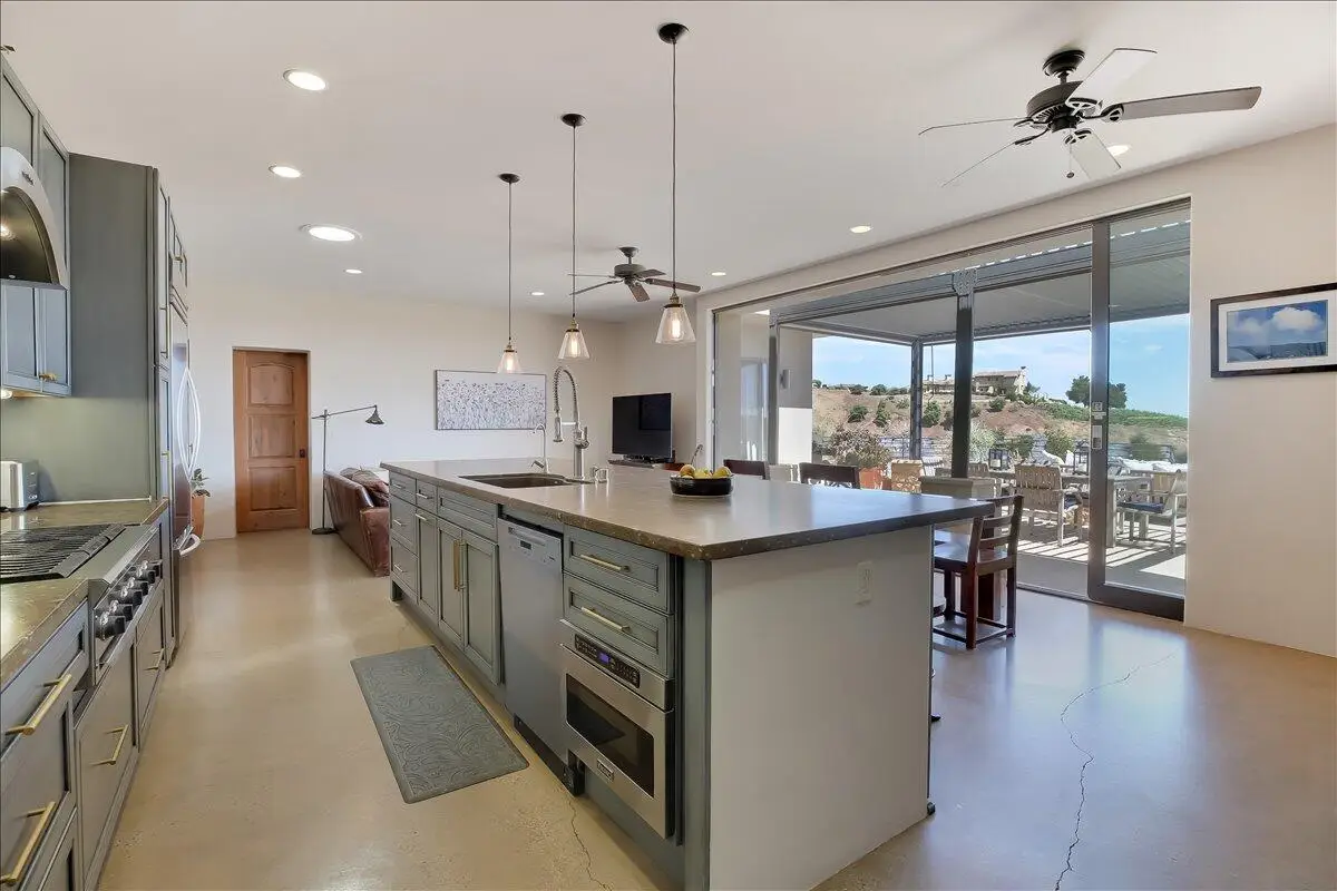 Ocean, island & mountain views! Located in a serene rural neighborhood, this 11 year new contemporary home, with owned solar system, & on over 5 acs., offers privacy & tranquility & yet is only minutes to shops & dining. Flooded with natural light & featuring tall ceilings, the spacious great room, with custom full pocket doors, provides a seamless flow to the oversized south-facing flagstone patio with an adjustable shade pergola. The gourmet kitchen features unique limestone countertops, custom tile work & cabinetry, high-end appliances & a breakfast bar. A quiet ocean view ground-floor primary suite, with private patio & windows on 3 sides, provides a calm space to relax. The primary bathroom features a spa tub & a spacious slate-tiled shower. One guest room is... ... off the entry & the third bedroom, (or office), is on the second floor & has its own separate entrance, ensuite bathroom & spacious terrace. Unwind in nature, watch soaring birds over green trees & soak in magical sunrises & sunsets from this peaceful retreat!