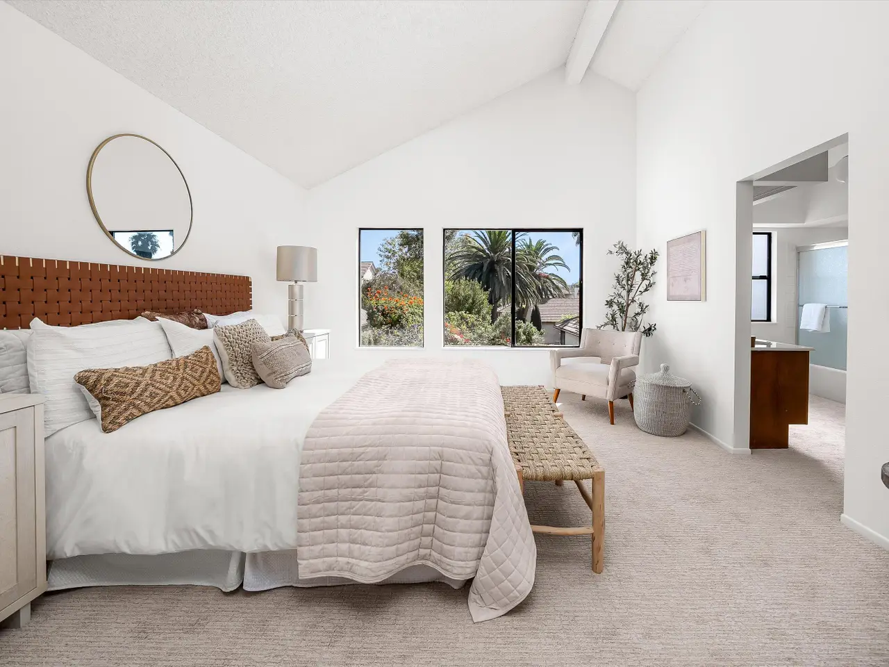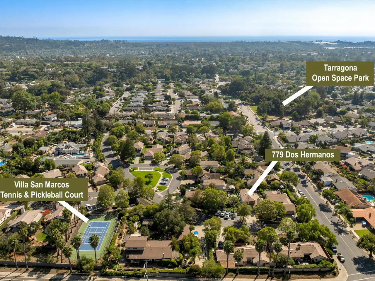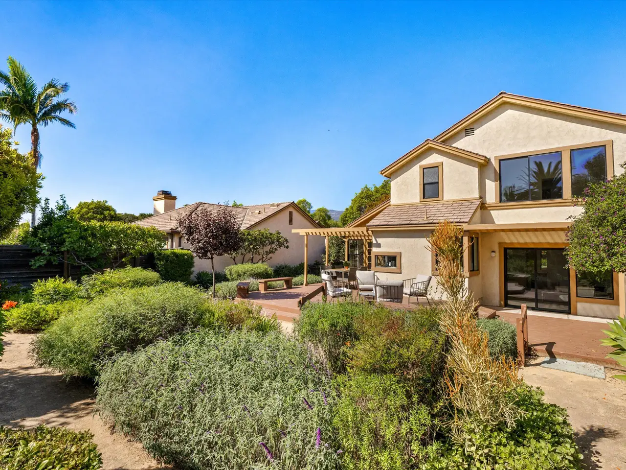 Graceful Santa Barbara Living in a Peaceful Villa San Marcos with Community Tennis/Pickleball Court. Welcome to a bright & inviting home where comfort meets lifestyle. Nestled in a serene pocket off main roads, this timeless designed residence features soaring ceilings, a formal living room with fireplace, and a casual family room that flows into a sunlit, eat-in kitchen with an abundance of cabinetry & storage, the perfect space for gathering & everyday indoor outdoor living. The home also includes a powder bath, open office area, laundry room w/sink &a two-car garage. The indoors open to your own private south facing oasis, complete beautiful landscaping, apple trees & a spacious entertaining deck with covered outdoor dining ideal for gatherings, relaxing, or enjoying quiet moments.