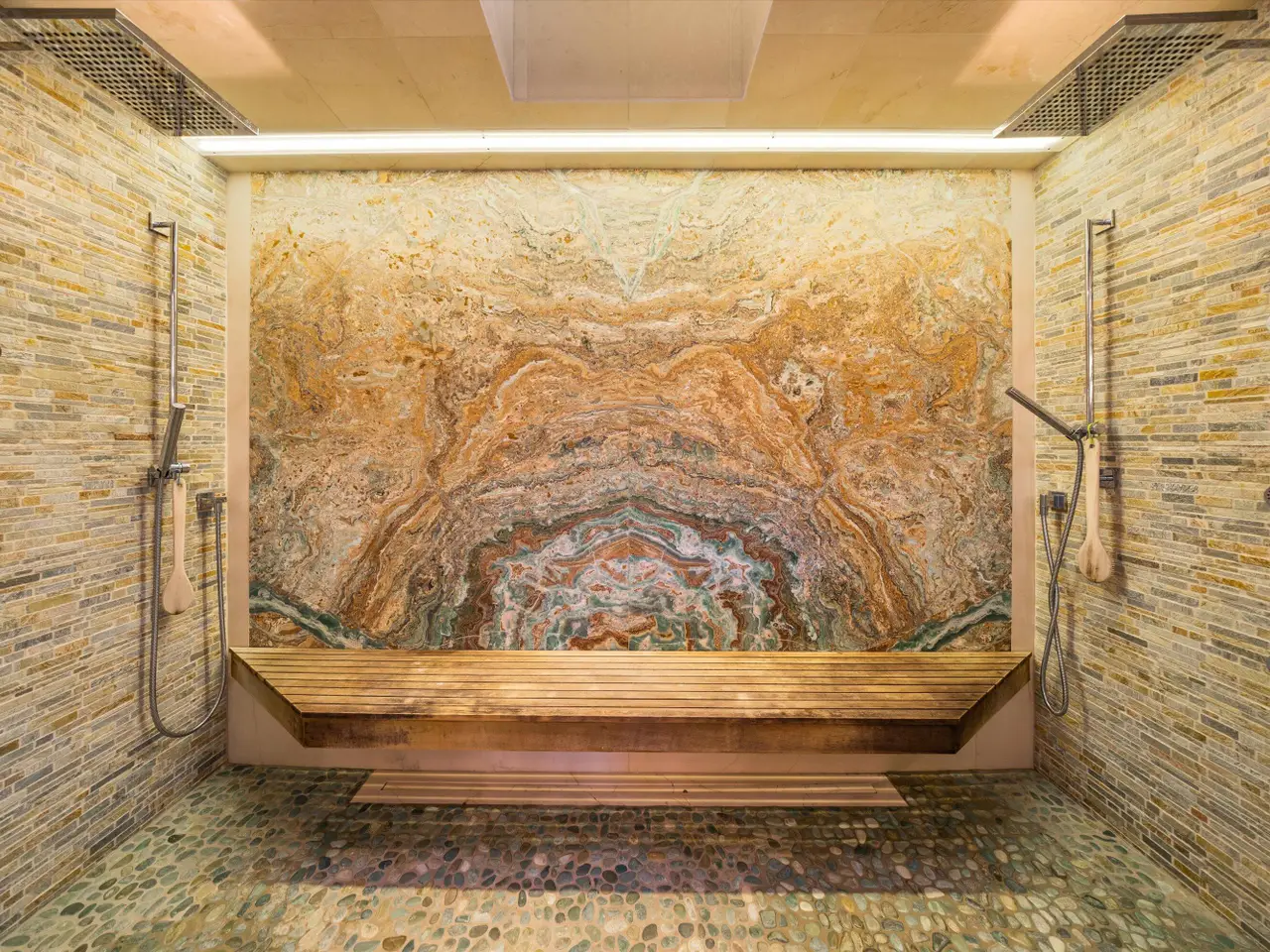 Dramatic agate fireplace