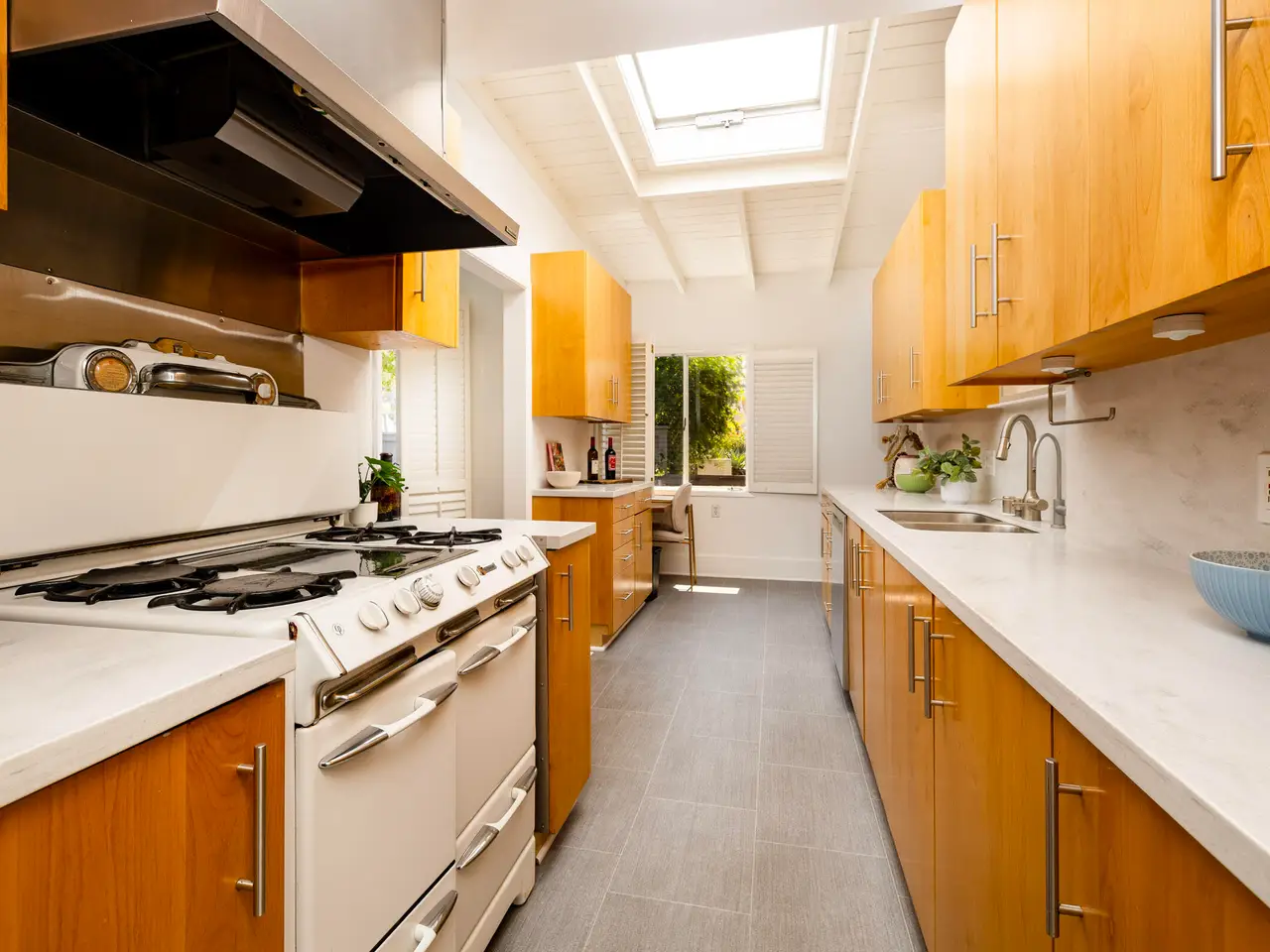 Bring Backup - Continue to Show!! Nestled close to the Mesa & in one of Santa Barbara's most desirable neighborhoods you'll stumble upon 1330 Valerio. Originally constructed in 1951 this single level mid-century modern home blends timeless design with thoughtful updates. Thirteen-thirty offers light filled living spaces, modern amenities and vintage charm. The living room features an exposed beam ceiling, solid oak floors, a wood burning fireplace, multiple skylights & a south facing bay window. The kitchen combines a vintage O'Keefe & Merritt stove with modern updates like a Bosch dishwasher & contemporary style cabinetry. Wander beyond the kitchen to an expansive primary suite which includes a large sitting area w/ a fireplace, a custom en-suite bath, laundry and French doors leading to the backyard. The second bedroom and bath are ideal for guests, family or a home office. Garden spaces feature beautiful drought tolerant landscaping, fruit trees and outdoor living spaces. Attached to the home is a fully finished 1 car garage that can be easily accessed off of Calle Cerro. This home is located in a beautiful neighborhood just a short distance to Eilings Park, Hendry's Beach & the Mesa!