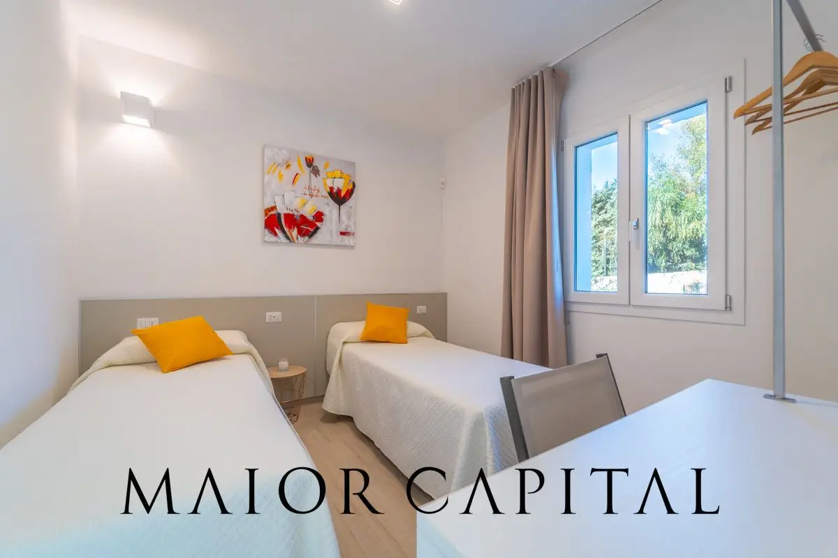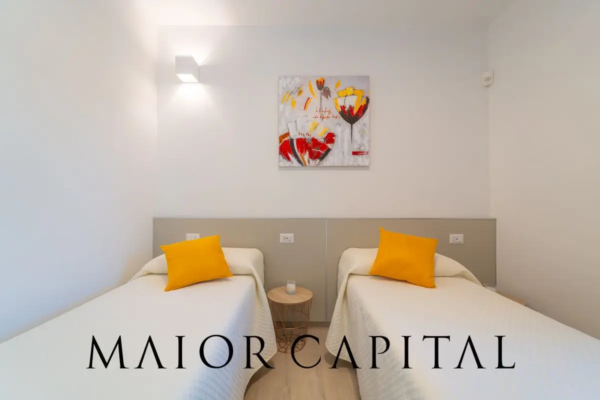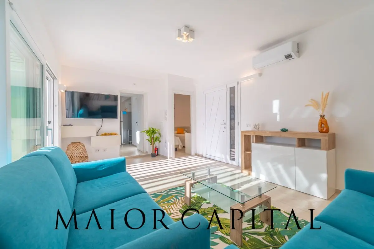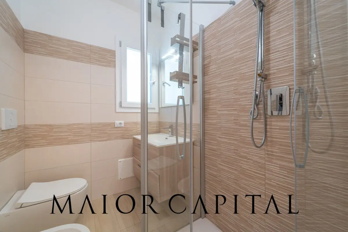 Inside, the rooms stand out for their brightness and harmony. The spacious and welcoming living room, enhanced by elegant finishes and colour details, creates a warm and relaxing atmosphere. The modern kitchen, linear and functional, opens onto the dining area, made even more suggestive by the large panoramic windows that favour continuity between inside and outside.