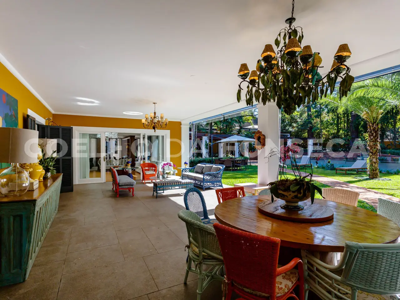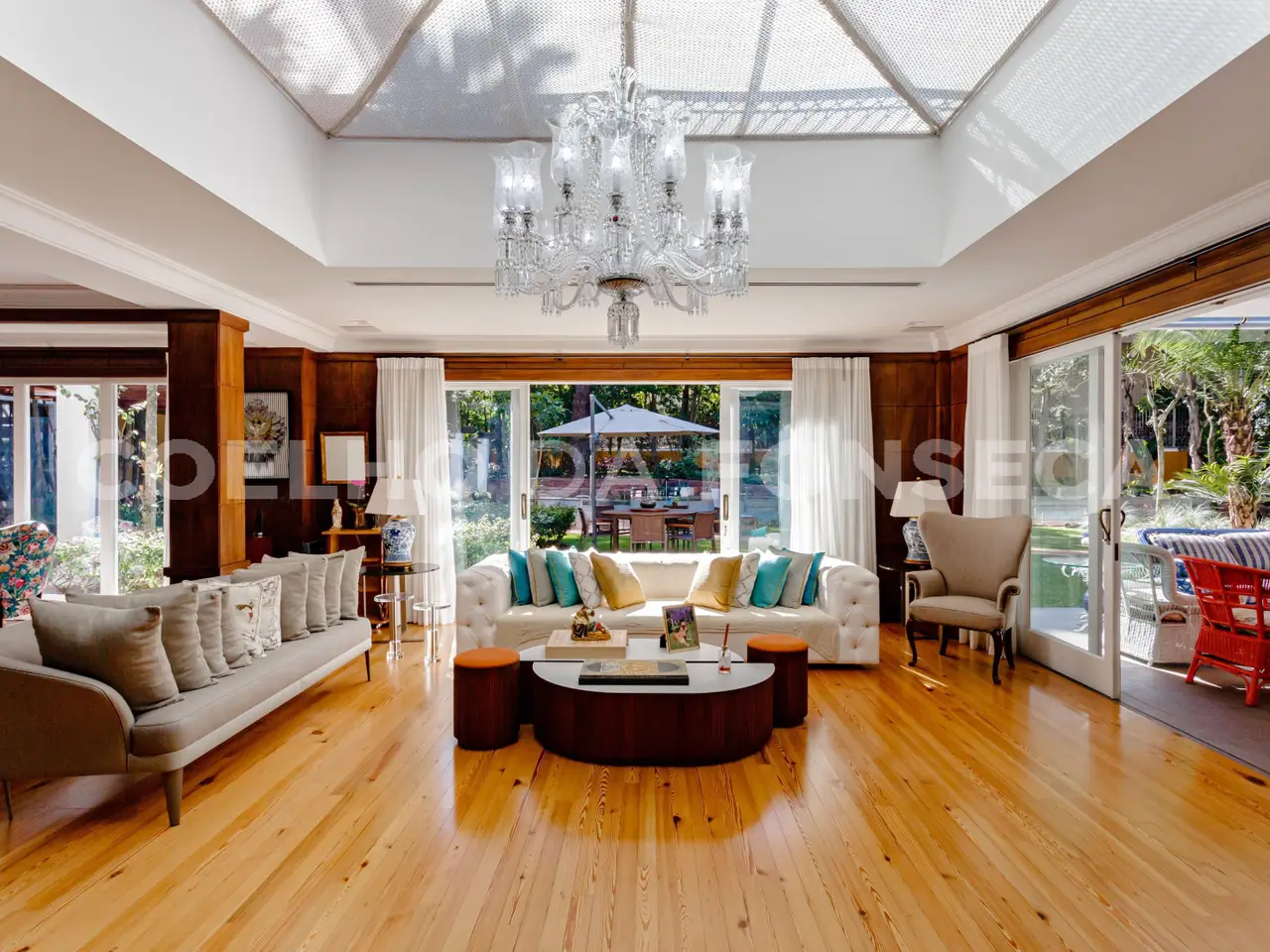 In classic Portuguese colonial style, this residence blends traditional charm with a touch of contemporary elegance. The house features a grand living room with high ceilings, seamlessly connected to the other social areas and a delightful veranda overlooking a vast and lush garden. Every space is rich in meticulously restored original details, including custom woodwork, floors, tiles, and fixtures—history is felt in every corner. In the private wing of the main house, there are four spacious suites, all with built-in wardrobes and access to a large, charming veranda adorned with period railings and flooring—perfect for enjoying views of the garden and the surrounding neighborhood’s mature trees. The entire floor, including windows and French doors, is reinforced and secure. A very special feature of the property is its separate annex, which includes a gym, guest suite, multipurpose room, home cinema, fully equipped support kitchen, and gourmet area with barbecue grill—plus the lovely “Jaboticaba Tree Plaza.” Modern security systems with cutting-edge technology are in place, including a reinforced guardhouse. The house also features a full backup generator and both internal and external elevators for accessibility. Located in the Jardim Europa neighborhood, this home offers 1,190 m² of built area, 5 bedrooms, 5 suites, 9 parking spaces, 8 bathrooms, swimming pool, generator, office, sauna, air conditioning, staff quarters, verandas, and has been fully renovated.