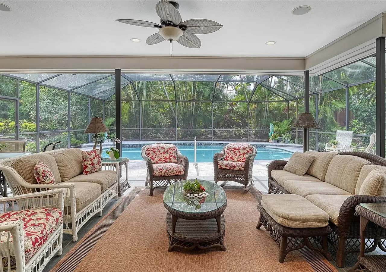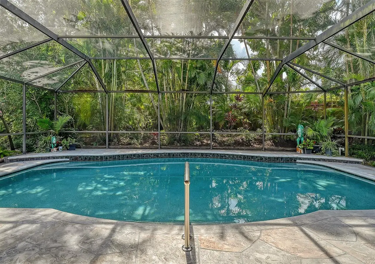 Located in Sarasota’s coveted and 24-hour guard-gated West of Trail community, The Landings, this beautifully reimagined 3-bedroom, 3-bath residence with a bonus room offers refined coastal living and peace of mind through extensive, high-quality updates. Situated on a lushly landscaped lot with mature trees and privacy and not in a flood zone, this 2,921 sf home blends timeless architecture with thoughtful modern improvements, all just minutes from Siesta Key’s world-famous beaches and Downtown Sarasota. Hurricane-impact windows were added in 2023, and the newer roof and updated PVC plumbing offer structural integrity and long-term value. Design upgrades include porcelain tile flooring and beautiful custom wood cabinetry and built-ins. The fully updated kitchen features premium stainless appliances, Silestone counters, stylish cabinetry, a picture frame window overlooking the beautiful garden, a convenient pass thru window to the lanai, and custom walk-in pantry. The adjacent dining room is perfect for entertaining and the formal living room with its high ceiling is anchored by a woodburning fireplace with tiled hearth and built-ins. The split-bedroom floor plan offers privacy and functionality, with all 3 bedrooms, (one currently outfitted as a convenient home office with solid wood built-ins) boasting custom walk-in closets and lovely bathrooms. A spacious bonus room is light and bright and includes a redesigned alcove with floor-to-ceiling custom built-ins to house books, media, or art. Every inch of this home reflects quality, style, and enduring craftsmanship. The interior of the home flows seamlessly to the elegant and serene exterior where you will enjoy the professionally redesigned landscape with exquisite plantings, brick paver driveway, meandering walking path, elevated relaxation area, peaceful fountain, and custom exterior lighting. The spectacular pool area underwent a major renovation in 2020 which included resurfacing with Pebble Tec (lifetime warranty), installation of a new heater and pump, and the addition of a stylish new Italian tile surround. The lanai was rescreened in 2023 and the deck was upgraded with a high-performance Pro Tech surface for durability and beauty. Located behind the gates of The Landings, residents enjoy tree-canopied streets, a nature trail leading to Roberts Bay, and optional membership to the Landings Racquet Club, offering tennis, pickleball, a heated pool, fitness center, and clubhouse. With proximity to A-rated schools, Southside Village, Sarasota Memorial Hospital, and the cultural amenities of downtown Sarasota, this property is a rare opportunity to own a truly move-in-ready home in one of Sarasota’s most sought-after communities