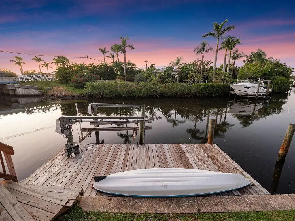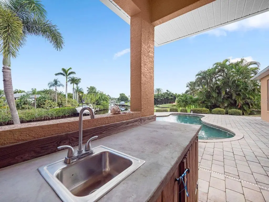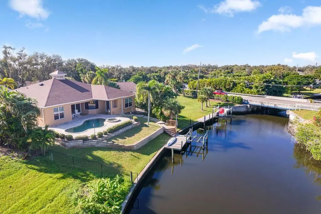 Welcome to your private oasis in vibrant South Sarasota - where luxury living meets laid-back, canal-front charm. Just minutes from Siesta Key and with no HOA, this 4-bedroom, 4-bathroom pool home with a 3-car garage, office, and private boat lift is the ultimate coastal retreat. A circular brick paver driveway and storage shed add style and practicality. Inside, French doors open to an expansive floor plan with stunning views of the pool and canal. The office (or 4th bedroom) features tray ceilings, hardwood floors, and an ensuite bath. The chef's kitchen boasts wood cabinetry, granite counters, stainless steel appliances, and a walk-in pantry. The living area, with coffered ceilings and pocket sliders, blends seamlessly with the lanai. The primary suite includes two walk-in closets, pool access, and a spa-like bath. A split plan adds privacy with two guest rooms and a flexible bonus room. Outside, enjoy a fenced yard, pool/spa, dock with snook lights and lift - minutes to beaches, dining, and Sarasota Bay.