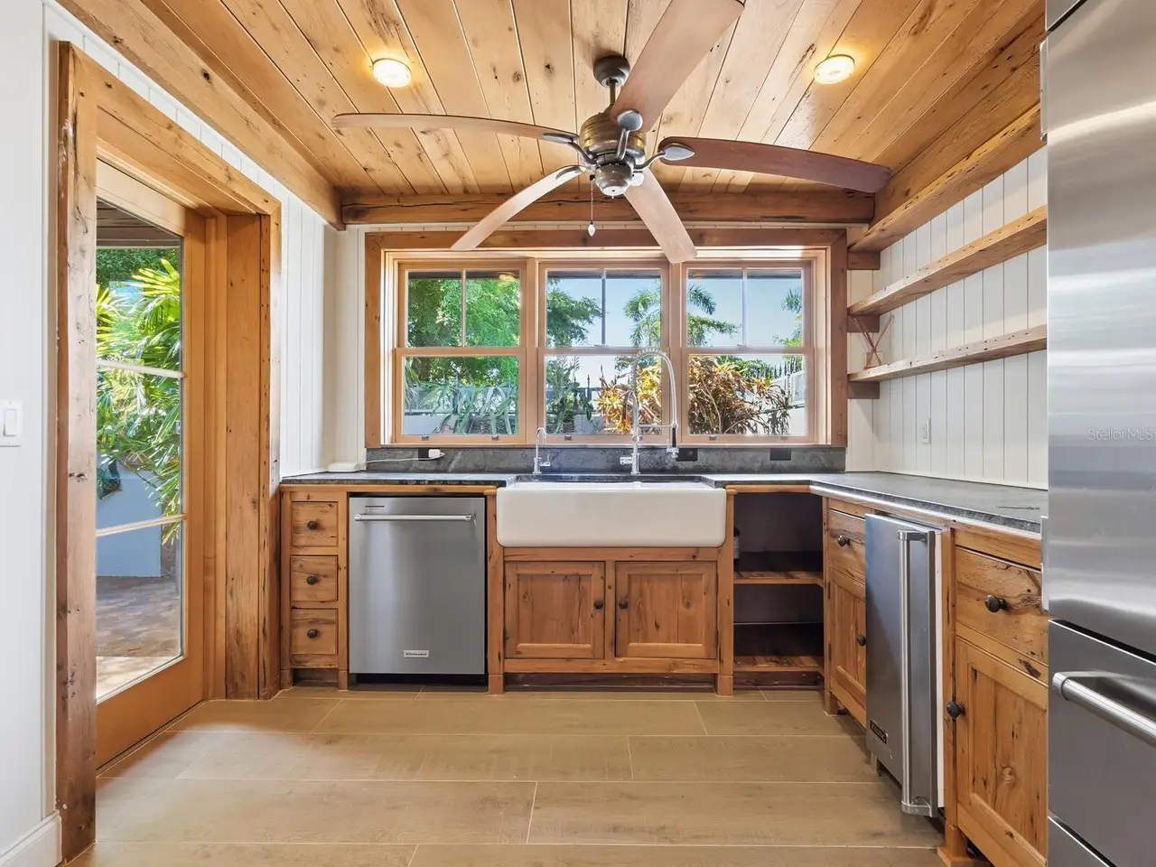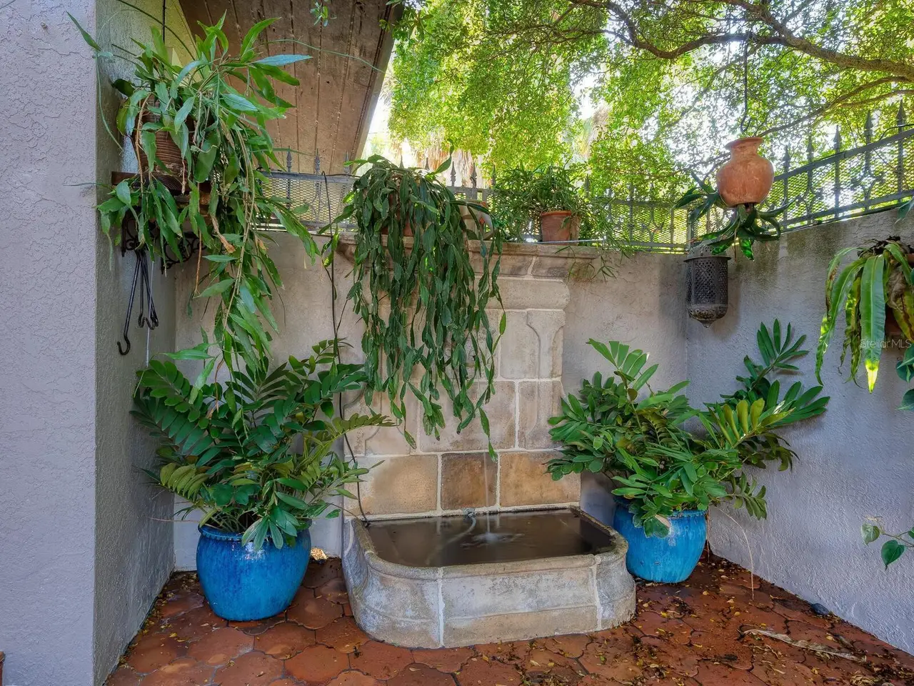 One or more photo(s) has been virtually staged. Hidden behind lush plantings is this beautifully restored and amazingly private two-story home boasting over 3900 sq ft of interior living space all moments away from the shops & cafes of St. Armands Circle, the beaches of Lido Key & downtown Sarasota. As you enter this hideaway of peace and tranquility you are greeted by a fountained courtyard garden through gates of aged iron. From there the interiors will call to the imagination as it evokes the visions of a bastide in Provence or a country home in the hills of Scotland. Imperfection is curated and intentional. Rooms flow easily enhanced by wide plank reclaimed wood floors, white ship lap walls framed with wood accents, reclaimed wood beams artfully placed throughout, thick roughhewn interior doors with patinaed hardware, an eclectic kitchen design with soap stone counters, side tables and oven backsplash, a double farm sink, a new 10- burner dual fuel gas range with two ovens, a Sub-Zero fridge with a glass door & four bottom draws to name just a few of the many appealing details. A grand front room leads to a beautiful staircase of wood and clay tiles with a landing at the center of the house leading you to the primary suite, encompassing the entire second floor. Here we have a library/seating room lined with bookshelves, roughhewn wide plank wood floors, a spacious bedroom with a Julliet balcony, two walk-in closets and bath with a tub, large quartz shower with horizontal subway tiles, dual shower heads & handheld and two vanities with surface mount sinks and quartz counters sitting on retrofitted antique cabinets. There is a loggia spanning the width of the house opening on to an exceptionally large backyard bursting with lush tropical foliage. The nearly 12,000 sq ft lot is 160 ft deep. Intricately laid clay tiles form multiple walkways and an extensive lounging area. Beautifully weathered custom wrought iron gates abound not only on the drive entry but also on the courtyard and on the arched window openings of the loggia. Aged clay tiles surround windows and doors, even the garage door. Custom crafted metal awnings adorn the windows. Exterior custom metal lanterns and sconces echo the same intentional aging. There are two tankless water heaters, a whole house water purifier and a well for the yard. This home will captivate you.