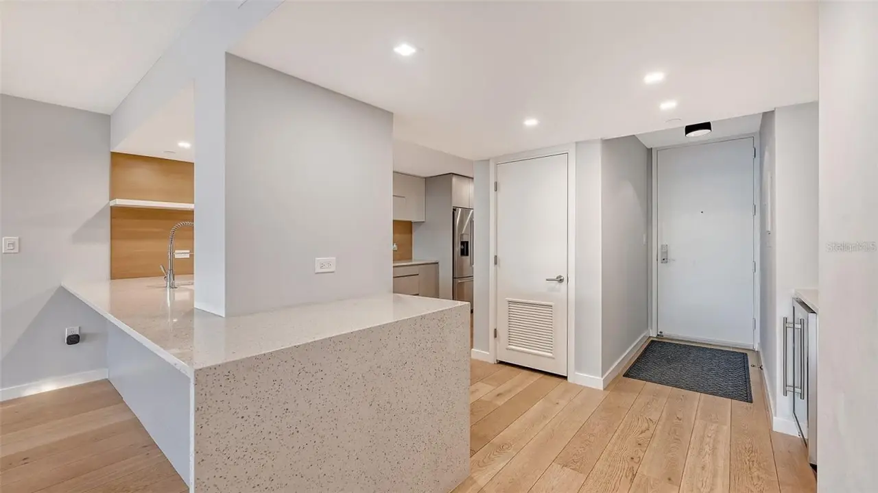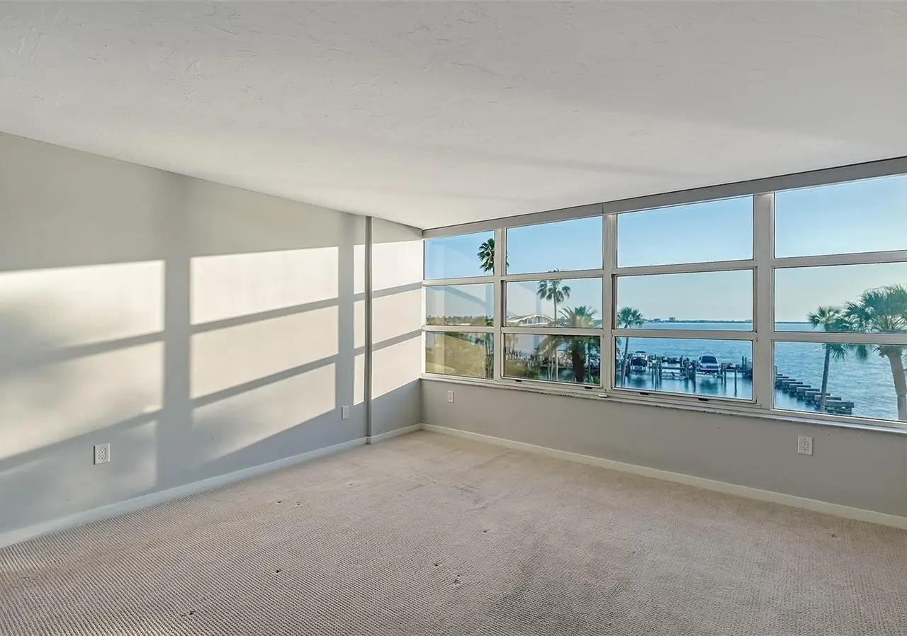 One or more photo(s) has been virtually staged. Direct Bayfront living in the heart of Sarasota at Condo on the Bay. This fully renovated 2 bed/2 bath residence features beautiful panoramic views of the Sarasota Bayfront with breathtaking sunsets over LBK and Ringling Bridge. Step into the inviting Great Room - greeted by a wall of impact glass floor-to-ceiling sliding doors that seamlessly blend the outdoors in, opening to a spacious balcony overlooking one of two residents pools, just steps from one of the long piers and boat slips. Interior features include White Oak engineered hardwood flooring flowing throughout the main living space, complemented by custom built-in cabinetry and a dry bar with a wine refrigerator for easy entertaining. A chef's delight, the modern kitchen features Elite Woodwork of Sarasota Cabinetry, stainless steel appliances including an induction cooktop and built-in wall oven and microwave, quartz countertops, Walnut wood backsplash, built-in pantry, and breakfast bar for casual dining. A conveniently located laundry closet with full-size stackable front-loading washer and dryer completes the kitchen. A true oasis, the master suite has serene water views, remote-controlled Hunter Douglas shades, and plenty of storage space with a large walk-in customized closet plus a full entry wall of built-in cabinetry. The updated en-suite bathroom features dual floating vanities, modern floor-to-ceiling tile, a walk-in shower with frameless glass enclosure and multiple shower heads. The generously sized secondary bedroom boasts double built-in closets and a secondary bathroom with a floating vanity, walk-in shower with a frameless glass enclosure, and a built-in linen closet. New Ruud A/C in March 2023. Set directly on Sarasota Bay, the highly sought after community offers a lifestyle of sophistication and serenity. A range of amenities include staffed 24-hour security gated guardhouse, 'sky lobbies located on a number of floors throughout, two resort-style pools overlooking the bay, two fitness centers, tennis courts, pickleball courts, concierge services and boat/kayak docks with a fishing pier. This pet-friendly Tower II residence includes one assigned under-building parking space with secure access and storage. Just steps away from Sarasota Bay Park and the vibrant culture and arts scene of Downtown Sarasota, world-class dining, shopping and entertainment. A short drive to St. Armand's Circle and Lido Beach. Don't wait - it is time to experience a luxurious urban life from the 3rd floor of Tower II, in the Bayfront heart of Downtown Sarasota!