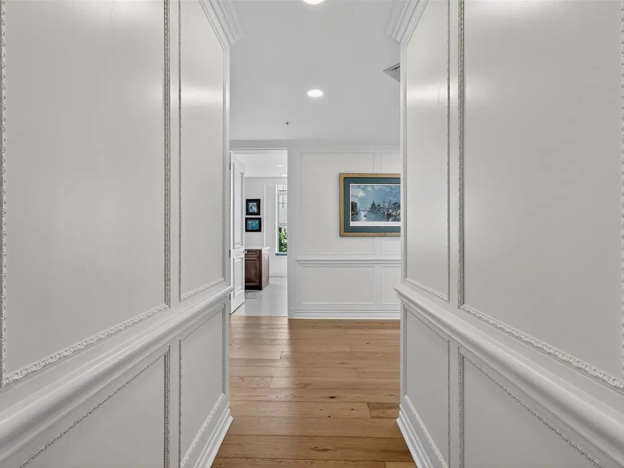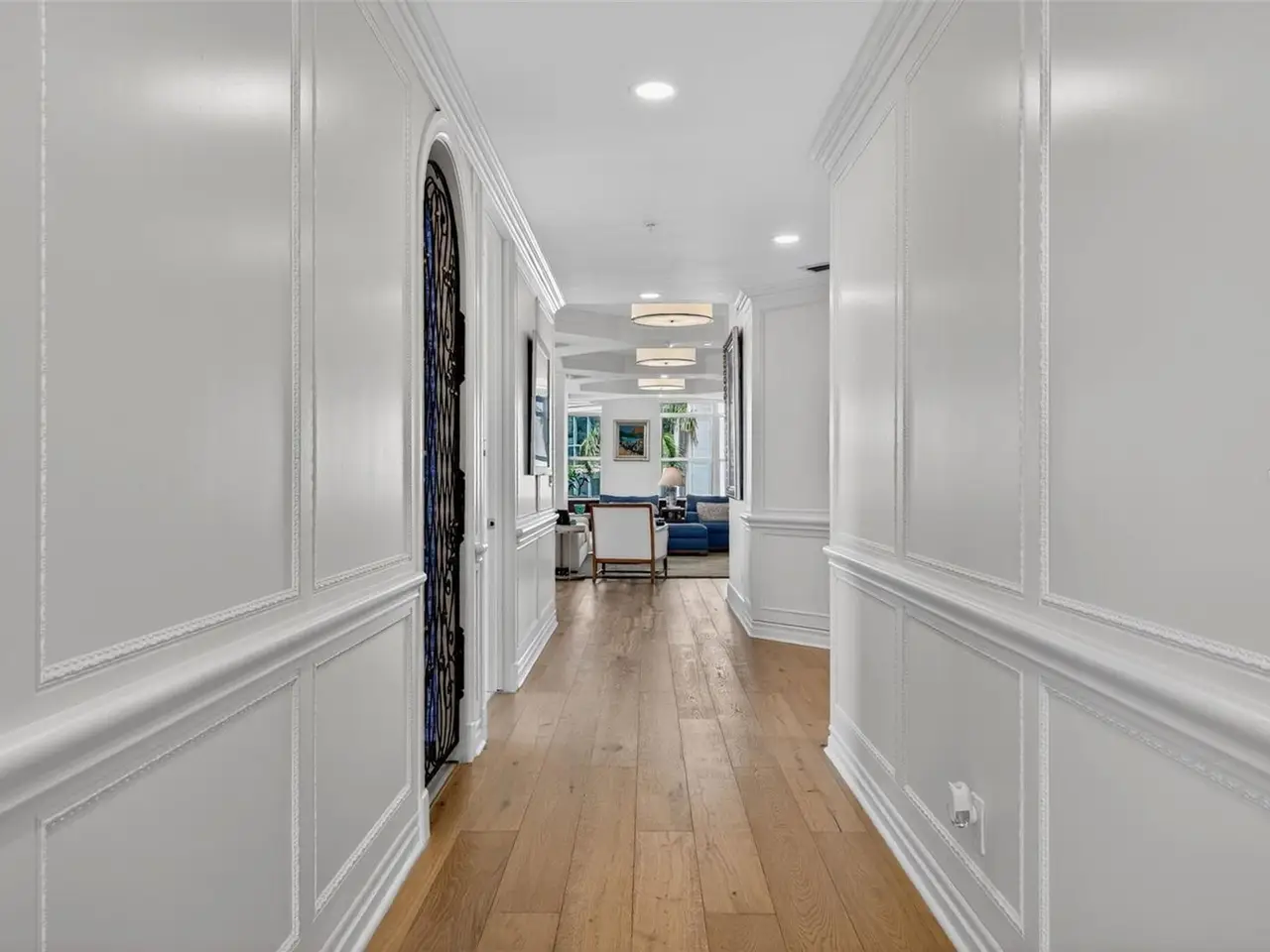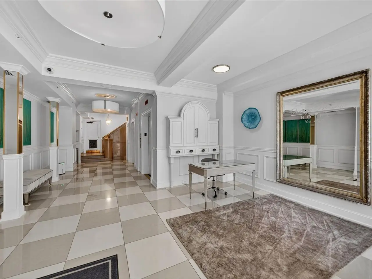 A luxurious piece of Sarasota’s history, combining timeless architecture, generous space, and modern upgrades in the heart of downtown. This rarely available full-floor residence at the iconic Orange Blossom Tower, built in 1926, one of downtown Sarasota’s most prestigious addresses at Main Street and Palm Avenue. Occupying the entire third floor, this 3-bedroom, 3-bath, 3,974-square-foot home offers a vibrant urban lifestyle just steps from fine dining, art galleries, boutiques, Bayfront Park, the marina, and Sarasota’s renowned theater district. From your private elevator, a grand foyer opens to a gallery hallway showcasing an antique brick wine cellar with a custom iron door, leading into expansive living and dining spaces adorned with bespoke millwork, a fireplace, octagonal ceiling detail, and oversized 7’ windows that flood the interiors with natural light. Two private terraces, including an oversized 13’ x 46’ retreat, to extend your living space outdoors for al fresco dining, and relaxation. The professionally enhanced kitchen is a chef’s dream, featuring quartz countertops, a Wolf 6-burner gas range, two Signature dishwashers, built-in refrigerator, beverage refrigerator, and a crystal chandelier over the center island. Condo features a water treatment system with reverse osmosis. Other recent updates include new AC units with infrared (2022 and 2023), new hot water heater (2024), new engineered wood flooring and carpet, a remodeled bath, new electrical outlets, electronic shades throughout, quartz window sills, and LED surface-mount fixtures and dimmers, The spacious owner’s suite offers large windows, 17’7” x 18’ antique-brick terrace overlooking tree-lined Palm Avenue, and an elegantly updated bath with dual vanities, walk-in shower, soaking tub, and custom closet system. Two guest suites are tucked into a private wing, each with a full bath and new custom closets—one opens directly to the expansive terrace—while a versatile large den makes an ideal office, reading room, or potential fourth bedroom with views of Sarasota Bay and stunning sunsets. Residents of Orange Blossom Tower enjoy concierge service, secure lobby entry, two deeded garage spaces, and use of the pool, spa, and fitness center at neighboring 1350 Main, along with additional storage room on the terrace and second floor. Importantly, the building’s Structural Integrity Reserve Study (SIRS) and Financial Reserve Study (FRS) were both completed in 2024, ensuring full compliance with current Florida regulations and giving buyers added peace of mind.