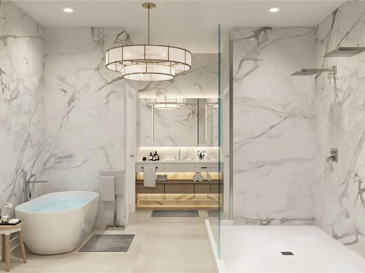 Under Construction. The Edge Sarasota embodies refined urban luxury in the heart of downtown’s vibrant Arts District. Residence B is an impeccably designed 3-bedroom, 3-bathroom corner residence offering over 3,500 square feet of living space, framed by floor-to-ceiling windows and sweeping city views from the 8th floor. The open-concept design features soaring ceilings, walls of glass and a chef’s kitchen with Italian cabinetry, Wolf and Sub-Zero appliances including a gas cooktop, an expansive island with waterfall edge and a butler’s pantry—all curated for elevated living. From the great room, dining or separate living room step out onto your private terrace and feel the energy of Sarasota below while enjoying the tranquility of your own modern sanctuary. The owners’ suite provides a true retreat with a gracious foyer, midnight bar, dual walk-in closets and en suite bathroom featuring dual vanities, private water closets, glass enclosed shower, soaking tub and convenient linen closet. A full laundry room with front-load washer and dryer and utility sink includes additional storage for ease of living. Beyond your residence, enjoy a curated collection of luxury amenities including a resort-style pool deck with hot and cold plunge pools, cabanas and two outdoor kitchens. The owners’ club focuses on wellness and entertainment with a fully equipped fitness center complete with a yoga room and infrared sauna. Two treatments rooms afford plenty of space for your personal massage therapist or a physical therapy session. The social room includes a lounge, bar, game room and catering kitchen. For more intimate gatherings, reserve the private dining room featuring resident wine lockers and a separate bar area. The building’s boutique size—only 27 residences—creates a community feel in the heart of Sarasota’s vibrant Arts District. Walk to acclaimed restaurants, galleries, boutiques, and the Bayfront, embracing a lifestyle that combines culture, convenience, and sophistication. Construction is progressing with limited opportunities to customize your finishes—secure your place at The Edge today and invest in a rare downtown Sarasota address with lasting appeal. Images shown are artist renderings intended to illustrate the interior finishes and design concepts for this community.