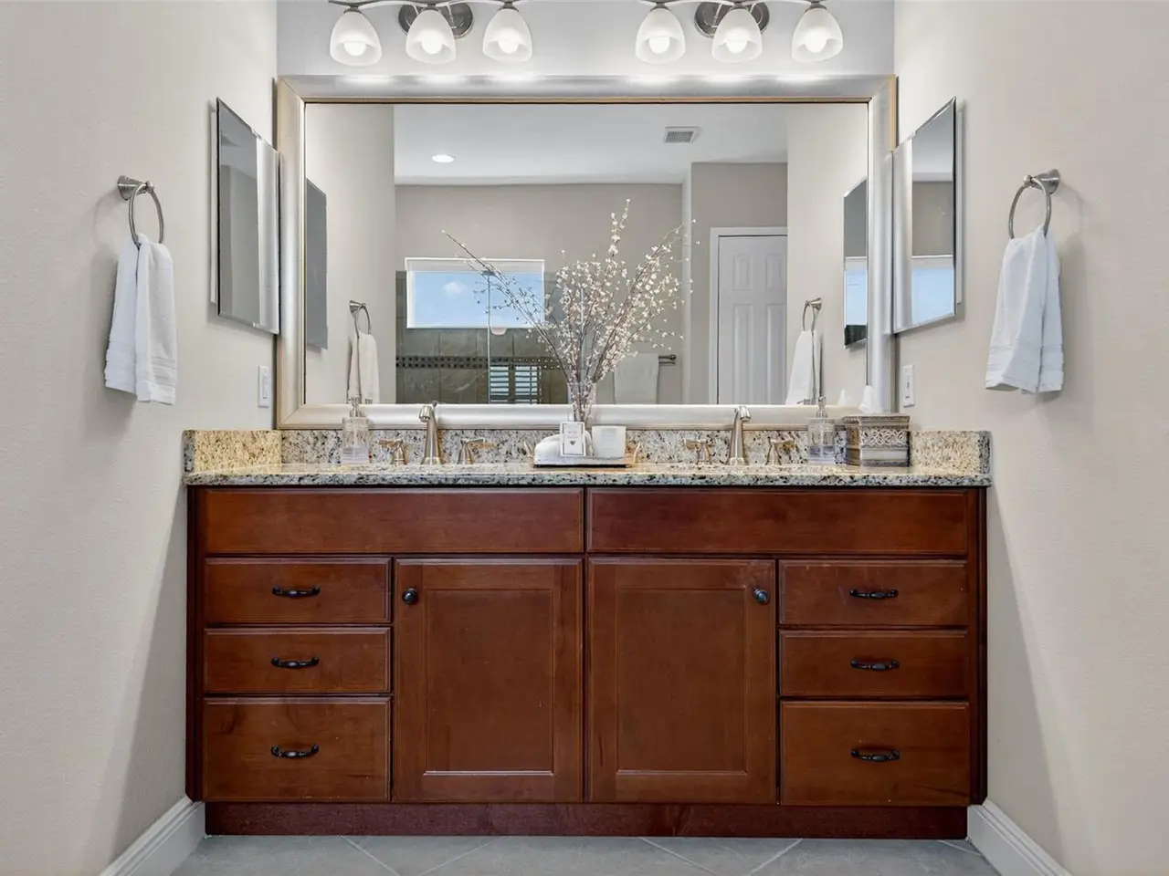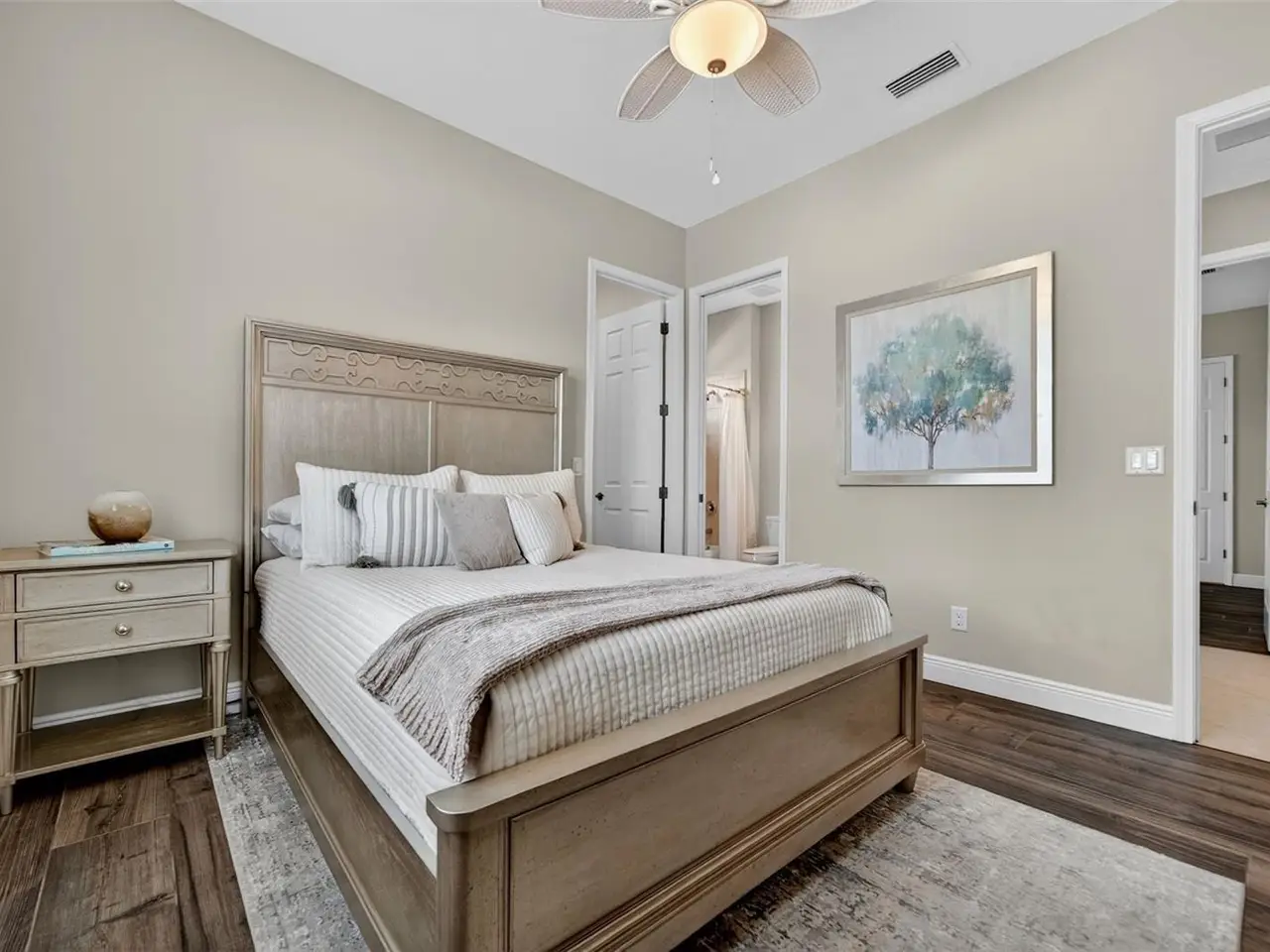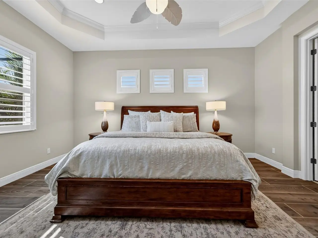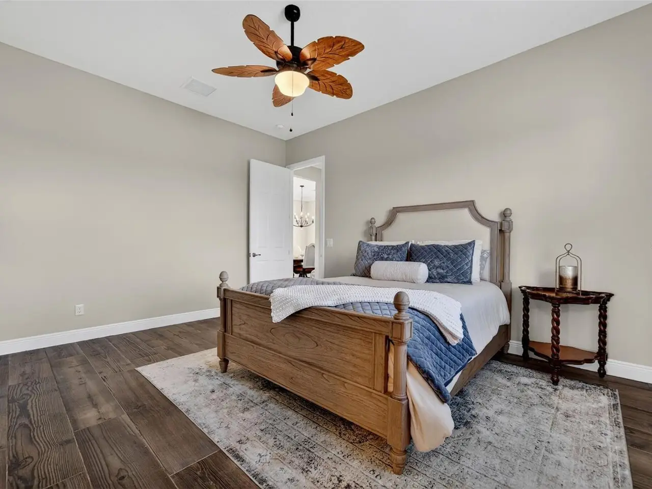 Experience the best of both worlds with this farm-to-table lifestyle — where two gardens, an abundance of fruit trees, and the beauty of rural living meet the convenience of Sarasota’s vibrant urban core just miles away. Set on a sprawling 3.5 acres in the picturesque community of Hampton Lakes, this custom Caicos model home combines refined elegance with everyday comfort. Step through the double glass doors into a spacious open floor plan featuring a formal dining area and a versatile den with double doors, a built-in Murphy bed, and sleek tile flooring. At the heart of the home, the gourmet chef’s kitchen is a showstopper — complete with wood cabinetry, quartz countertops, an induction cooktop, built-in wall oven, stainless steel range hood, corner walk-in pantry, and a central island with bar seating. A charming breakfast nook makes the perfect spot to enjoy the nearby nature. The great room is ideal for entertaining, with soaring tray ceilings, plantation shutters, and crown molding adding to the home’s timeless appeal. Two private bedroom suites provide comfort for family or guests, while the oversized primary suite offers a spa-inspired retreat with walk-in closets, double vanities, and a luxurious walk-in shower. Resort-style living continues outdoors on the expansive lanai, where a heated saltwater pool, fire pit, and state-of-the-art summer kitchen create the ultimate entertaining space. Panoramic screens showcase sweeping views, delivering a serene backdrop of peace and privacy. Additional features include an extended laundry room, oversized four-car air-conditioned garage, whole-house portable generator, outdoor lighting, and a buried 1,000-gallon propane tank. All this, just 10 minutes from I-75, offering unmatched access to Sarasota’s shopping, dining, and cultural lifestyle. This is where farm-to-table living meets refined luxury — a rare opportunity not to be missed.