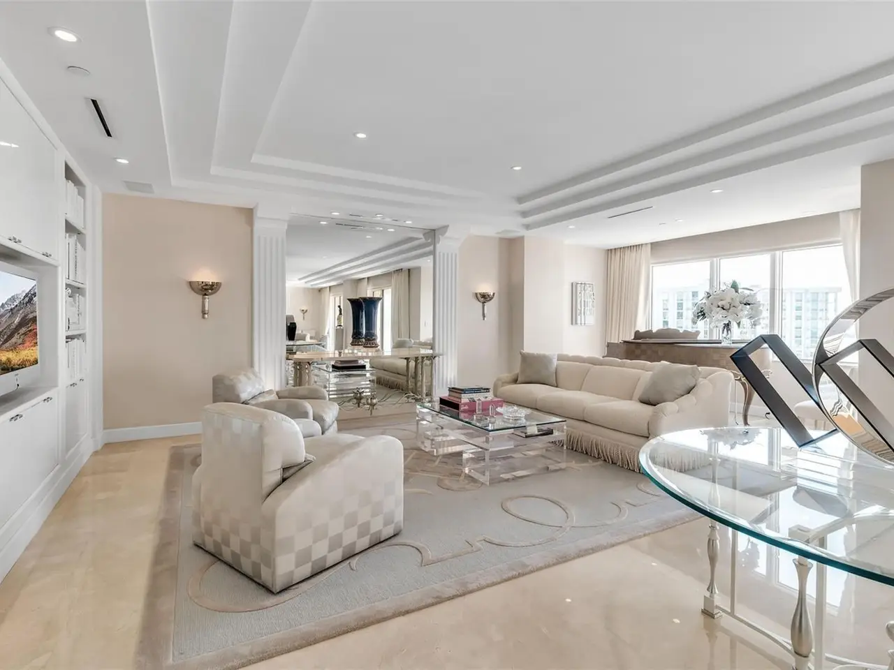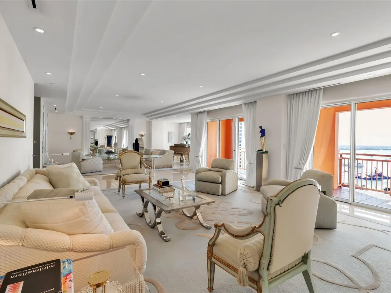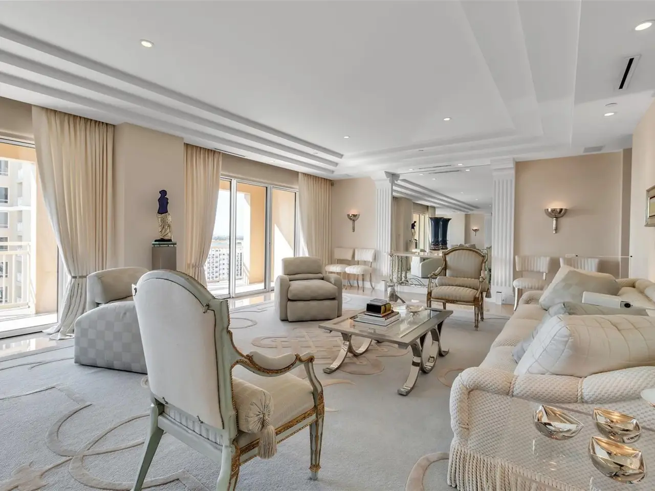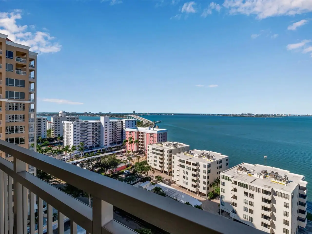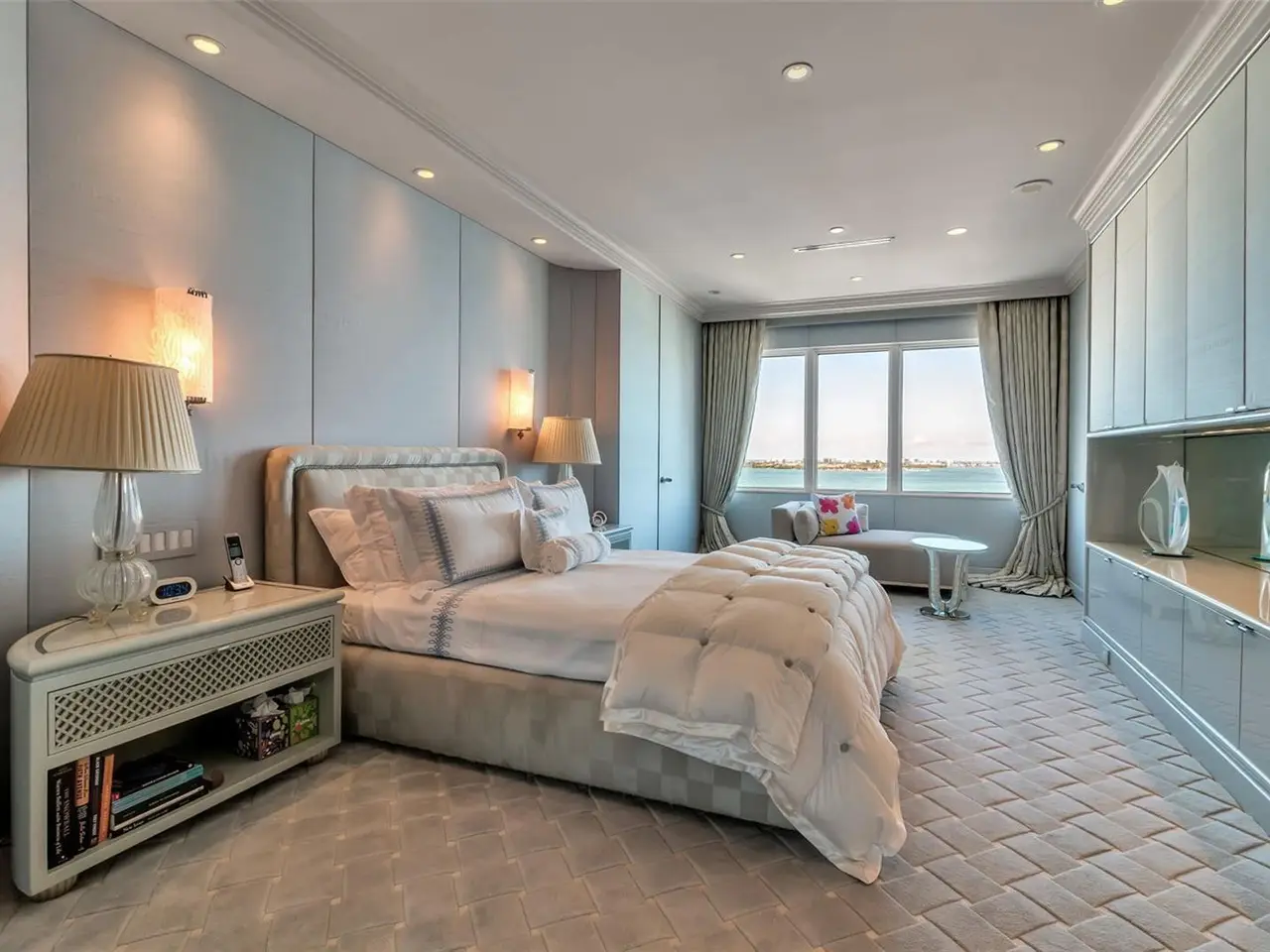 Perched high above exquisite Sarasota Bay, Ritz-Carlton Residences #1202 harmonizes a breathtaking display of scale, privacy, dramatic views, and exceptional design. Internationally renowned interior designer Geoffrey Bradfield paid the utmost attention to every detail as he masterfully crafted this sanctuary. The glamor unfolds gracefully as you enter the condo’s serene foyer featuring a beautifully architected gold-leafed ceiling, upholstered silk walls, and a custom lighting plan. Situated just off the foyer is a custom walk-in closet and a powder room finished with ultra-suede walls and modern stainless steel and glass pedestal sink. Crema Marfil marble flooring which runs throughout the condo’s public spaces leads you into a Grand Salon with a stunning tiered ceiling, gracious windows overlooking Marina Jack and the Ringling Causeway, fabulous lacquered cabinetry, and architectural moldings and accent columns. The large eat-in kitchen features sleek Poggenpohl cabinetry providing more than ample storage for any host or chef as well as a built-in desk area. The appliance package is top notch: Sub-Zero refrigerator/freezer, Gaggenau cooktop with a stainless steel and glass hood, Bosch double wall ovens, and a Miele dishwasher. The kitchen's custom lighting plan accents the textured walls and marble flooring. Both bedrooms offer marvelous custom appointments. The master suite features elegant lacquered custom cabinetry, silk upholstered walls, and lacquered moldings. The master bath’s ceiling is gold-leafed, the walls are marbled, and it is fitted with an oversized Kohler Jacuzzi tub, a glass-surround shower, and Venetian glass mirrors and vanities. The spacious walk-in closet also features custom millwork with lacquered columns and a Crema Marfil marble floor. The guest suite is similarly appointed with custom lacquered cabinetry, a large walk-in closet and a full bath with a large vanity. Throughout the condo, you will find opulent hardware and doors fitted with invisible sash hinges, linear air conditioning diffusers, and motorized window shades, as well as a spacious laundry room. The residence offers two large balconies perfect for viewing Sarasota’s radiant sunsets. While living at the Ritz Carlton Residences you will enjoy a resort-style pool with a panoramic sun deck and private dock for convenient drop-off and pick-up. Additional resident amenities include secured climate controlled storage, a private residential entry separate from the hotel, and an elegantly appointed private club room. Hotel living offers access to in-room dining, 24-hour concierge, car valet service, a newly completed spa (2024), and access to popular dining venues Jack Dusty and Rufa. Gracefully positioned along Sarasota’s scenic bayfront, ownership at 1111 Ritz-Carlton Drive #1202 presents an extraordinary opportunity for a life full of refinement and sophistication in a city featuring world-class beaches, stylish boutique shopping, acclaimed dining, and a vibrant cultural scene.