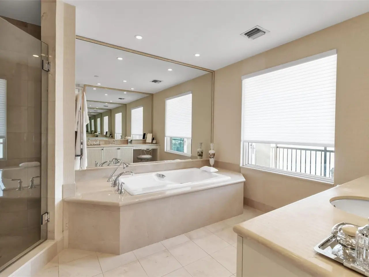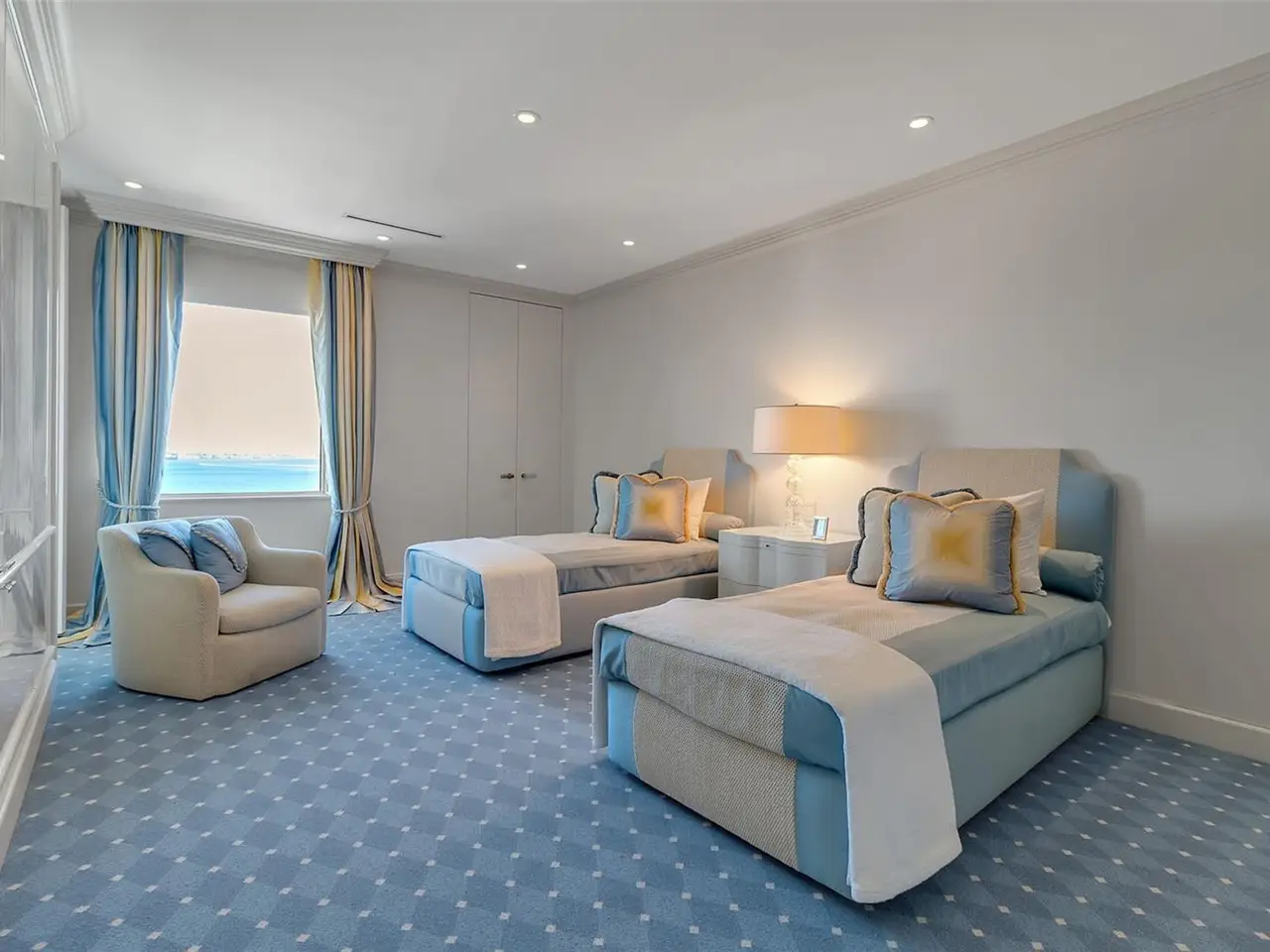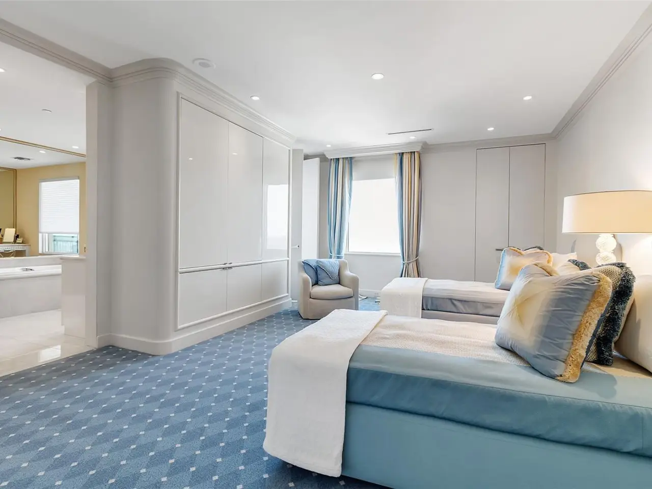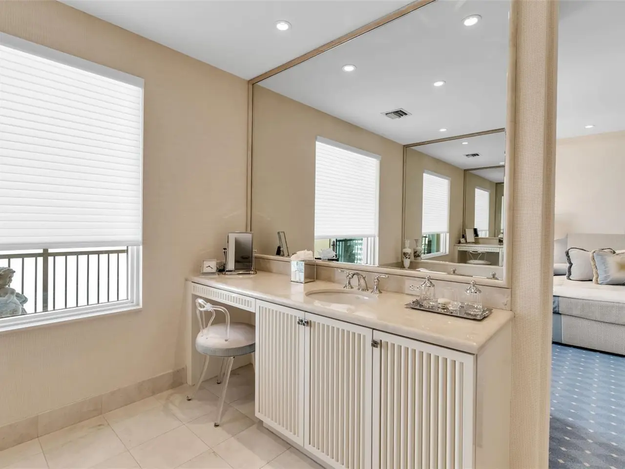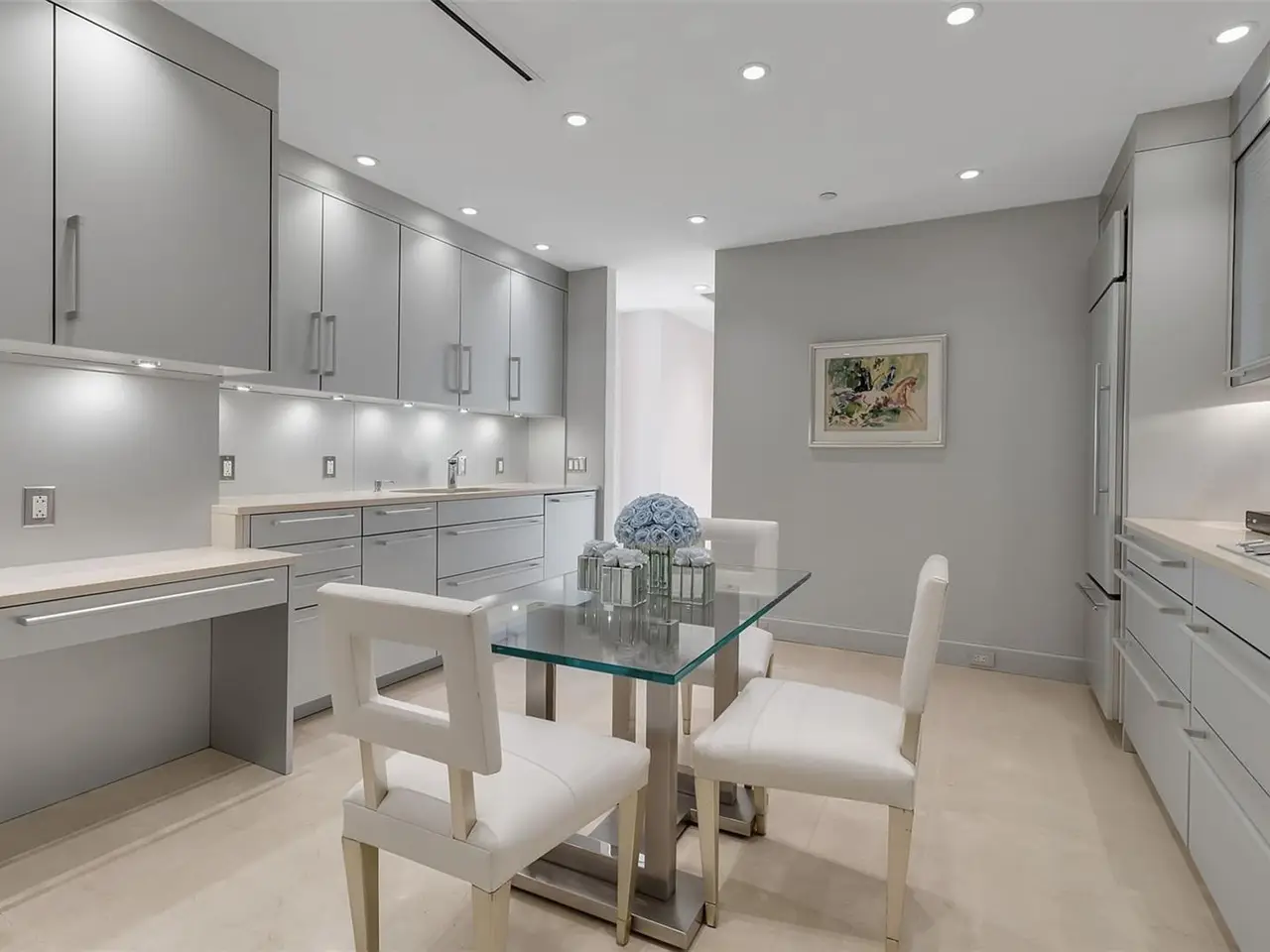 Perched high above exquisite Sarasota Bay, Ritz-Carlton Residences #1202 harmonizes a breathtaking display of scale, privacy, dramatic views, and exceptional design. Internationally renowned interior designer Geoffrey Bradfield paid the utmost attention to every detail as he masterfully crafted this sanctuary. The glamor unfolds gracefully as you enter the condo’s serene foyer featuring a beautifully architected gold-leafed ceiling, upholstered silk walls, and a custom lighting plan. Situated just off the foyer is a custom walk-in closet and a powder room finished with ultra-suede walls and modern stainless steel and glass pedestal sink. Crema Marfil marble flooring which runs throughout the condo’s public spaces leads you into a Grand Salon with a stunning tiered ceiling, gracious windows overlooking Marina Jack and the Ringling Causeway, fabulous lacquered cabinetry, and architectural moldings and accent columns. The large eat-in kitchen features sleek Poggenpohl cabinetry providing more than ample storage for any host or chef as well as a built-in desk area. The appliance package is top notch: Sub-Zero refrigerator/freezer, Gaggenau cooktop with a stainless steel and glass hood, Bosch double wall ovens, and a Miele dishwasher. The kitchen's custom lighting plan accents the textured walls and marble flooring. Both bedrooms offer marvelous custom appointments. The master suite features elegant lacquered custom cabinetry, silk upholstered walls, and lacquered moldings. The master bath’s ceiling is gold-leafed, the walls are marbled, and it is fitted with an oversized Kohler Jacuzzi tub, a glass-surround shower, and Venetian glass mirrors and vanities. The spacious walk-in closet also features custom millwork with lacquered columns and a Crema Marfil marble floor. The guest suite is similarly appointed with custom lacquered cabinetry, a large walk-in closet and a full bath with a large vanity. Throughout the condo, you will find opulent hardware and doors fitted with invisible sash hinges, linear air conditioning diffusers, and motorized window shades, as well as a spacious laundry room. The residence offers two large balconies perfect for viewing Sarasota’s radiant sunsets. While living at the Ritz Carlton Residences you will enjoy a resort-style pool with a panoramic sun deck and private dock for convenient drop-off and pick-up. Additional resident amenities include secured climate controlled storage, a private residential entry separate from the hotel, and an elegantly appointed private club room. Hotel living offers access to in-room dining, 24-hour concierge, car valet service, a newly completed spa (2024), and access to popular dining venues Jack Dusty and Rufa. Gracefully positioned along Sarasota’s scenic bayfront, ownership at 1111 Ritz-Carlton Drive #1202 presents an extraordinary opportunity for a life full of refinement and sophistication in a city featuring world-class beaches, stylish boutique shopping, acclaimed dining, and a vibrant cultural scene.