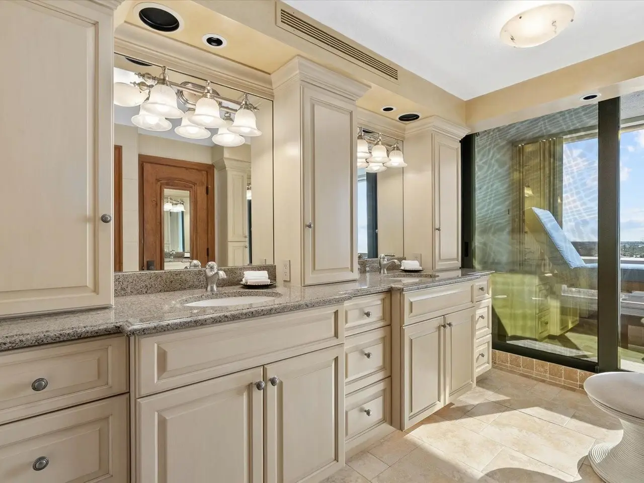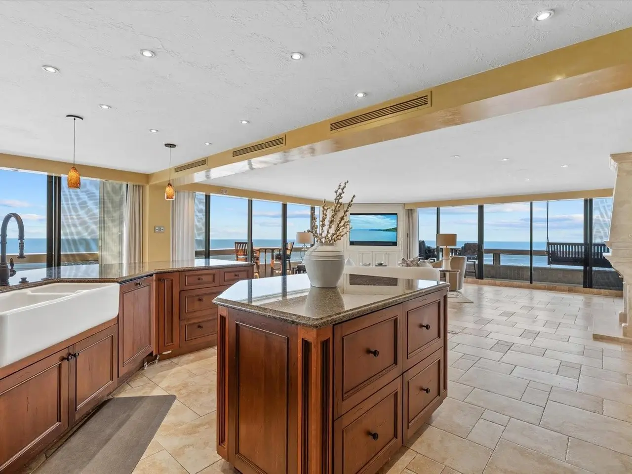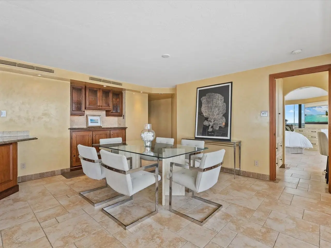 SUNRISE TO SUNSET GULF AND BEACH VIEWS extend from public beach, Siesta Village, the north toward Lido and Longboat Keys! Welcome to a combination of 2 gulf front units into a spacious, open, airy luxury beach residence. As you enter, you are immersed in the breathtaking waters of the Gulf of Mexico in all directions! Stunning interior with an Italian flair! Venetian plaster walls, and imported Italian travertine porcelain tile throughout, as well as custom wooden doors. Kitchen appliances are all high-end: Wolf, Viking, Subzero, Miele. Kitchen island has seating available for eight. The open great room is perfect for entertaining as well as the attached dining area with 100 bottle refrigerated built-in wine cooler. The Terrace is situated on the widest part of the beach, while being walkable to Siesta Village with its colorful boutiques and diverse eateries. All of this with 2 under-building assigned parking spaces and an interior storage unit. There is also a common bike storage room and a fantastic elevated salt water pool overlooking the beach. This is a rarely available offering on Siesta Key Beach with the piece of mind of a newer accordion hurricane shutters.