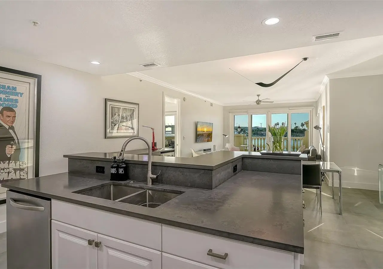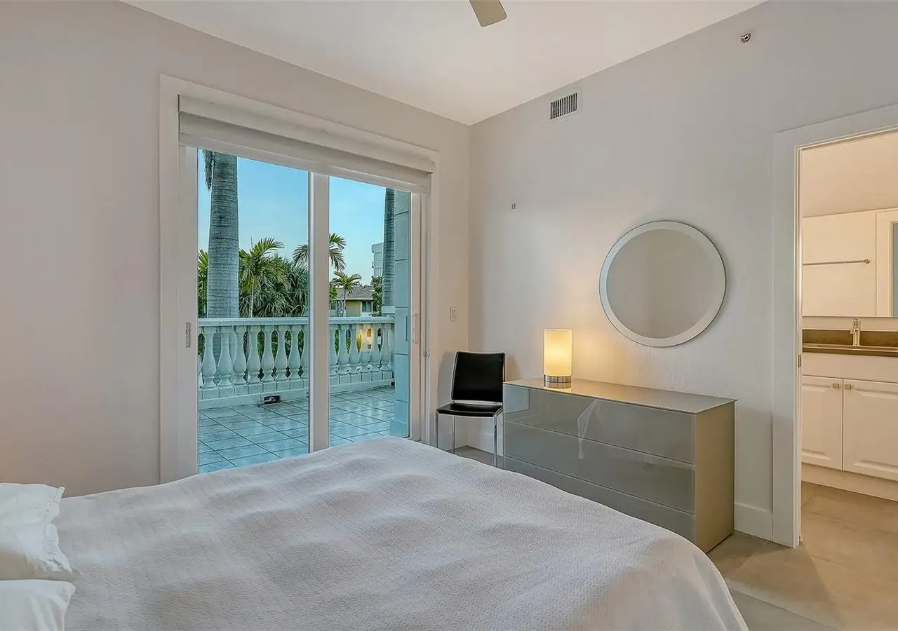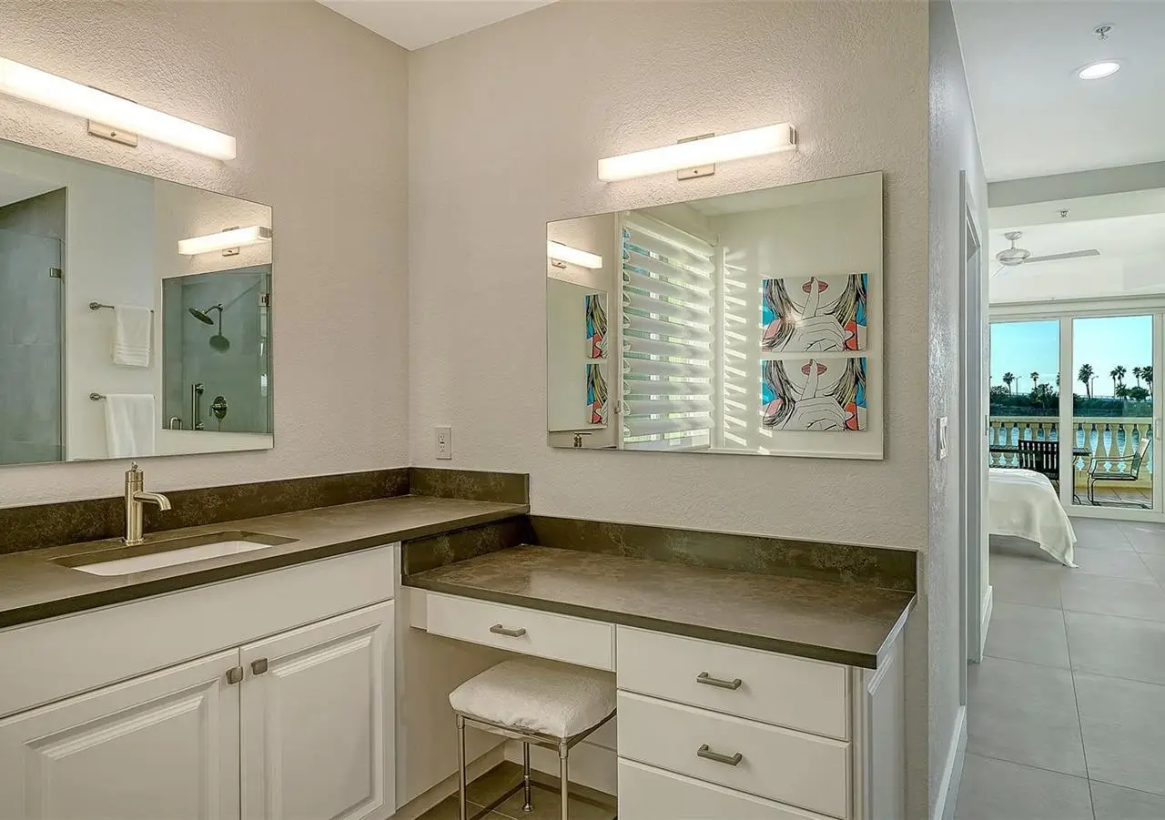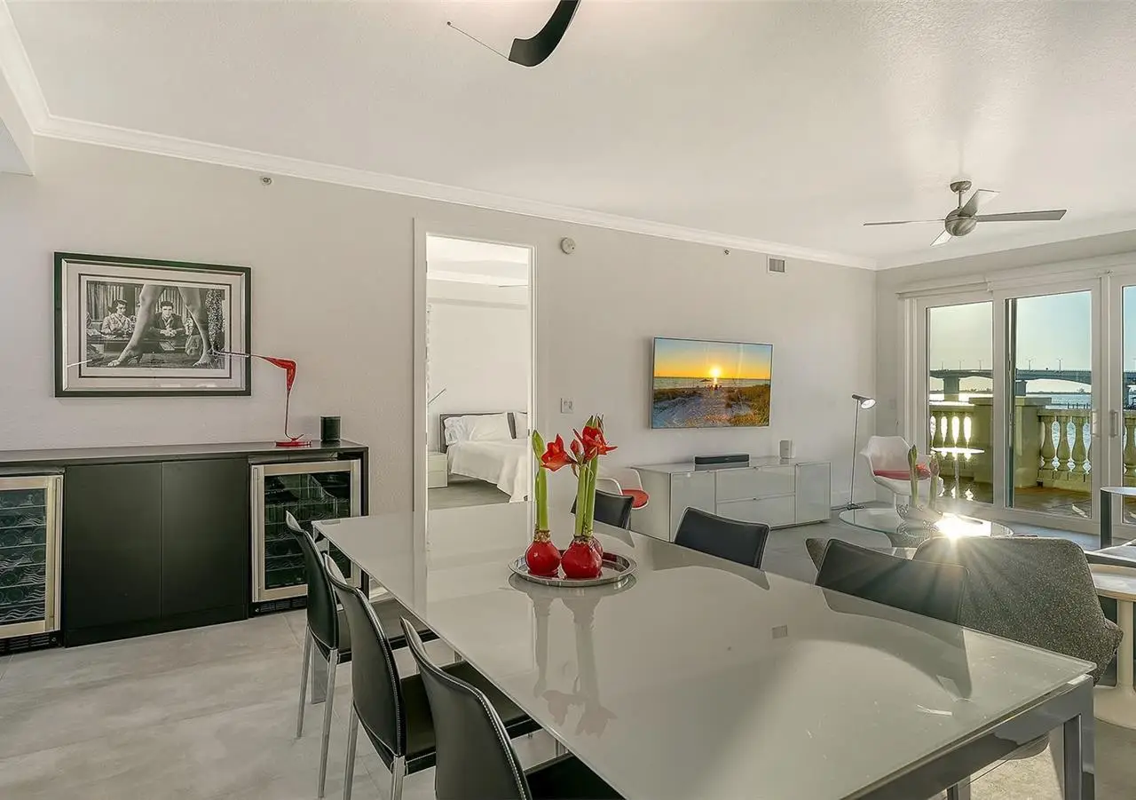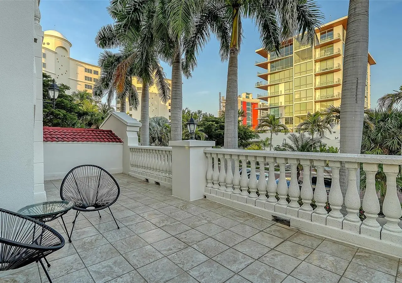 Direct waterfront on Golden Gate Point downtown Sarasota! Golden Bay is a boutique condominium building of only 10 units. You will enjoy the intimacy and peaceful setting of this remodeled residence overlooking Sarasota Bay and Ringling Bridge. An elevator will bring you directly to your private foyer. The sunsets are spectacular! This second-floor corner unit features high ceilings, 3 bedrooms, an office/4th brm, 3 full baths and benefits of two large terraces (27' x 9'). The West sunsets terrace is accessible from the living room and the primary bedroom, and the East sunrises terrace is accessible from the two guest bedrooms. The current owners replaced all the windows and patio doors, updated the entire unit with a 4x2 grey porcelain tiles, redid all 3 bathrooms, and installed custom blinds on all windows. The gourmet kitchen is equipped with stainless-steel appliances including a Sub Zero refrigerator, white cabinetry with lots of storage, beautiful new quartz countertops, and two wine refrigerators. The spacious primary suite, with access to the terrace that overlooks the bay, provides two walk-in closets, an elegant bathroom with two sinks, a walk-in shower, and a comfortable sitting area (plumbing in place for a tub if desired). Both guest bedrooms are en-suite.The large office has a slider door that opens to a Romeo & Juliette balcony, has a double closet and can be used as a 4th bedroom. Well thought laundry room with cabinetry, a sink, and stackable washer/dryer will facilitate your task. There is an additional stairway directly from your unit that goes to your private sizeable 2 car garage 19’ x 25’ and the pool deck where you can grill and enjoy the heated pool and day dock. On the desired Golden Gate Point, this location is a short walk to restaurants, theatres, shops, and minutes to famous St. Armands Circle and sandy Lido Beach.