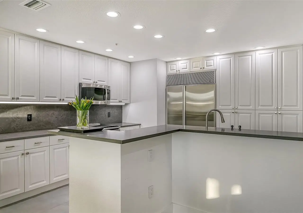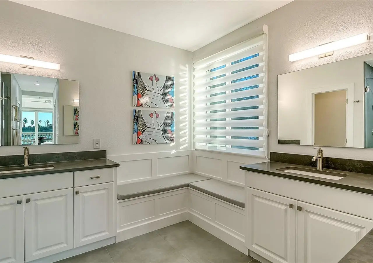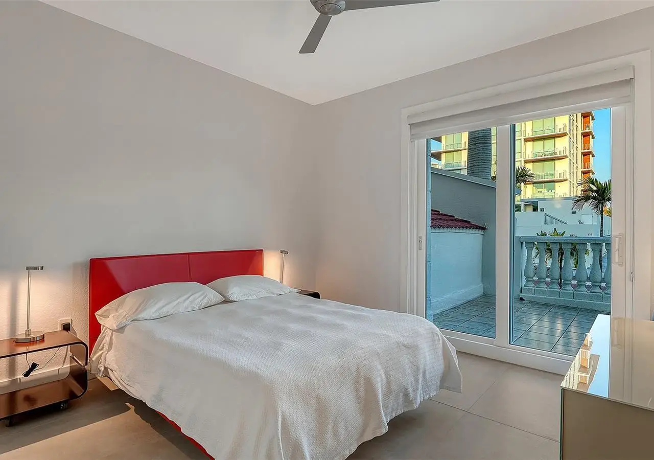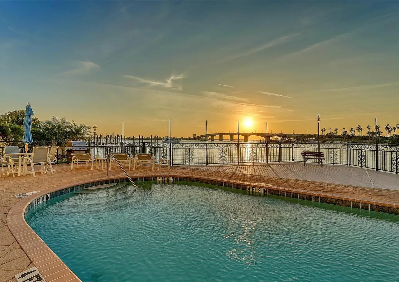 Direct waterfront on Golden Gate Point downtown Sarasota! Golden Bay is a boutique condominium building of only 10 units. You will enjoy the intimacy and peaceful setting of this remodeled residence overlooking Sarasota Bay and Ringling Bridge. An elevator will bring you directly to your private foyer. The sunsets are spectacular! This second-floor corner unit features high ceilings, 3 bedrooms, an office/4th brm, 3 full baths and benefits of two large terraces (27' x 9'). The West sunsets terrace is accessible from the living room and the primary bedroom, and the East sunrises terrace is accessible from the two guest bedrooms. The current owners replaced all the windows and patio doors, updated the entire unit with a 4x2 grey porcelain tiles, redid all 3 bathrooms, and installed custom blinds on all windows. The gourmet kitchen is equipped with stainless-steel appliances including a Sub Zero refrigerator, white cabinetry with lots of storage, beautiful new quartz countertops, and two wine refrigerators. The spacious primary suite, with access to the terrace that overlooks the bay, provides two walk-in closets, an elegant bathroom with two sinks, a walk-in shower, and a comfortable sitting area (plumbing in place for a tub if desired). Both guest bedrooms are en-suite.The large office has a slider door that opens to a Romeo & Juliette balcony, has a double closet and can be used as a 4th bedroom. Well thought laundry room with cabinetry, a sink, and stackable washer/dryer will facilitate your task. There is an additional stairway directly from your unit that goes to your private sizeable 2 car garage 19’ x 25’ and the pool deck where you can grill and enjoy the heated pool and day dock. On the desired Golden Gate Point, this location is a short walk to restaurants, theatres, shops, and minutes to famous St. Armands Circle and sandy Lido Beach.
