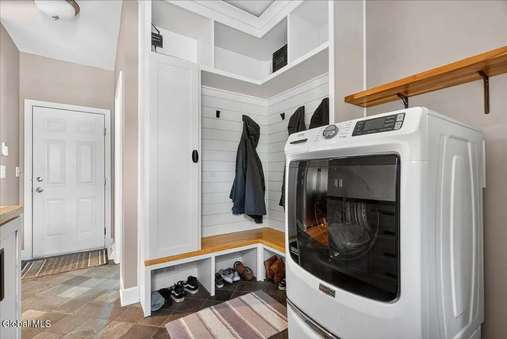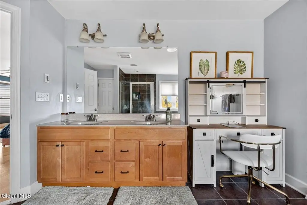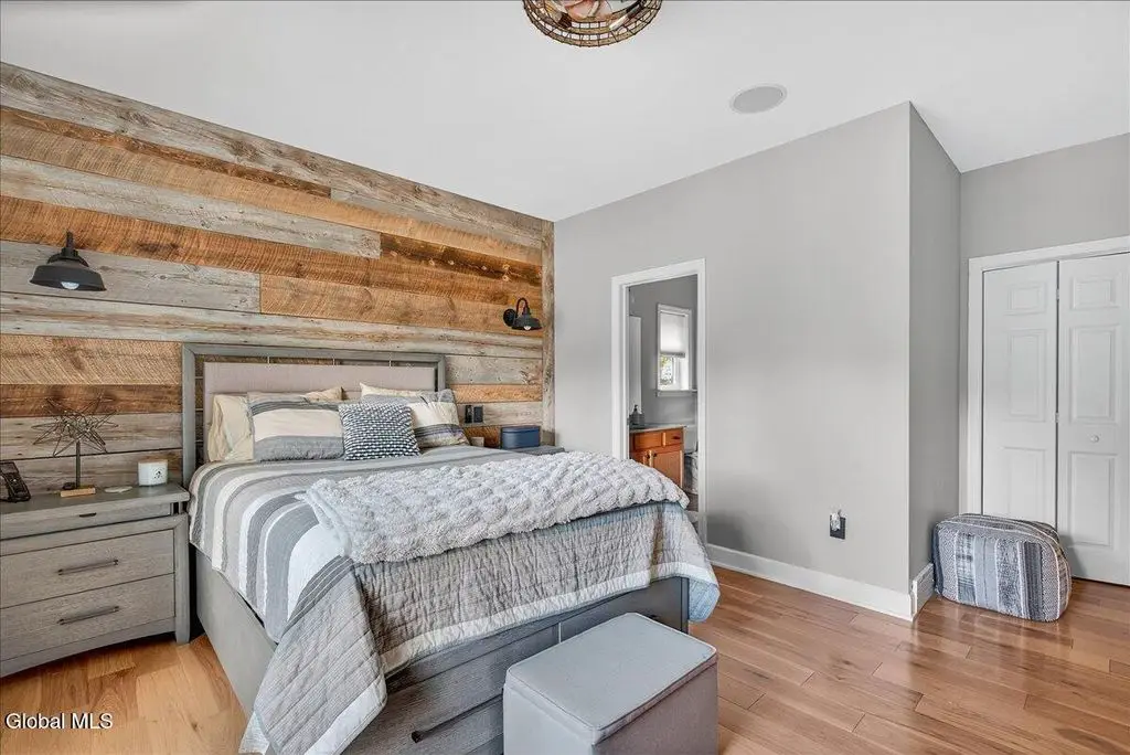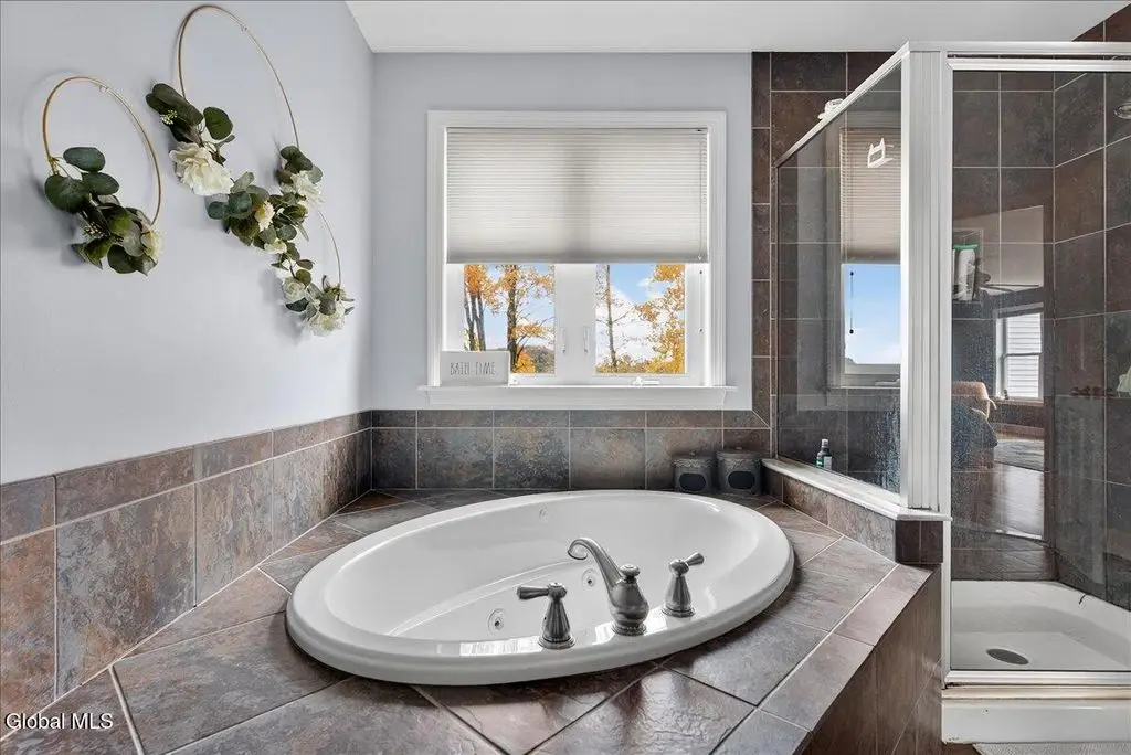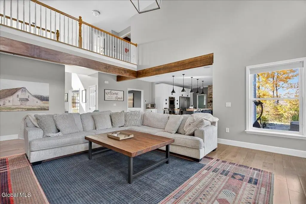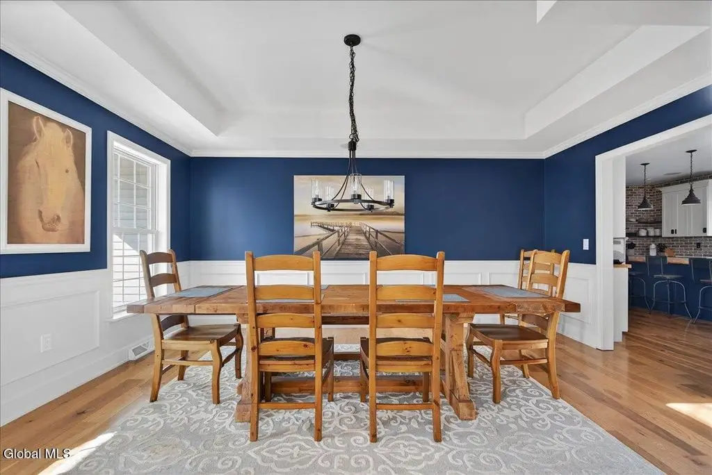 Welcome to this exceptional statement home in the prestigious Winding Brook Estates, where timeless elegance meets modern indulgence. Situated on a beautifully landscaped 1.98 acre lot, this custom-built residence offers unmatched privacy, superior craftsmanship, and resort-style amenities. Property highlights include over 4000 sf of luxury w/ 5 bedrooms, 4.5 baths, hardwood floors and surround sound throughout. Stroll by the beautifully landscaped entry path and serene water feature to the grand two-story entry and expansive open floor plan. You'll appreciate your own corner office, private and stylish. Be amazed by the massive two-story brick accent wall and gas fireplace in the great room. The gorgeous modern kitchen features an incredible butcher block center island w/seating for 8, granite countertops, farmhouse sink, double oven, wine fridge, brick accents and custom cabinetry. The elegant dining room boasts a tray ceiling, wainscoting, and chair rail detailing. First-floor guest suite with full bath. Plus convenient mud room, laundry and guest half bath. Upstairs the spacious primary retreat rewards you with luxury and style. Indulge in the his-and-her walk-in closet or take a spa day in the jetted soaking tub. In addition there's a dual sink vanity, walk-in shower, private throne room and abundant natural light. Three additional upstairs bedrooms; 2 with Jack & Jill bath and generous closet space, one with private bath. Fully finished lower level with granite entertainment bar, home theater, bonus office/den, and egress window. The outdoor oasis features a Saltwater inground pool and hot tub surrounded by lush landscaping. Custom paver patio with multiple seating areas and built-in covered kitchen w/BBQ and fridge. Gas firepit for year-round gatherings. Surround sound system extends seamlessly from inside to outdoors. Lawn sprinklers in front & back for easy maintenance. A short drive from downtown Saratoga Springs, minutes to Saratoga Lake