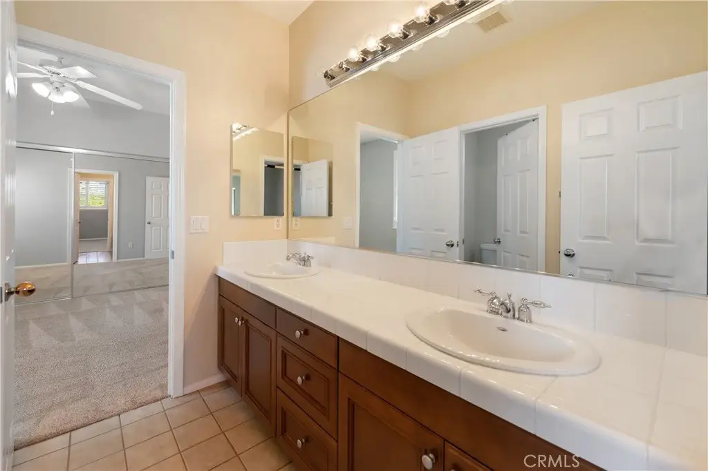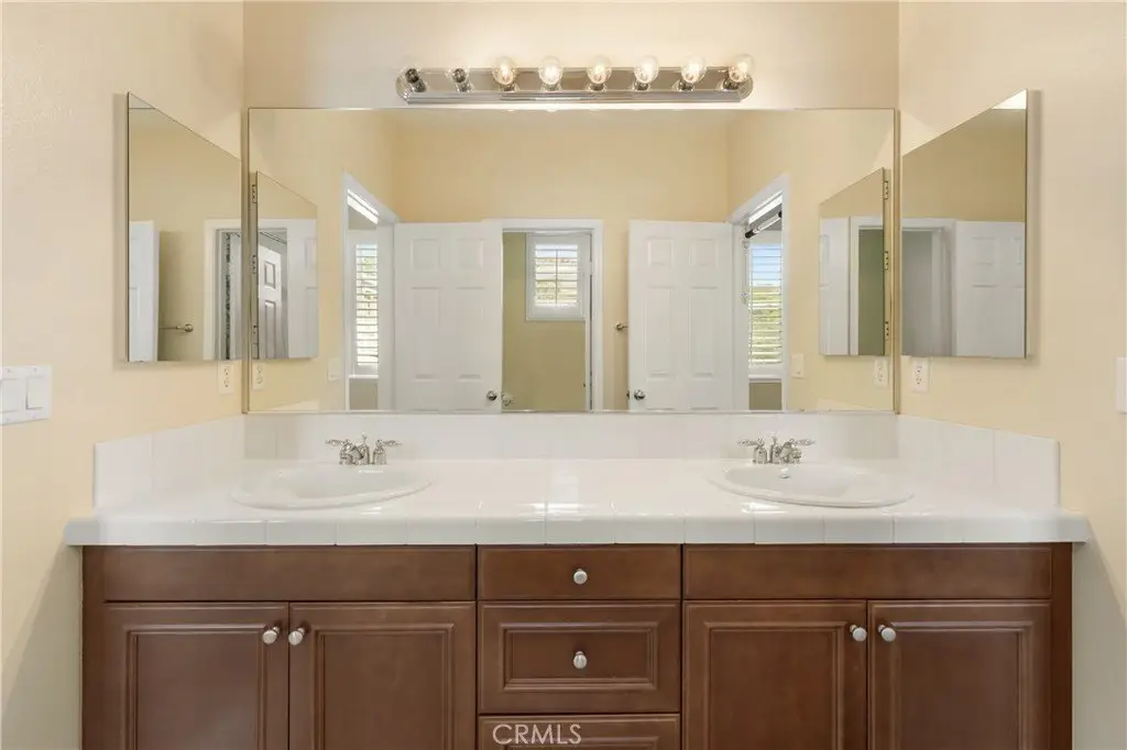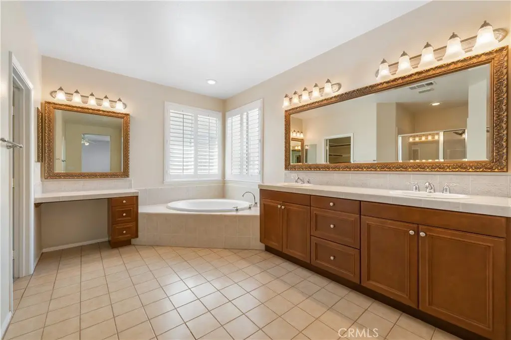 Welcome to this beautifully maintained 6-bedroom, 4.5-bathroom home tucked away in a quiet cul-de-sac in one of Santa Clarita’s most desirable neighborhoods. Designed with both comfort and functionality in mind, this spacious home features hardwood floors, tile, and elegant shutters throughout the first level. The main floor includes a full bedroom and bathroom — perfect for guests or a Mother in law suite! — plus a convenient half bath for visitors. Upstairs, you'll find four generously sized bedrooms connected by Jack and Jill bathrooms, a loft, and a dedicated laundry room. The luxurious primary suite offers a retreat-like experience with a massive en-suite bathroom and dual walk-in closets. Additional highlights include a 3-car garage, tankless water heater, and a whole house fan. The backyard is a true oasis, featuring a lush garden with an impressive variety of fruit trees and vines — including figs, apples, lemons, blackberries, strawberries, and grapes. Located within a top-rated school district, this home offers a perfect setting for family living in a safe, vibrant community. NO MELLO-ROOS! A rare gem — come see it for yourself!