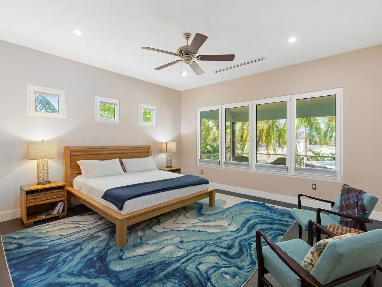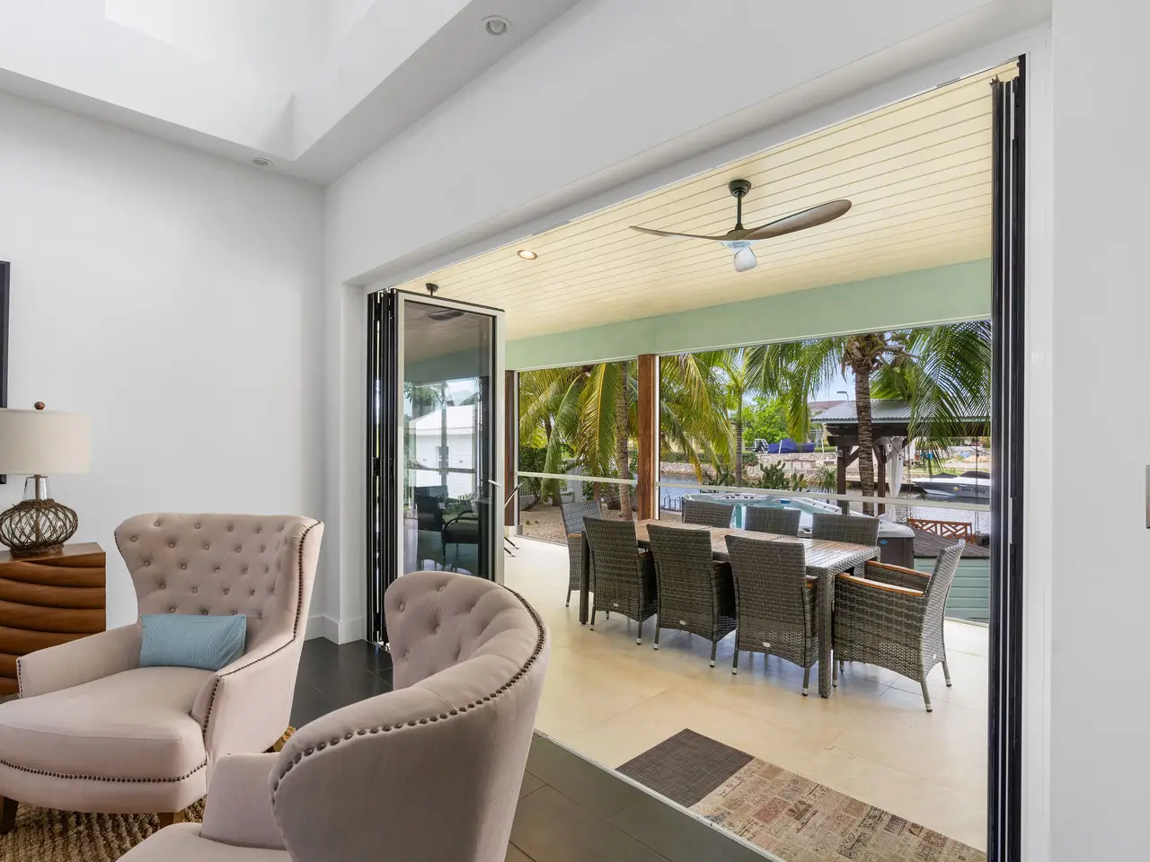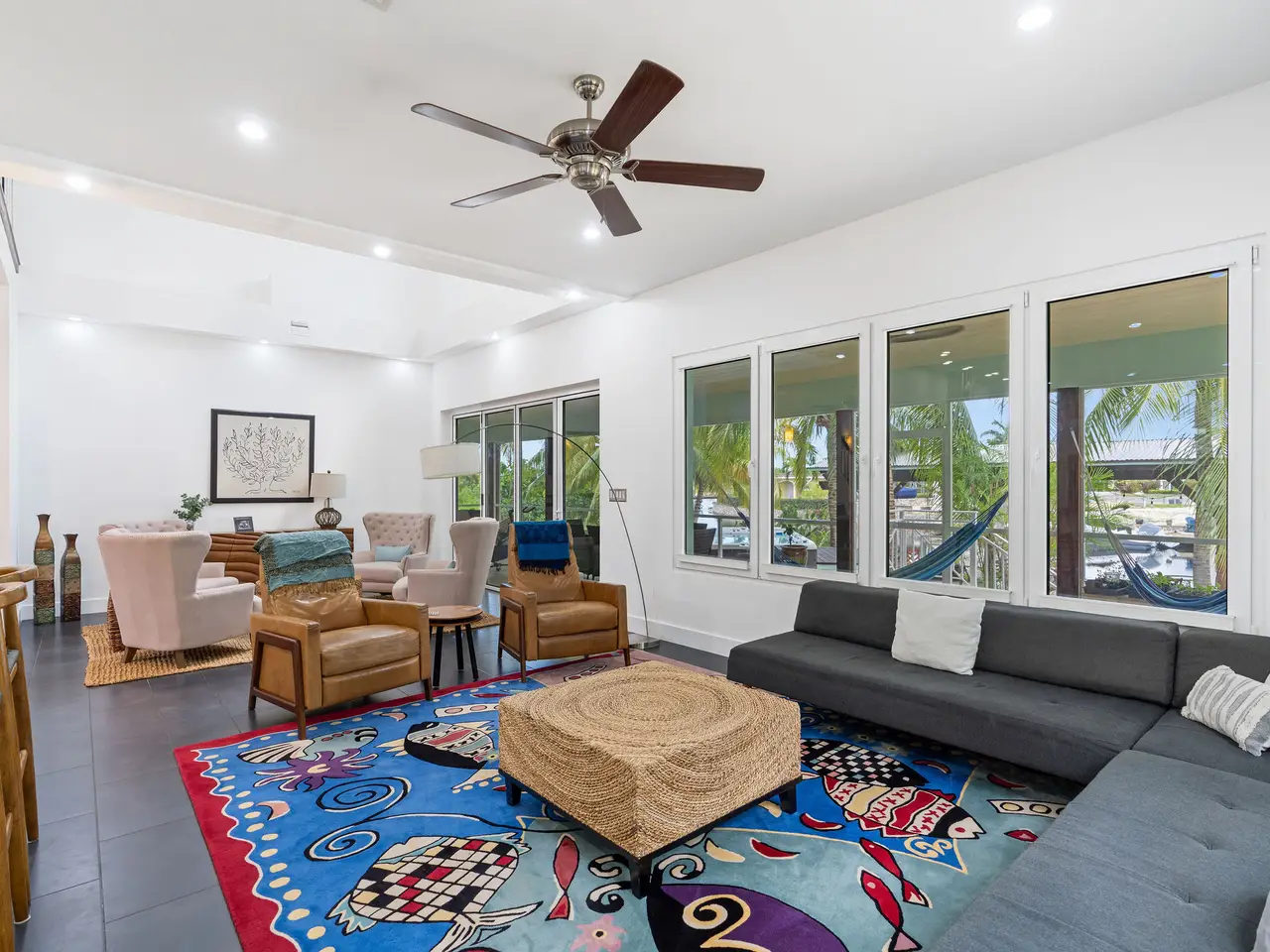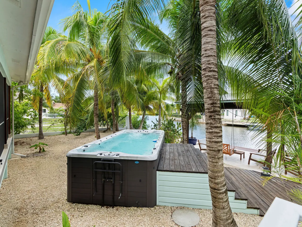 Executive Waterfront Home in Sunrise Landing Located in the highly sought-after community of Sunrise Landing, this stunning executive waterfront home is a must-see. Perched twelve feet above sea level and thoughtfully designed, it offers the perfect blend of safety, style, and comfort, a dream spot for waterfront living and family life Step inside to find soaring ceilings and light-filled rooms throughout. At the heart of the home, the chef's kitchen boasts a large granite island, abundant storage, a butler's pantry, and premium appliances, perfect for entertaining friends and family The primary suite, conveniently located on the main level, features a spa-inspired walk-in shower and a spacious walk-in closet. Upstairs, two additional ensuite bedrooms are separated by a versatile landing ideal as a children's playroom or study area. Outdoor living is equally impressive:•Expansive screened patio for year-round dining and entertaining•A resort-style swim spa framed by lush, low-maintenance gardens built for the climate•A variety of mature fruit trees•A custom 80-foot boat dock with swim ladder and floating jet ski dock Additional highlights include a guest suite with kitchen and bath above the two-car garage, custom-built storage, and exceptional efficiency features:•Custom tilt-and-turn, impact-rated tinted windows•Spray foam insulation in attic and exterior walls•Propane appliances and a 30KW propane generator Built in 2017, this home combines modern efficiency with classic style and the kind of waterfront living families love
