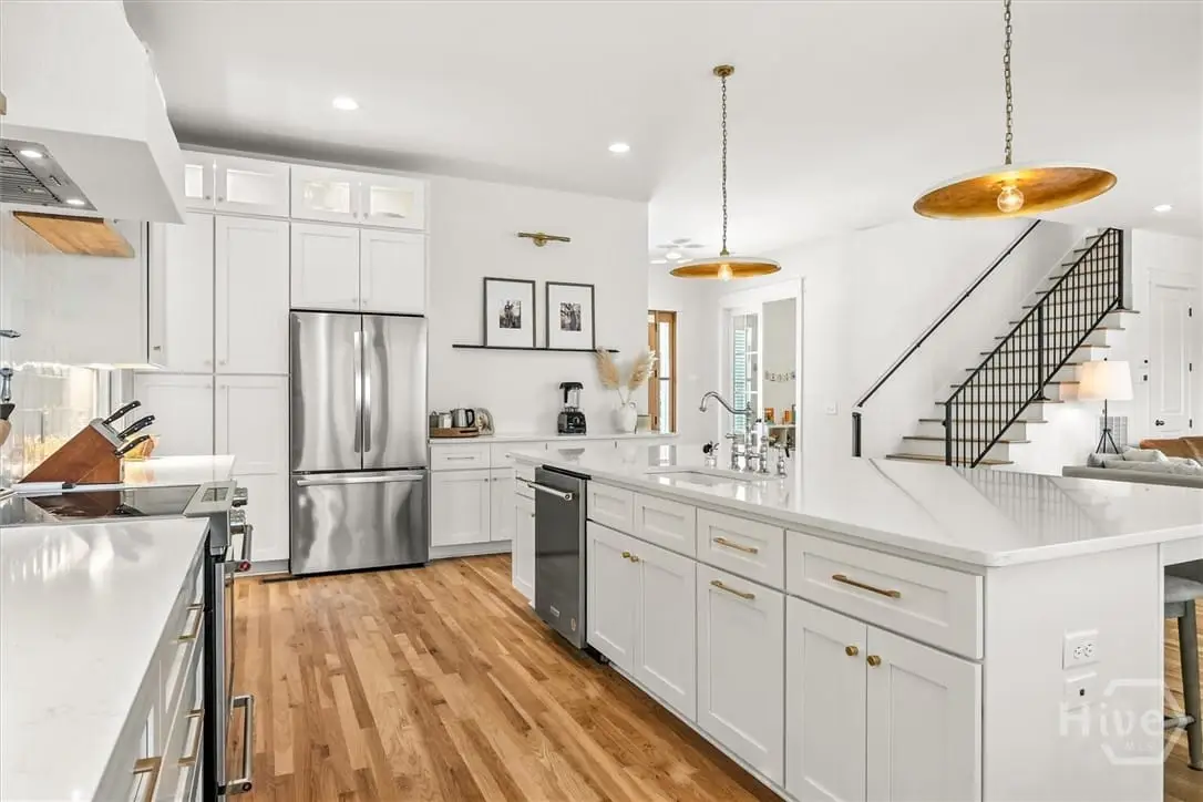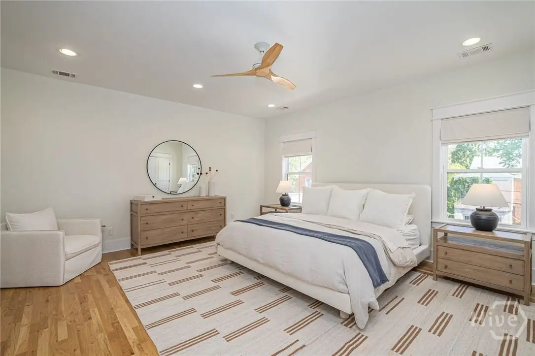 Conveniently located in coveted Ardsley Park, this 2023 build offers 5 bedrooms, 5.5 baths, and 3,509 sq ft of modern living. The inviting front porch with gas lantern opens to light-filled interiors with 10 ceilings, white oak hardwoods, and custom millwork. A chef's kitchen and prep kitchen with quartz counters, oversized island, and premium appliances connect to open living and dining areas. The main floor includes a private suite, bonus room, and half bath, while upstairs offers 4 spacious bedrooms with ensuite baths plus a serene primary retreat with his and hers closets. Outdoor living features a covered porch, built-in grill, fans, and fenced backyard with raised organic garden beds. Energy-efficient upgrades include Rockwool insulation, dehumidifiers, sealed crawlspace, tankless water heater, irrigation, and CAT 8 wiring. A one-car garage with alley access and walk-up attic storage complete this rare opportunity in one of Savannah's most desirable neighborhoods.