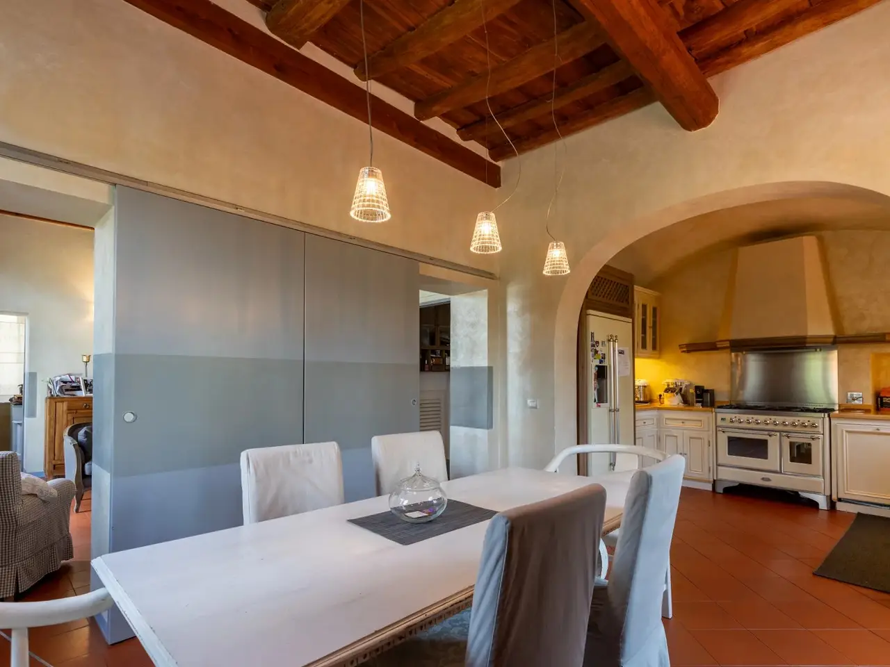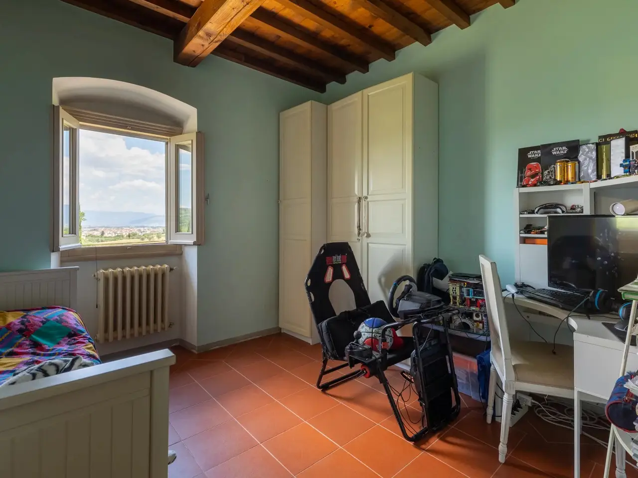 Portion of a villa on the hills of Scandicci, surrounded by lush countryside, with a panoramic view of the surrounding hills. The property combines classic elegance with a modern twist, offering a comfortable and refined place to live.The property is accessed through an exclusive gate that opens onto the well-kept garden with trees. The facade is embellished with windows and openings that offer a panoramic view of the surrounding picturesque countryside and allow you to experience the outdoor space as an extension of the interior spaces in the summer.The ground floor features an entrance hall with fireplace, a large living room, a dining room and a beautiful equipped and furnished kitchen designed by a prestigious Florentine interior designer. Service bathroom.The heart of this property is undoubtedly this welcoming living area with plenty of space for all the family's needs.Upstairs we find the master bedroom with bathroom and walk-in closet, two bedrooms and a second bathroom.On the second floor a large living room with exposed beams and four panoramic windows. This space can be used for various functions, lounge, study, gym or for a very large 4th bedroom.In the basement there is a large service area with storage room and laundry.The materials used for the renovation are of high quality and represent a synthesis between respect for the original materials used for this type of property and a contemporary touch.The resulting atmosphere is light, airy, very welcoming and comfortable. The colors used are neutral and blend perfectly with the modern and refined furnishings.The equipped garden is a great opportunity to experience the greenery and an opportunity to relax.The property includes a small outbuilding in the final part of the garden.Land with olive trees of about 2,500 square meters.For information 339 5356103