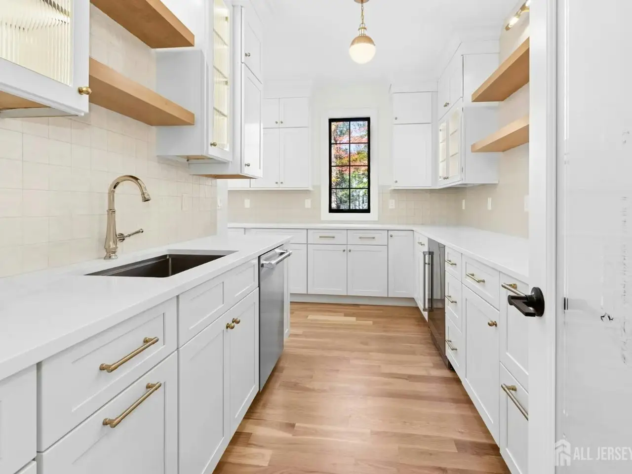 Welcome to a residence that redefines custom living. This brand-new 7,500+ square foot estate set on a level .95 acre lot is not just a house...it's a statement of vision, timeless design, and craftsmanship. Perfectly situated in one of Scotch Plains' most desirable neighborhoods, this home seamlessly blends modern sophistication with classic architectural elegance. Step inside through the grand double doors into a soaring two-story foyer filled with natural light and extraordinary attention to detail. The main level features an open-concept layout centered around a state-of-the-art chef's kitchen with Thermador appliances, quartz countertops and custom cabinetry. An adjoining prep kitchen is ideal for entertaining, storage, and simply keeping the main kitchen pristine. The en suite bedroom on this main level provides flexibility for guests, an au pair, or multigenerational living. Upstairs, the luxurious primary suite includes a spa-like bath with heated floors, and two individual walk-in showers...a rare indulgence. Two bedrooms are connected by a Jack and Jill bath while the remaining bedroom enjoys a private bath. The finished attic with full bath provides options for a second office, gym, quiet retreat. You will find a sprawling entertainment area in the basement anchored by a custom bar, a full bath, and a bedroom with an oversized egress window. Enjoy an ideal canvas for refined outdoor living and prepare to design the ultimate outdoor entertaining space. With the paver patio, full irrigation system, and fresh sod, the foundation for your dream outdoor oasis awaits. The interior details are both refined and enduring: 4 white oak flooring, white oak wood beam ceilings, extensive custom millwork, Andersen 400 Series black windows, hand-selected designer lighting, Sonos sound system, Nest thermostats, Kohler fixtures, and unique exquisite tile selections.This home provides for a wonderfully elevated lifestyle - a truly extraordinary opportunity in Scotch Plains.