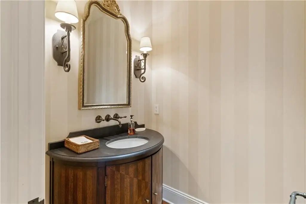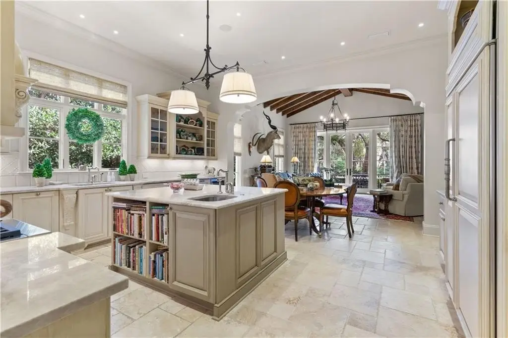 Luxurious Ocean Forest living awaits at 541 Forest Road. This stunning lakeside cottage, with Mizner influences throughout, is made for living and entertaining. The first level plan is highlighted by the two story foyer, which opens to the living room, family room and kitchen. All have lake views, and the kitchen features a center island with sink, Wolf and Sub Zero appliances and loads of custom cabinetry. Behind this space is an oversized laundry and party prep area, with a full size Viking fridge and Sub Zero wine fridge, plus an additional work sink and lots of extra storage. The family room has beamed ceilings and a cozy fireplace, one of three in the home, and has lake views. The dining room is formal and lined with built-ins. The primary bedroom, also with lake views, features a sitting area, an oversized bath with double sinks, shower and soaking tub and possibly the largest closet of any Sea Island cottage. Complete with packing table, built-ins and tall windows for light, this is more a repository than a closet. Upstairs via the beautiful wrought iron staircase, the second level offers another family room with views and four bedrooms – two that share a jack and jill bath and two with full en suite baths. Above the two car garage with storage is an additional suite. Currently serving as an office, this room features pecky cypress accents, the third fireplace and another full bath. Other notable features of the cottage include concrete block construction with stucco coating, clay barrel tile roofing, lakeside patios on both levels, outdoor cooking area and a whole house generator. This is the best of Ocean Forest living in a home that was made for living – come see for yourself at 541 Forest Road.