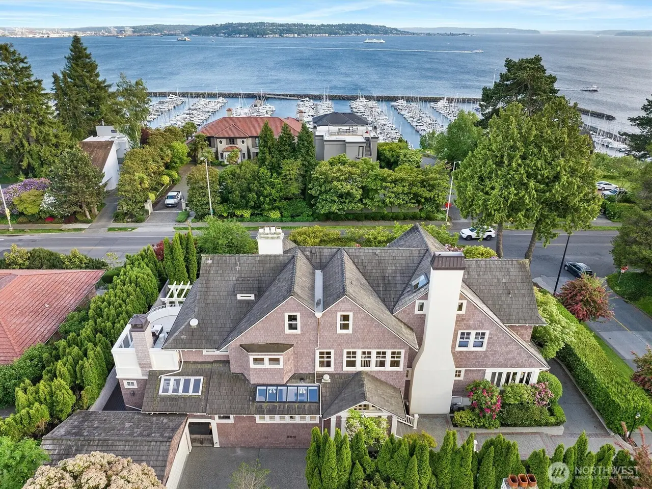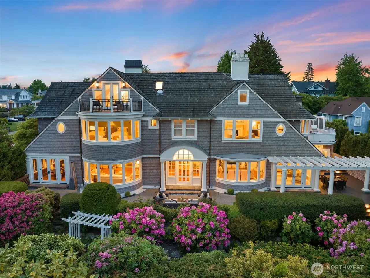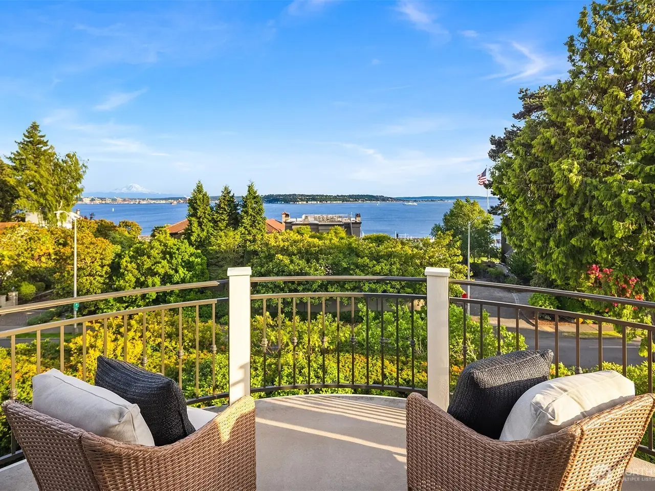 A true legacy home. This estate has been beautifully restored and updated with modern amenities. Surrounded by curved windows and ever-changing vistas, the light-filled rooms flow seamlessly for entertaining and intimate gatherings. Spacious, double-ensuite primary bedroom and generously sized additional bedrooms upstairs. 180-degree views of Seattle skyline, Elliot Bay, and majestic Mount Rainier on the horizon. Fully renovated lower level includes all new mechanicals, spa room, designer kitchenette with Sub-Zero appliances and a top-of-the-line theater and game room. A rare blend of heritage and coveted location, this remarkable home is not only a piece of Seattle's history, but also a front-row seat to its most iconic scenery.