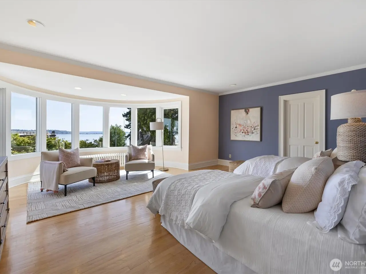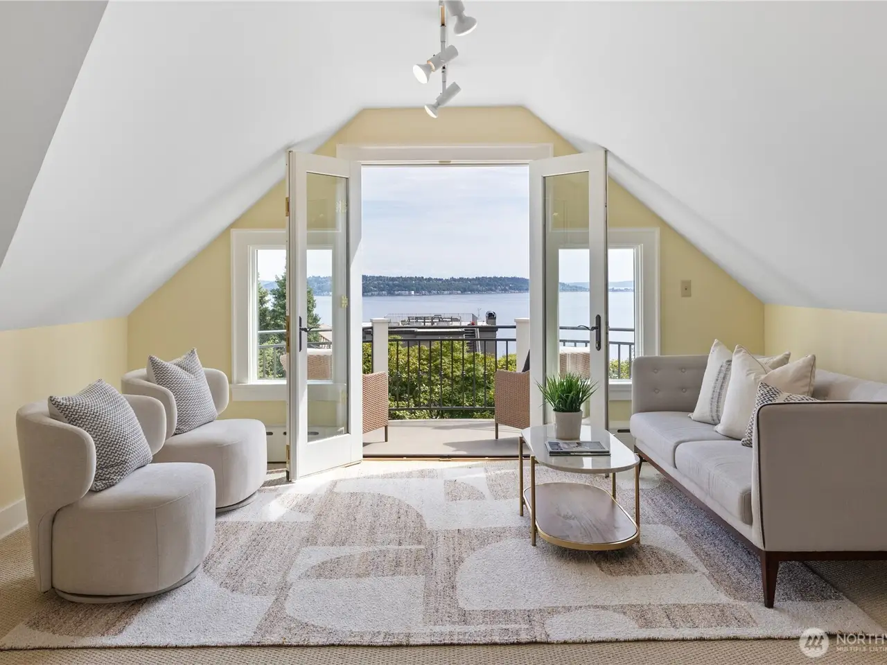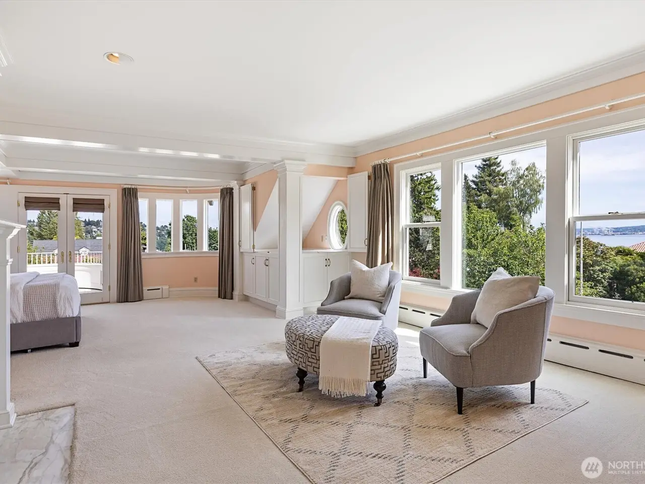 A true legacy home. This estate has been beautifully restored and updated with modern amenities. Surrounded by curved windows and ever-changing vistas, the light-filled rooms flow seamlessly for entertaining and intimate gatherings. Spacious, double-ensuite primary bedroom and generously sized additional bedrooms upstairs. 180-degree views of Seattle skyline, Elliot Bay, and majestic Mount Rainier on the horizon. Fully renovated lower level includes all new mechanicals, spa room, designer kitchenette with Sub-Zero appliances and a top-of-the-line theater and game room. A rare blend of heritage and coveted location, this remarkable home is not only a piece of Seattle's history, but also a front-row seat to its most iconic scenery.