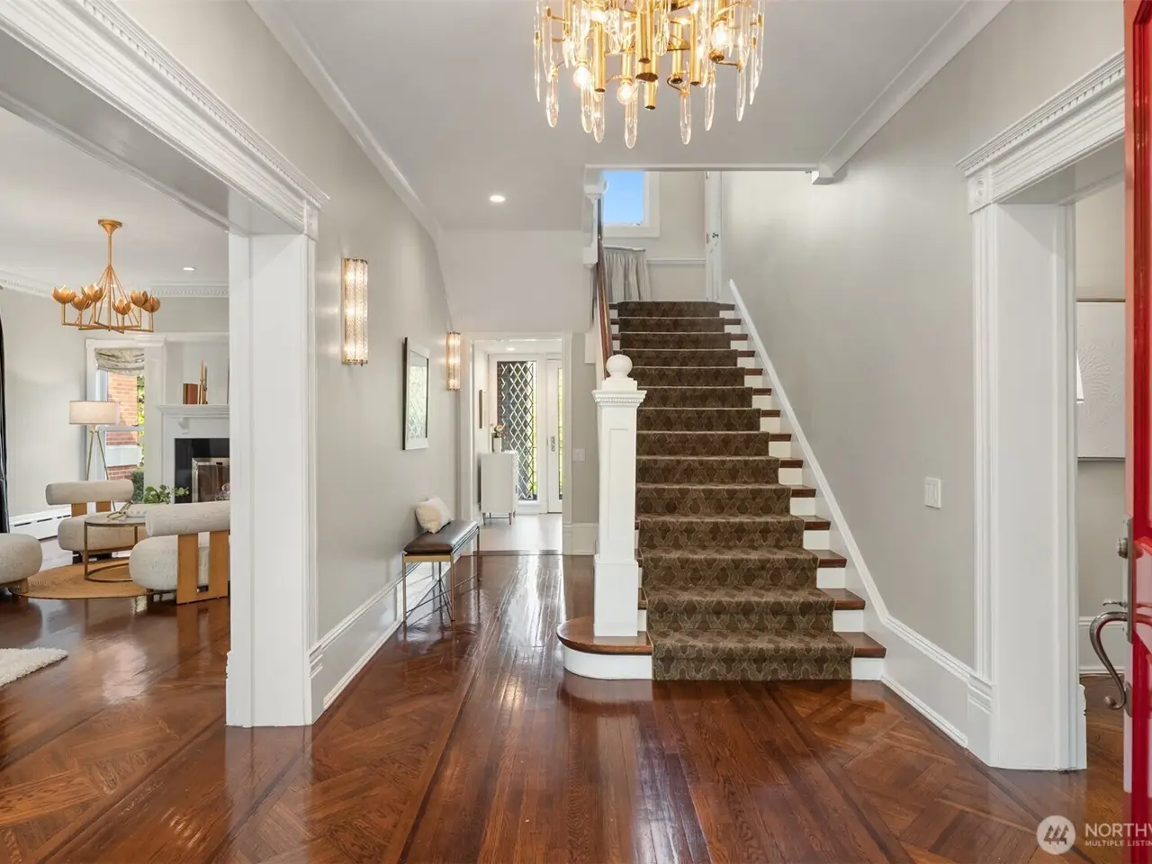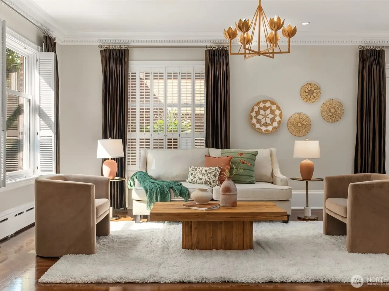 Welcome to Merrill Court, an exceptional home in Capitol Hill's historic Harvard-Belmont District. This residence blends timeless charm with modern functionality, offering 5 bedrooms, an office, and 4.25 baths. Gracious living spaces feature classic detailing & two elegant fireplaces. Original architectural details have been preserved, reflecting the home's rich history. The chef's kitchen is a central gathering space, complemented by a rare second full-service kitchen - ideal for entertaining or multi-generational living. Lush, landscaped outdoor areas provide a peaceful retreat perfect for alfresco dining. Set on a quiet, tree-lined street, Merrill Court offers privacy just minutes from top restaurants, shops, parks, & downtown Seattle.