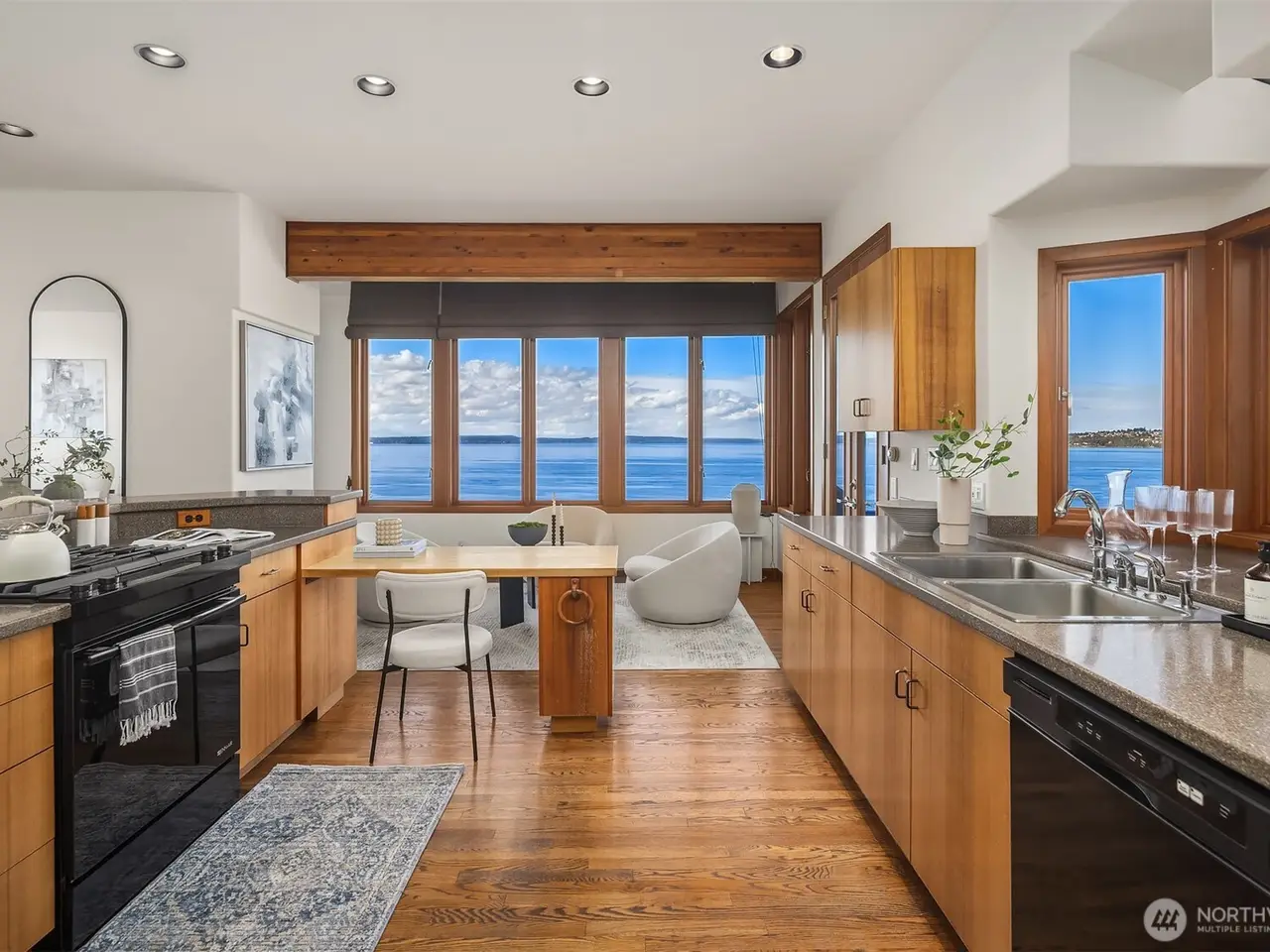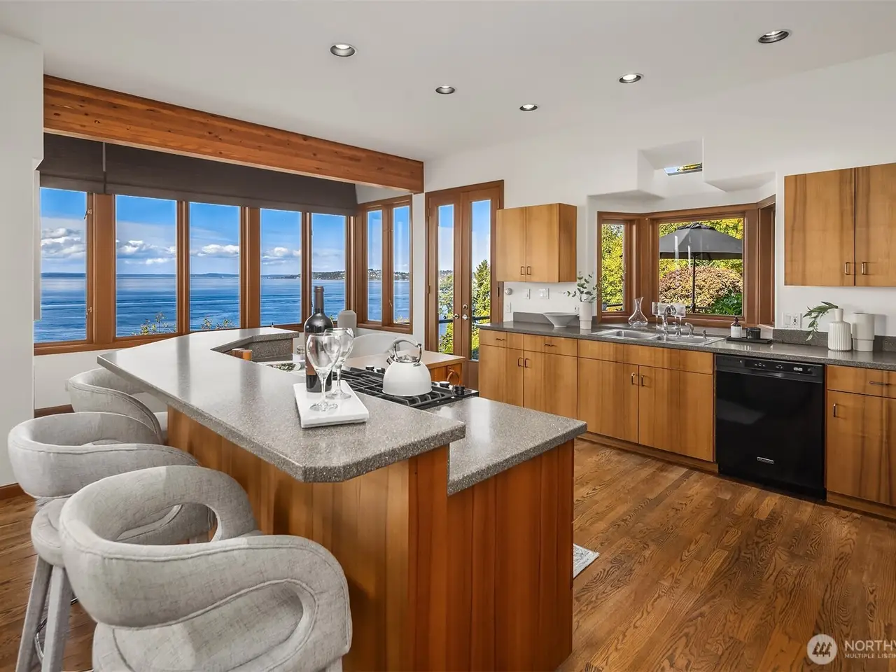First time on the market! Panoramic views of Alki, Puget Sound, and the Olympic Mountains are the daily backdrop. Custom-built, this 2,700 sq ft retreat, 4 fireplaces, and offers plenty of parking! The primary suite boasts serene water vistas, a gas fireplace, spa-like bath, and custom sauna. Expansive windows and decks invite the outdoors in. A rare opportunity to experience timeless Pacific Northwest craftsmanship with Alki Beach just steps away. Designed for both relaxed living and elegant entertaining, the open spaces flow seamlessly indoors and out. A rare opportunity where timeless Pacific Northwest craftsmanship meets the beauty of the Sound.