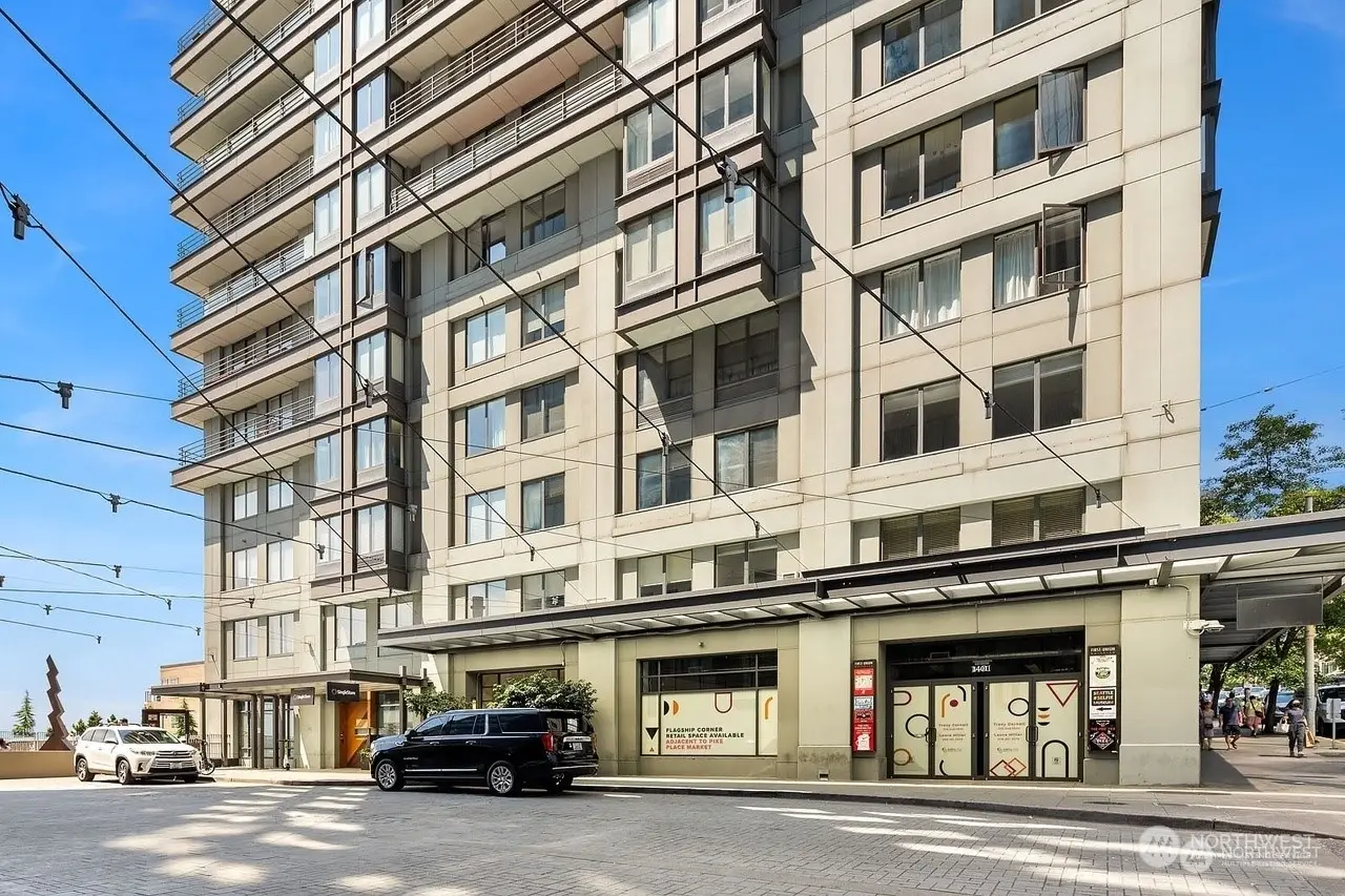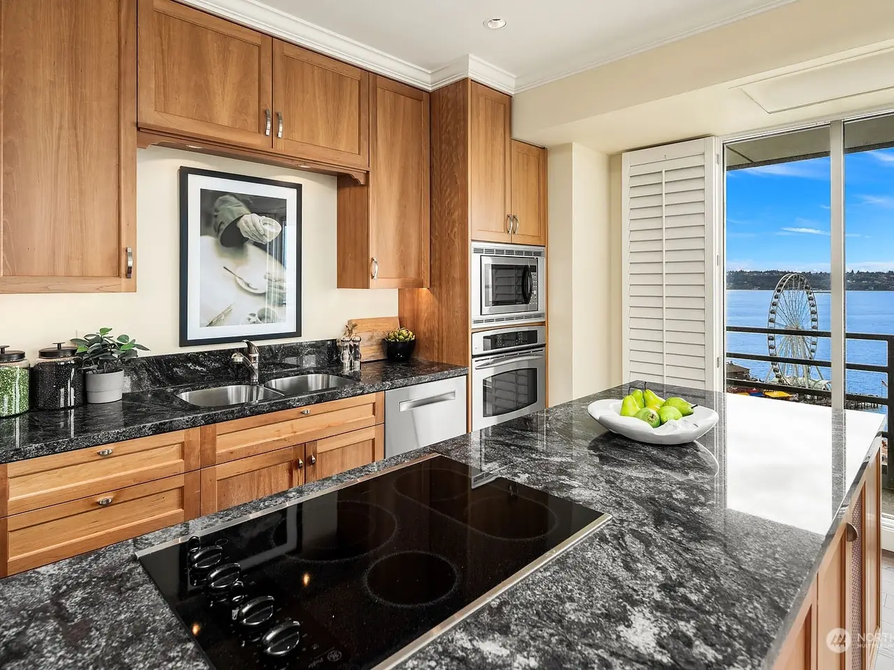 Live luxuriously front & center above it all. Updated & re-launched, this home floats elegantly above the Wheel & the exciting new Waterfront. Spacious 3-BR home w/ serenity & seclusion. 2 units combined along the entire western span of this luxury concierge building. Wrap-around patios present unobstructed views of Elliott Bay, Olympic Mtns & striking sunsets. Each space in this U-shaped unit conveys comfort & smart design. Formal entry presents ample wall space for art enthusiasts & a great first impression. Walls of windows welcome light. Built-ins & closets provide generous storage. Kitchen/family rms gaze north to Pike Place Mkt. 2 pkg spaces & storage. Close to SAM, Four Seasons for dining or spa visits, Benaroya Hall & the Market.