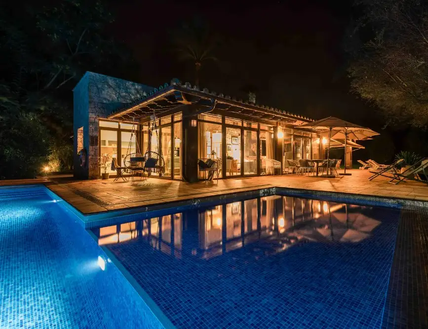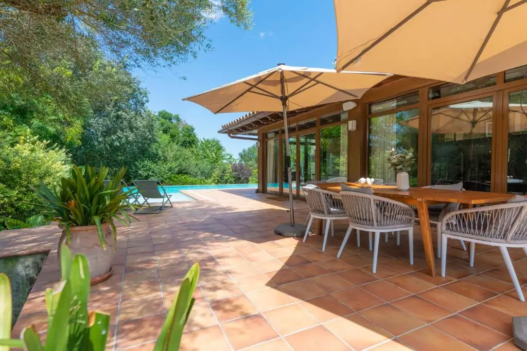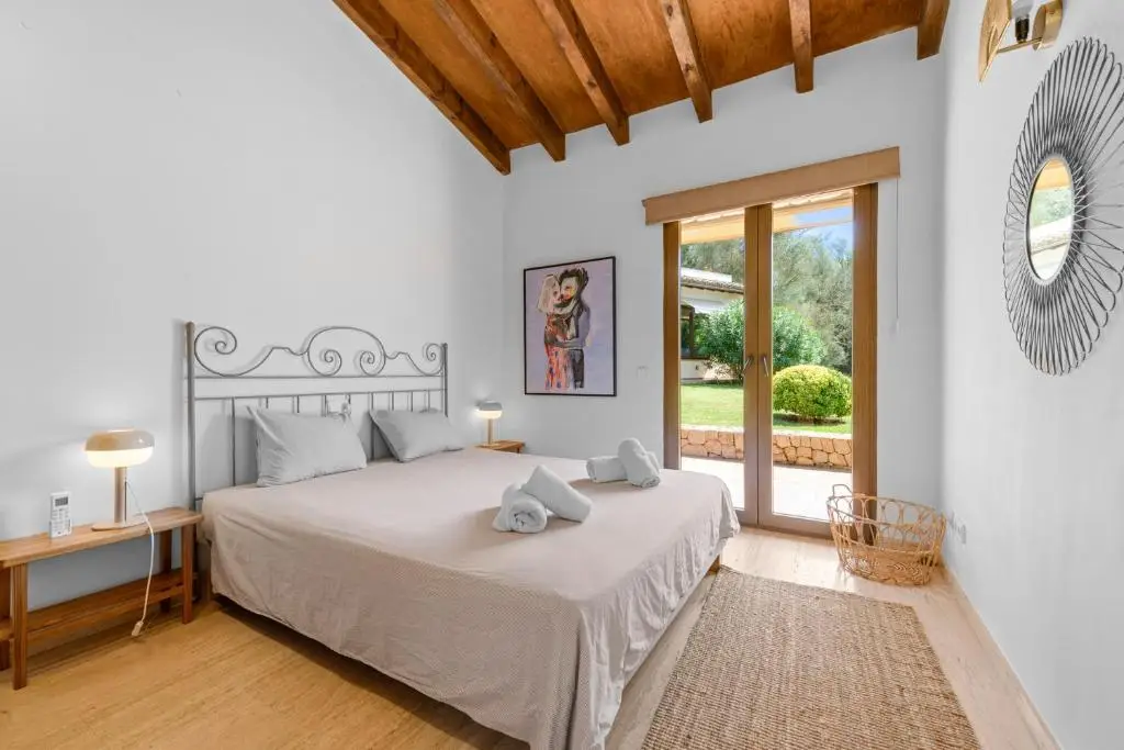 Beautiful finca with a vacation rental license, located near Sencelles, a charming area in the heart of Mallorca. Just half a kilometer from the village of Sencelles, where you can find various services such as restaurants, bars, a bakery, a pharmacy, and shops. The city of Inca is only a 10-minute drive away. This well-maintained property offers endless opportunities for those looking for a spacious home in a rural setting. With a living area of approximately 250 m², the finca has a total of 6 spacious rooms, of which 5 are well-equipped bedrooms. The main house is structured as follows: upon entering, you find a cozy living-dining room featuring a fireplace, creating a warm and comfortable atmosphere. Around the living room are the bedrooms: a master bedroom with an en-suite bathroom, two double bedrooms, and one with two single beds, all with good natural light, along with a beautiful fully furnished and equipped kitchen. Additionally, there are two full bathrooms and an additional toilet for extra convenience. Adjacent to the living room is a large solarium terrace, perfect for enjoying the Mediterranean climate, next to a spectacular 55 m² swimming pool. The pool has a shallow area, perfect for relaxing or enjoying with children. The terrace is equipped with sunbeds, a garden table and chairs, and provides access to a functional barbecue area. Furthermore, the property includes a charming guest house, ideal for those wishing to disconnect in a natural and peaceful environment. This self-contained guest house has a mini kitchen, a full bathroom, and a double bedroom. The finca sits on a large plot and offers ample parking areas and landscaped spaces to enjoy the outdoors. The surroundings are also perfect for outdoor activities, such as cycling, with several routes available. Wine enthusiasts can visit various local wineries, while the Mallorca Astronomical Observatory in Costitx offers fascinating guided tours.