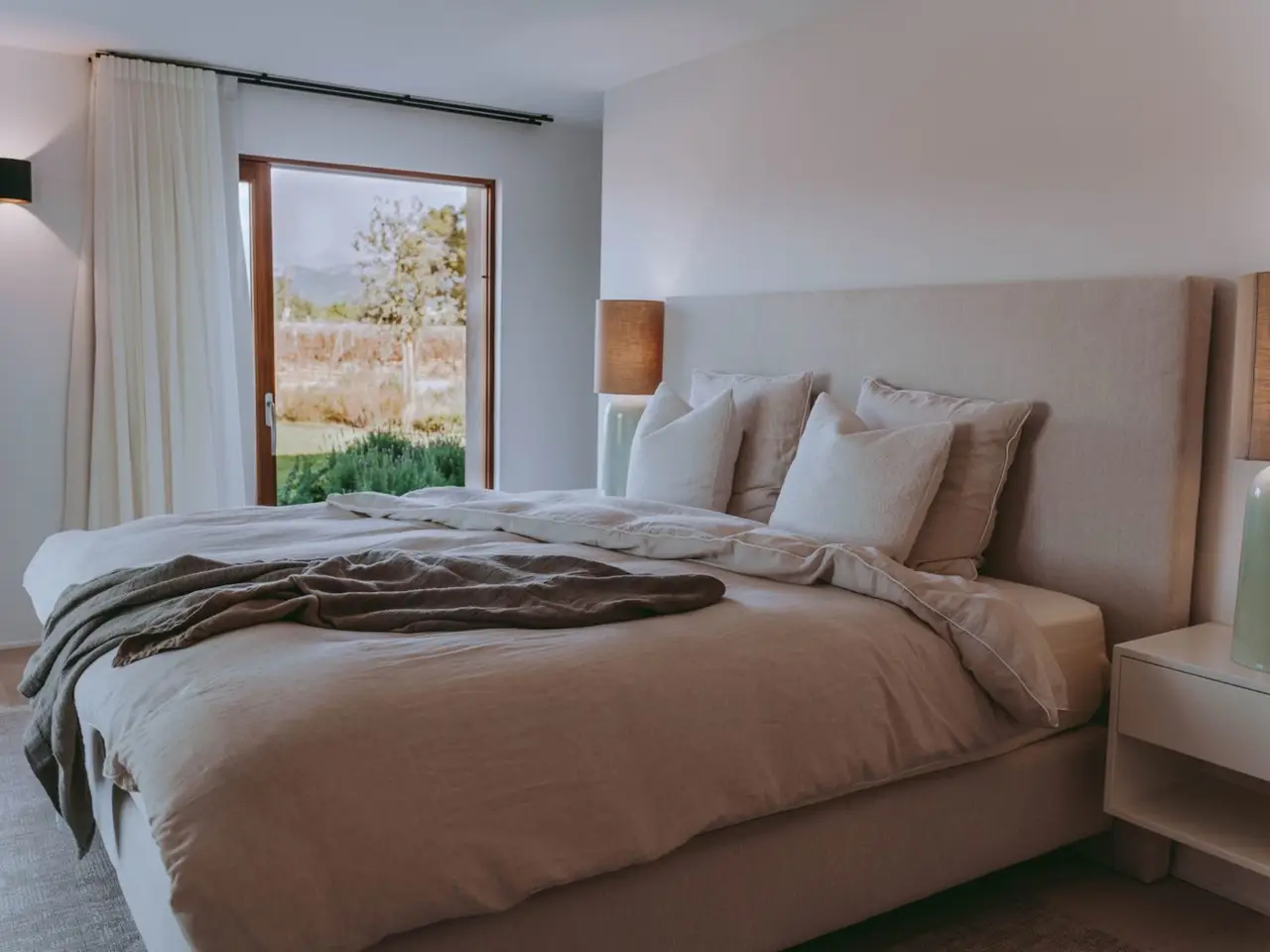 This impressive country estate is currently under construction and is located just five minutes drive from Binissalem and around twenty minutes from Palma, in Mallorca's most famous wine region. The property offers a great location with privacy and panoramic views of the Sierra de Tramuntana and the wine fields. The property features a wine cellar, a spacious living area with high ceilings and beams, a fully equipped kitchen with island, a guest toilet and four spacious bedrooms, each with its own bathroom and fitted wardrobes. The large windows lead outside where you can enjoy the saltwater pool and the various terraces, some of which are covered and all facing different directions to take advantage of the sun at any time of the day. The property includes a private well, water tanks, an air heat system, solar panels, home automation controls, electricity supply, an automatic pool cleaning system and an alarm system. The landscaping and traditional stone wall give the property a welcoming atmosphere. A unique opportunity for wine lovers to purchase this special estate.