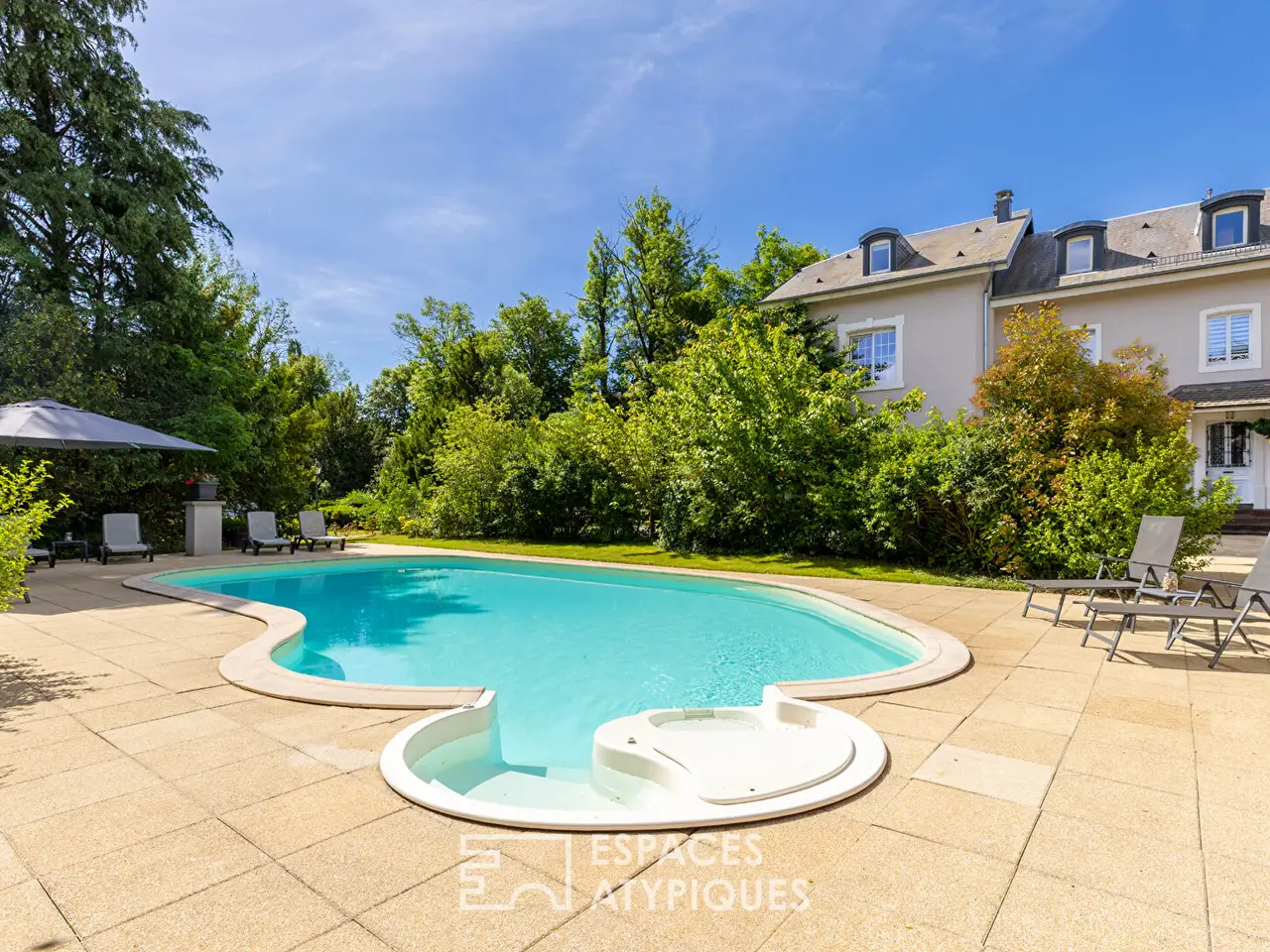 Located in a peaceful, leafy setting, this 465 m2 mansion stands in the heart of a 6,500 m2 wooded park, hidden from view. It elegantly combines old-world charm with contemporary comfort. Herringbone parquet flooring, mouldings and generous volumes complement the high-end amenities: swimming pool, outbuilding converted into a wellness area, summer kitchen, petanque court, double garage, carport and greenhouse. A rare property, designed for a privileged quality of life. From the entrance, the fluid layout of the spaces invites you to discover rooms with comfortable proportions. The ground floor offers a large central entrance hall leading on one side to a bright living room and a billiard room and on the other to a separate kitchen, a pantry and a dining room, forming a harmonious whole that is ideal for family life and entertaining. On the first floor, the sleeping area consists of three bedrooms and two bathrooms, complemented by a separate apartment with a bedroom, a large living room, a shower room and a kitchen, ideal for entertaining or accommodating staff. The second floor houses four additional rooms, including a living room and three bedrooms, a shower room and an attic, offering multiple possibilities for conversion. The landscaped grounds surrounding the property are perfect for relaxation and entertaining. A 12 m x 5.5 m swimming pool blends in perfectly with the surroundings, accompanied by a pool house comprising a summer kitchen with bread oven, a shower room and a 27 m2 room. The wellness annex offers a spa, sauna and shower room. In addition, there is a workshop, a greenhouse, a double garage and a carport for two vehicles. The property is set in lush greenery with a variety of trees and plants. The house enjoys a sought-after location, close to amenities, schools and transport links. This exceptional residence charms with its brightness, generous layout and secluded location. An unusual property with high heritage value, intended for clients seeking a unique place to live, combining architectural elegance and contemporary comfort. Shops 5 minutes away by car Schools 5 minutes away by car Transport (train) 5 minutes away by car REF. 1554 Additional information * 15 rooms * 8 bedrooms * 6 bathrooms * Outdoor space : 6495 SQM * Property tax : 3 074 €